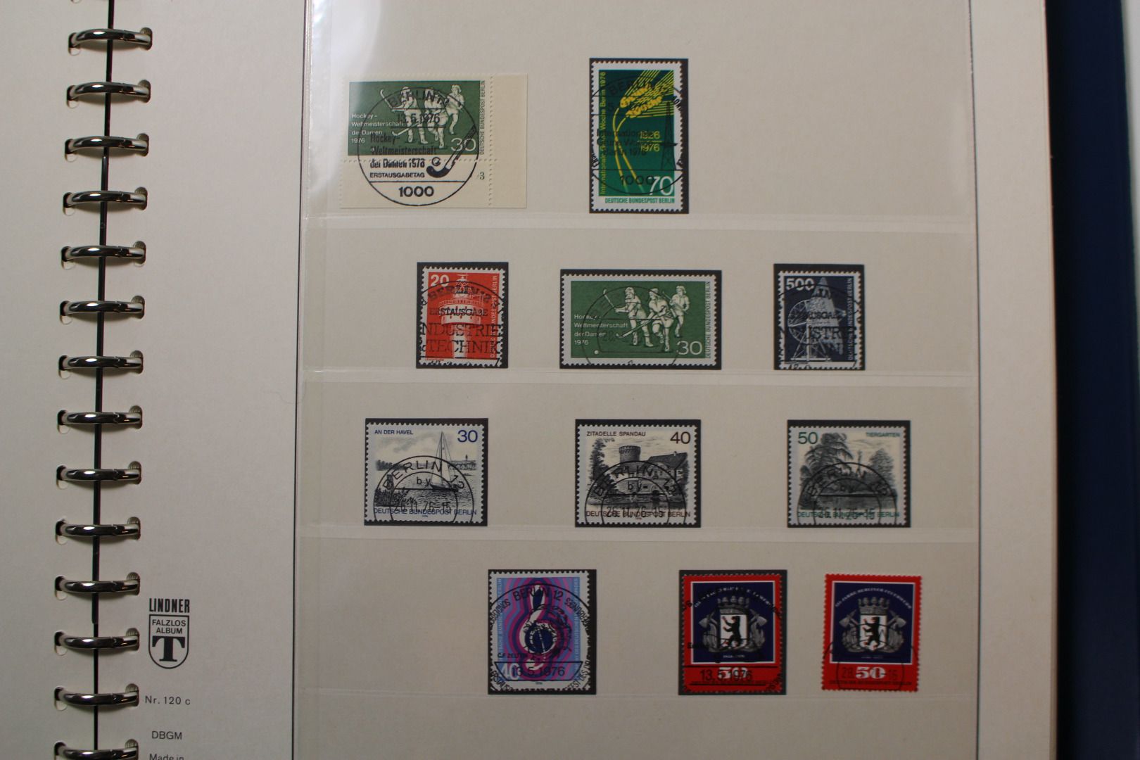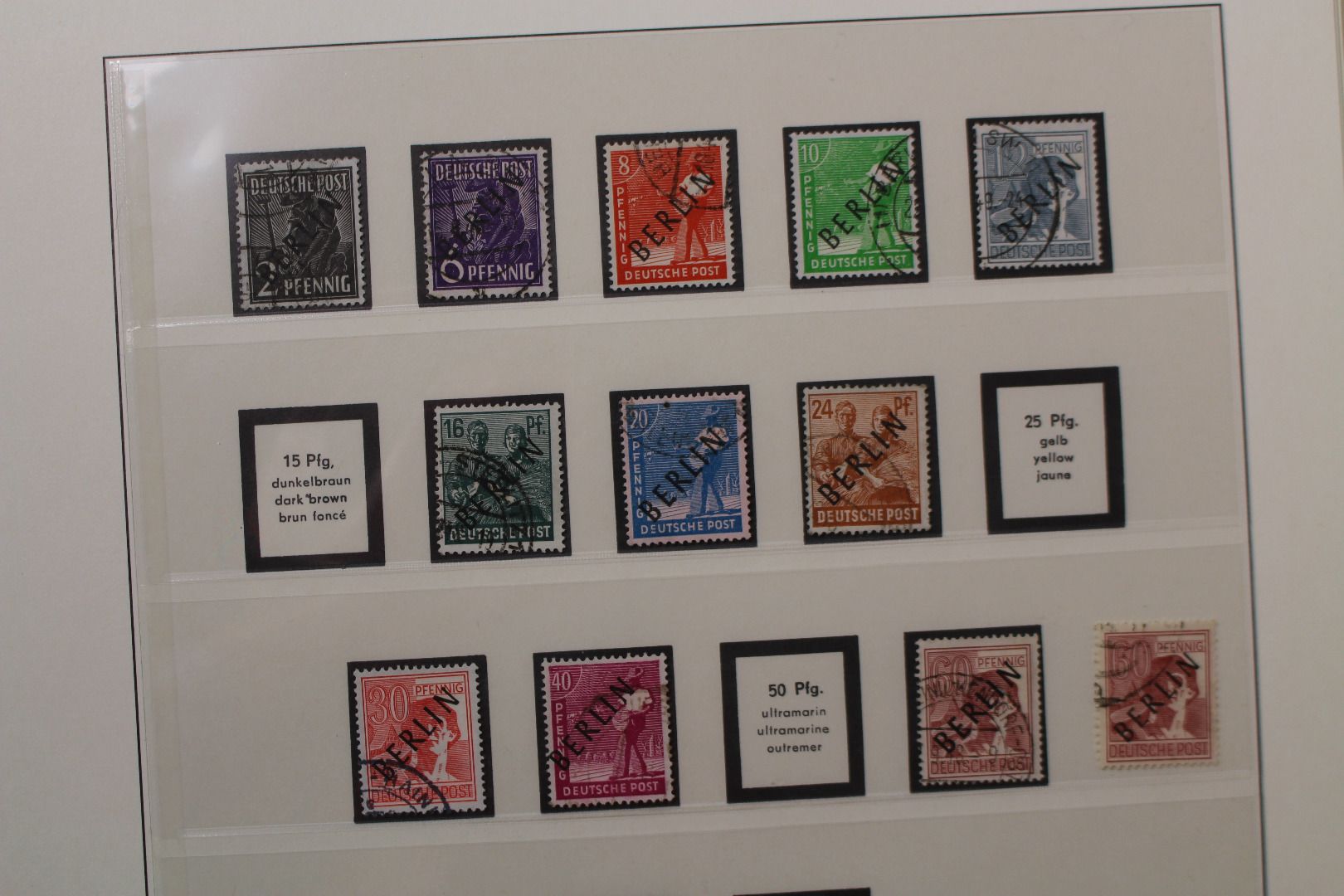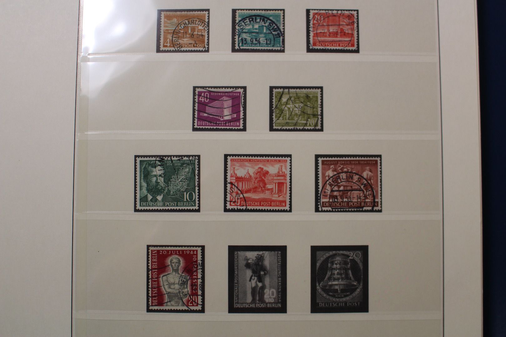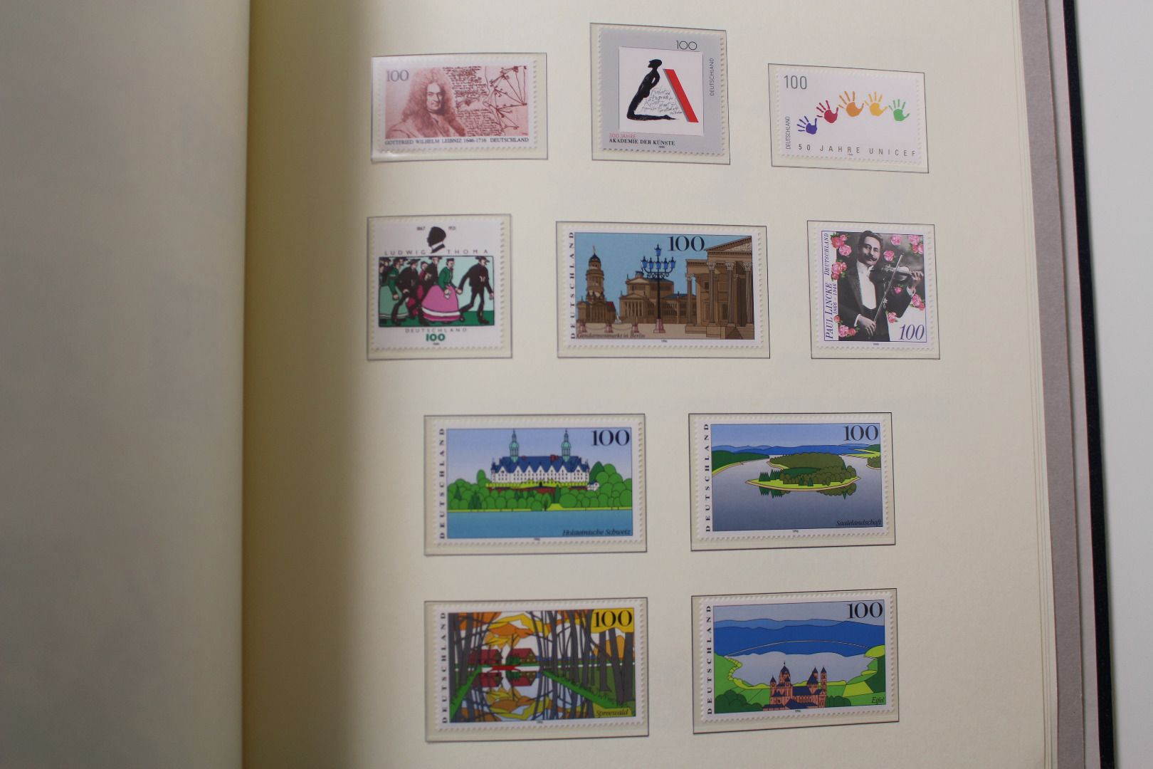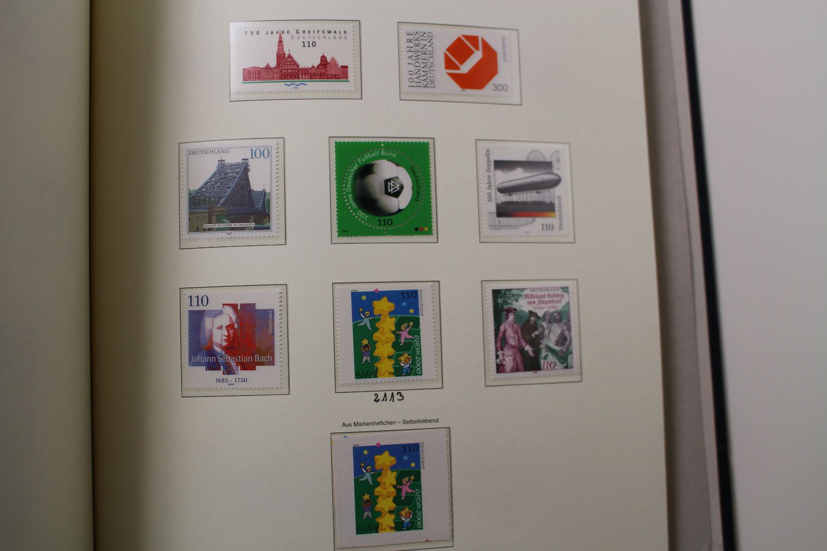 Die Berlin Sammlung in 2 Lindner T Vordruckalben mit einigen besseren Anfangsausgaben, sonst ab Ende der 1950er bis Mitte der 1980er Jahre ganz gut besetzt. Die BRD in 5 Borek Vordruckalben bis zum Jahr 2000. Ab Mitte der 1950er Jahre meist postfrisch umfangreich. Einige Jahre der Borek Vordrucke mit schwarzen Klemmtaschen. Die Qualität ist unterschiedlich.