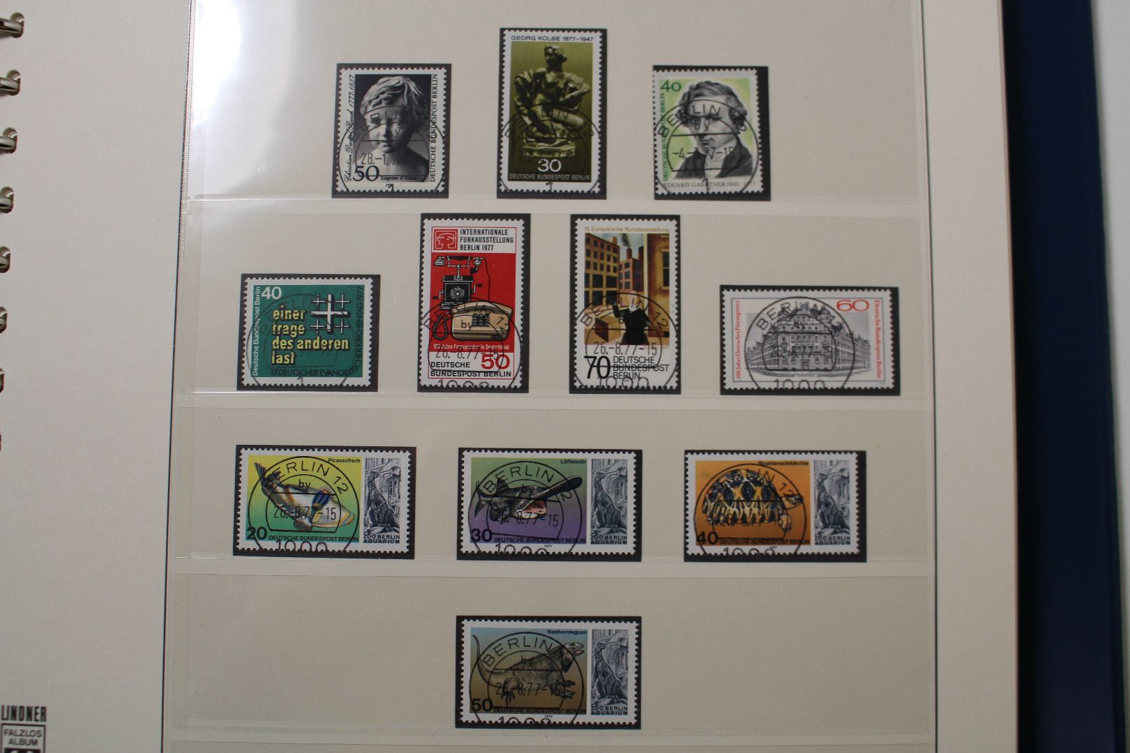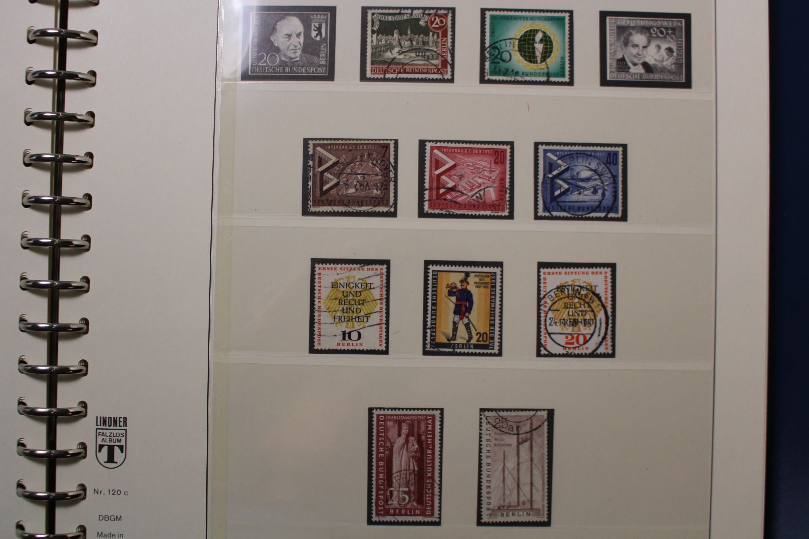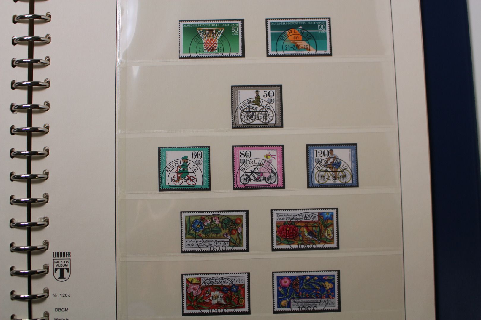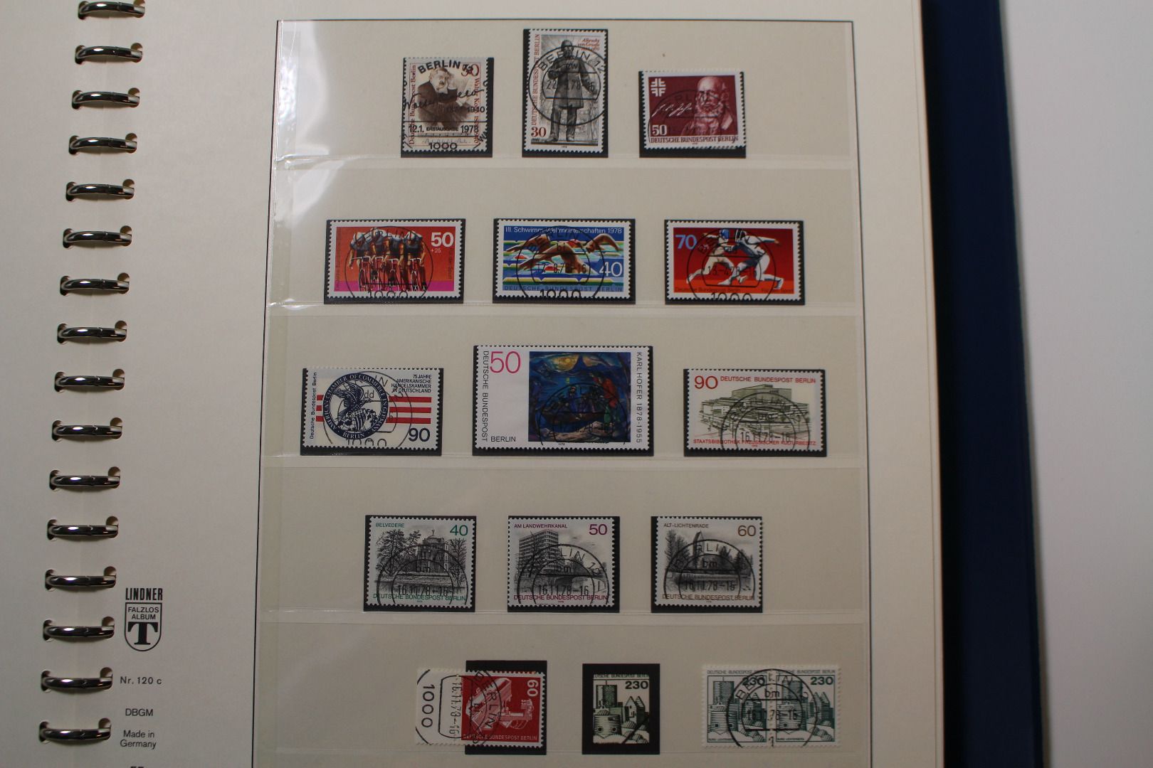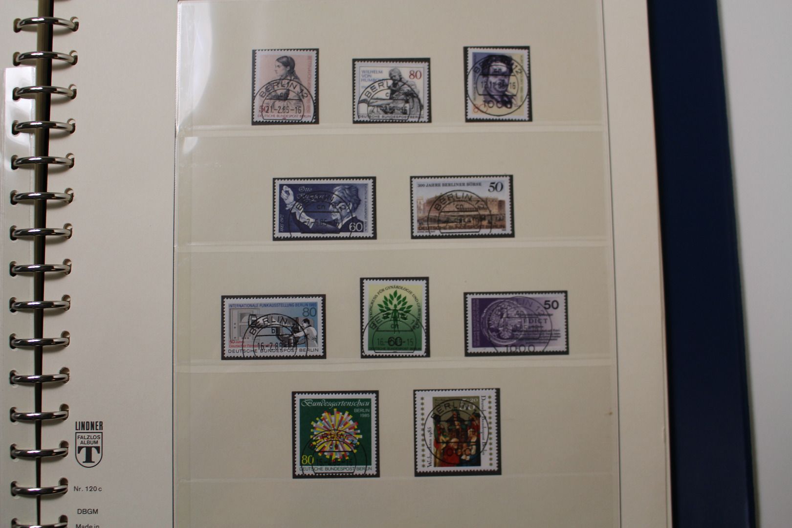 Die Berlin Sammlung in 2 Lindner T Vordruckalben mit einigen besseren Anfangsausgaben, sonst ab Ende der 1950er bis Mitte der 1980er Jahre ganz gut besetzt. Die BRD in 5 Borek Vordruckalben bis zum Jahr 2000. Ab Mitte der 1950er Jahre meist postfrisch umfangreich. Einige Jahre der Borek Vordrucke mit schwarzen Klemmtaschen. Die Qualität ist unterschiedlich.