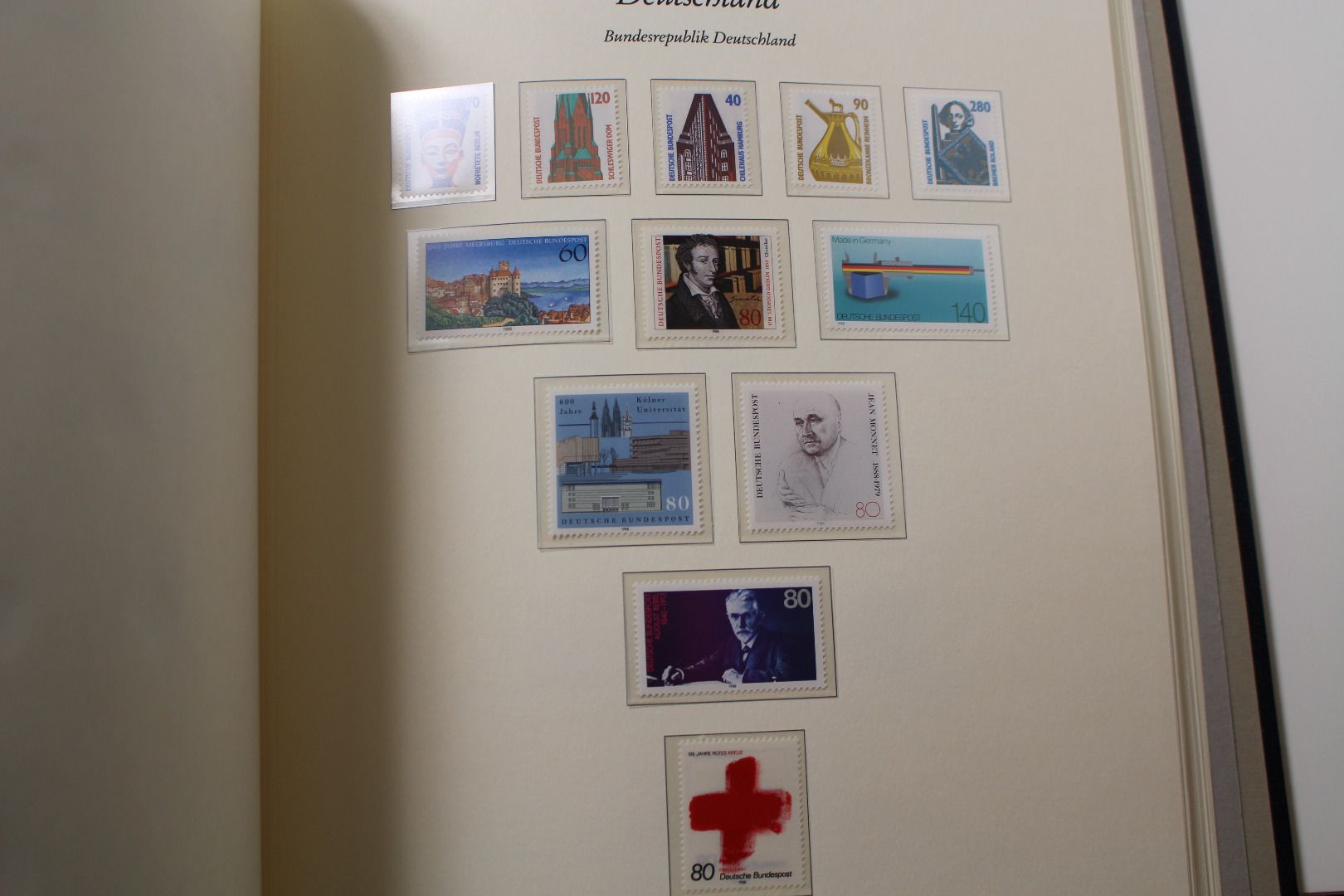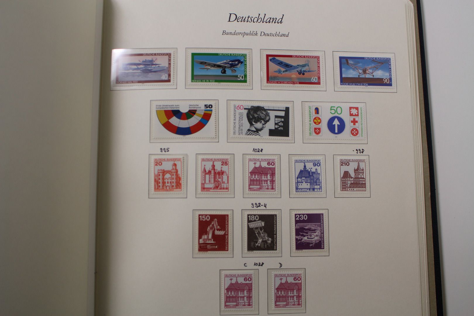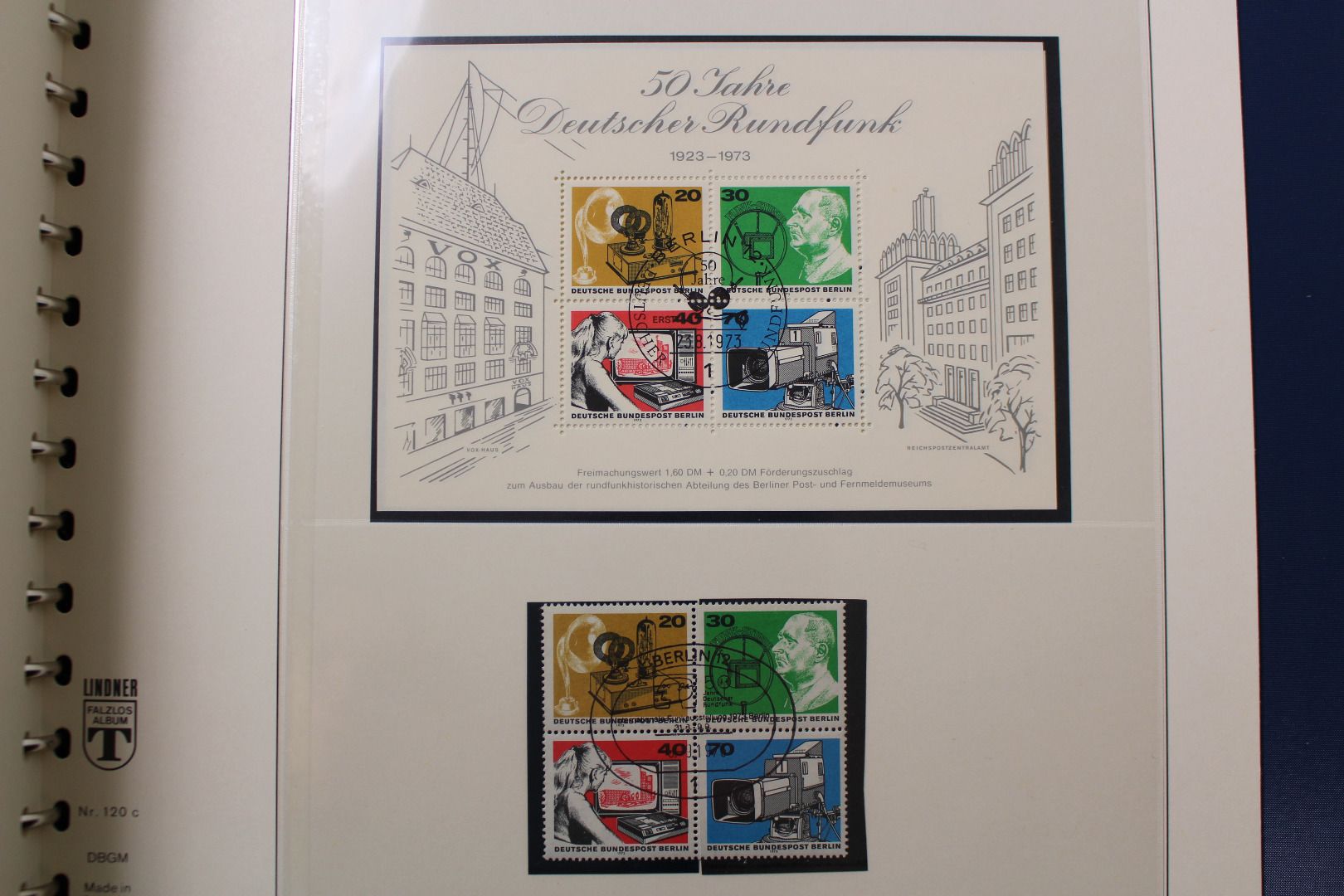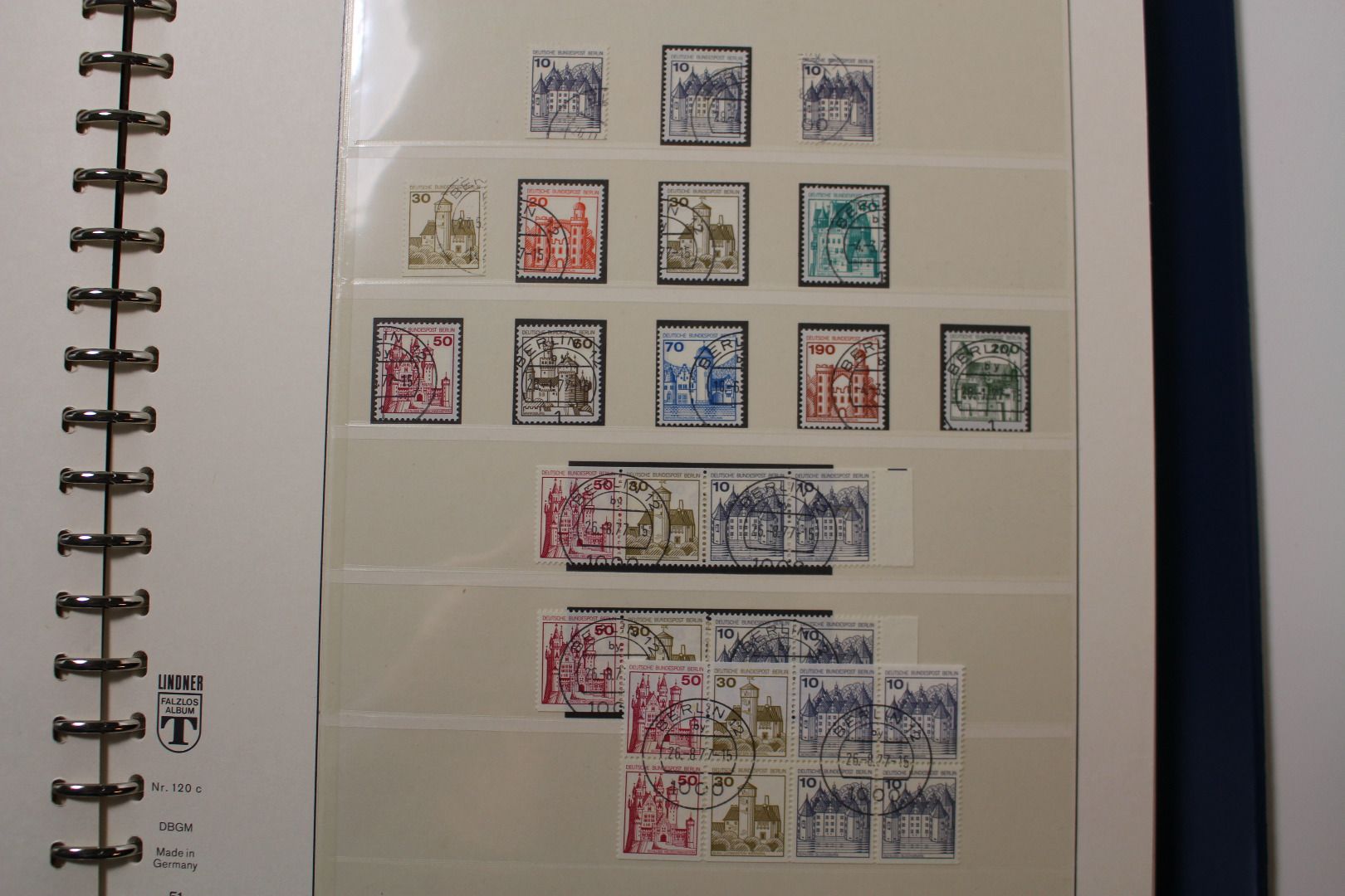 Die Berlin Sammlung in 2 Lindner T Vordruckalben mit einigen besseren Anfangsausgaben, sonst ab Ende der 1950er bis Mitte der 1980er Jahre ganz gut besetzt. Die BRD in 5 Borek Vordruckalben bis zum Jahr 2000. Ab Mitte der 1950er Jahre meist postfrisch umfangreich. Einige Jahre der Borek Vordrucke mit schwarzen Klemmtaschen. Die Qualität ist unterschiedlich.
