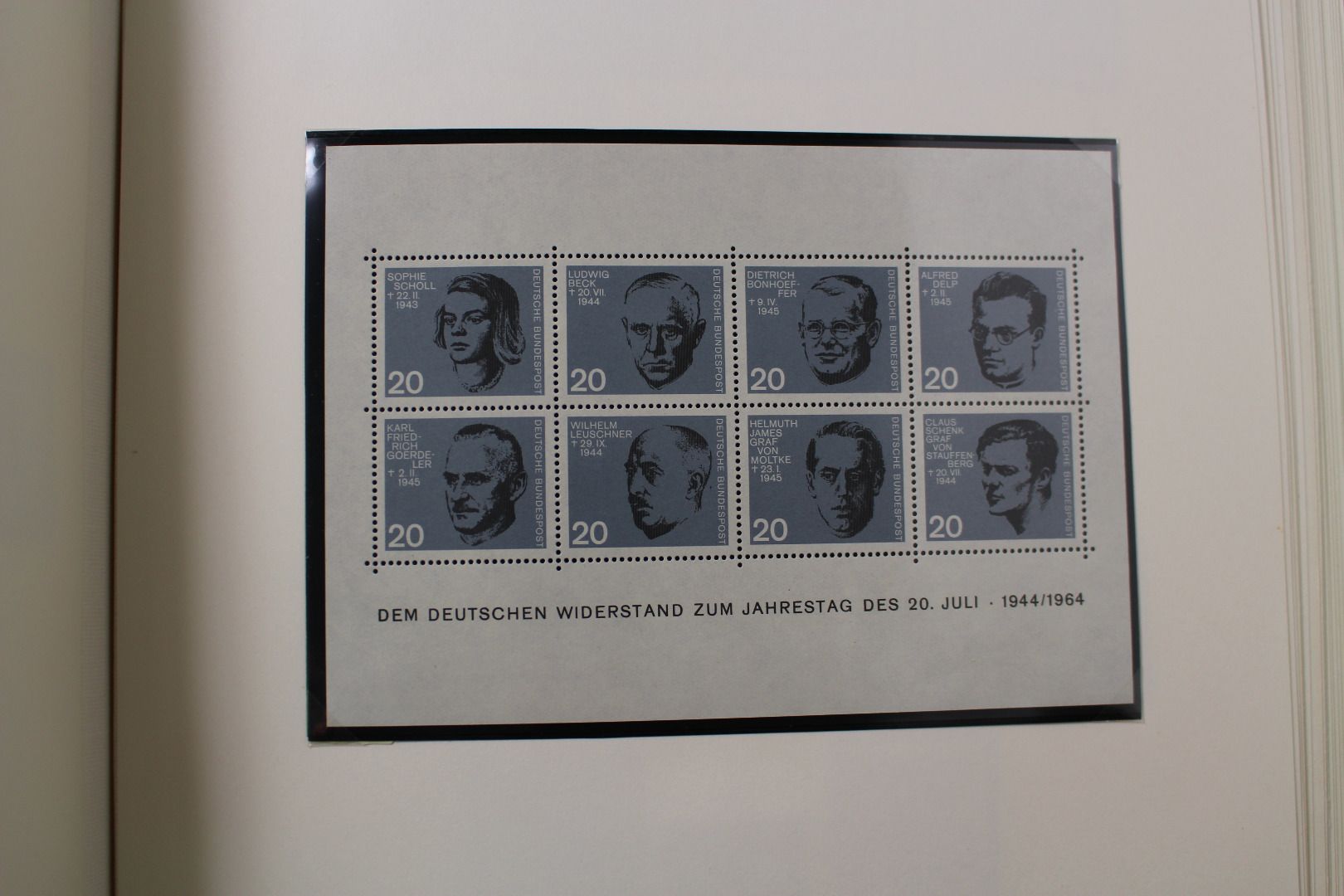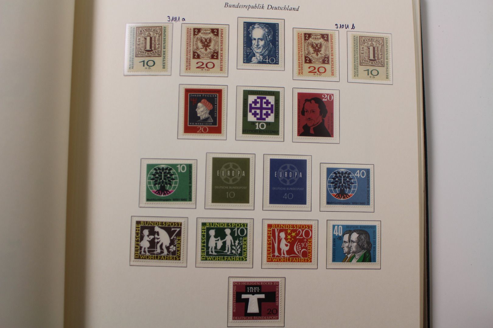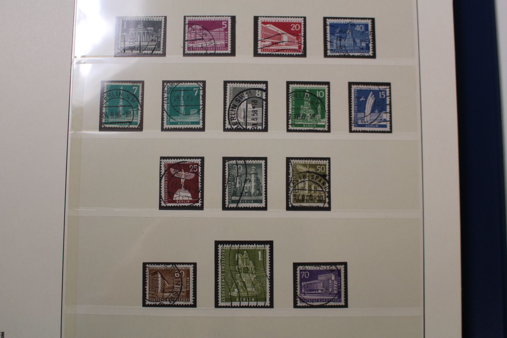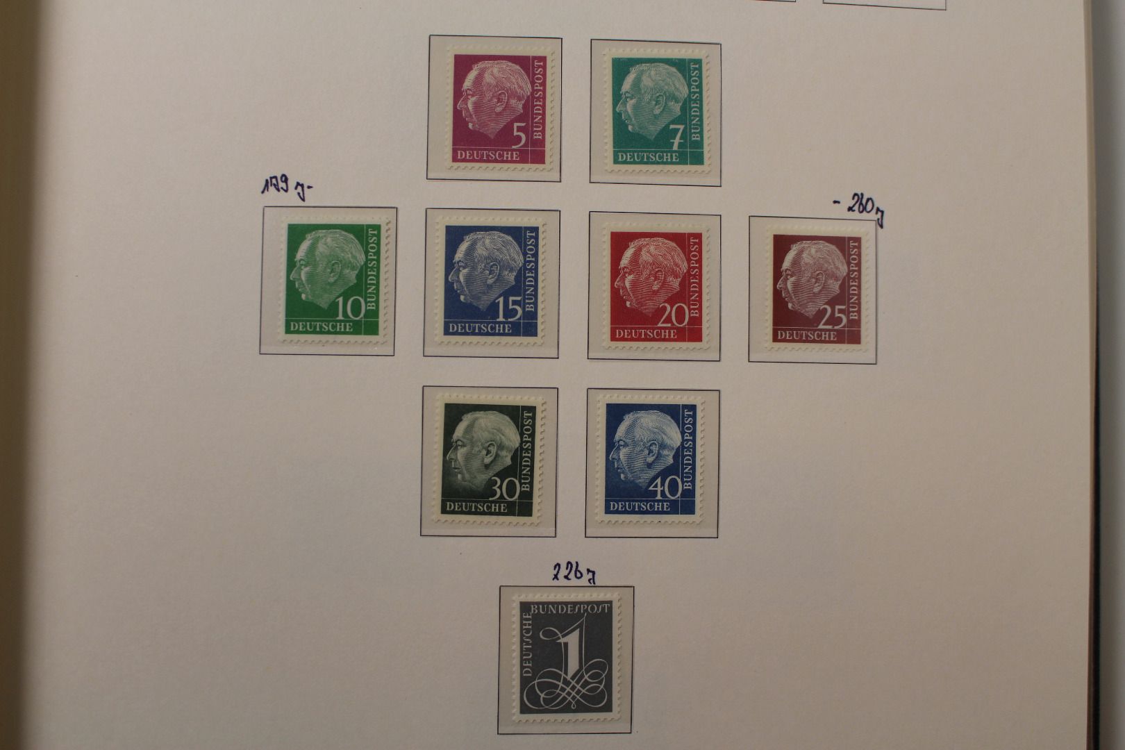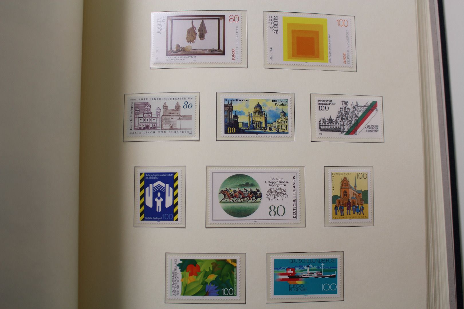 Die Berlin Sammlung in 2 Lindner T Vordruckalben mit einigen besseren Anfangsausgaben, sonst ab Ende der 1950er bis Mitte der 1980er Jahre ganz gut besetzt. Die BRD in 5 Borek Vordruckalben bis zum Jahr 2000. Ab Mitte der 1950er Jahre meist postfrisch umfangreich. Einige Jahre der Borek Vordrucke mit schwarzen Klemmtaschen. Die Qualität ist unterschiedlich.