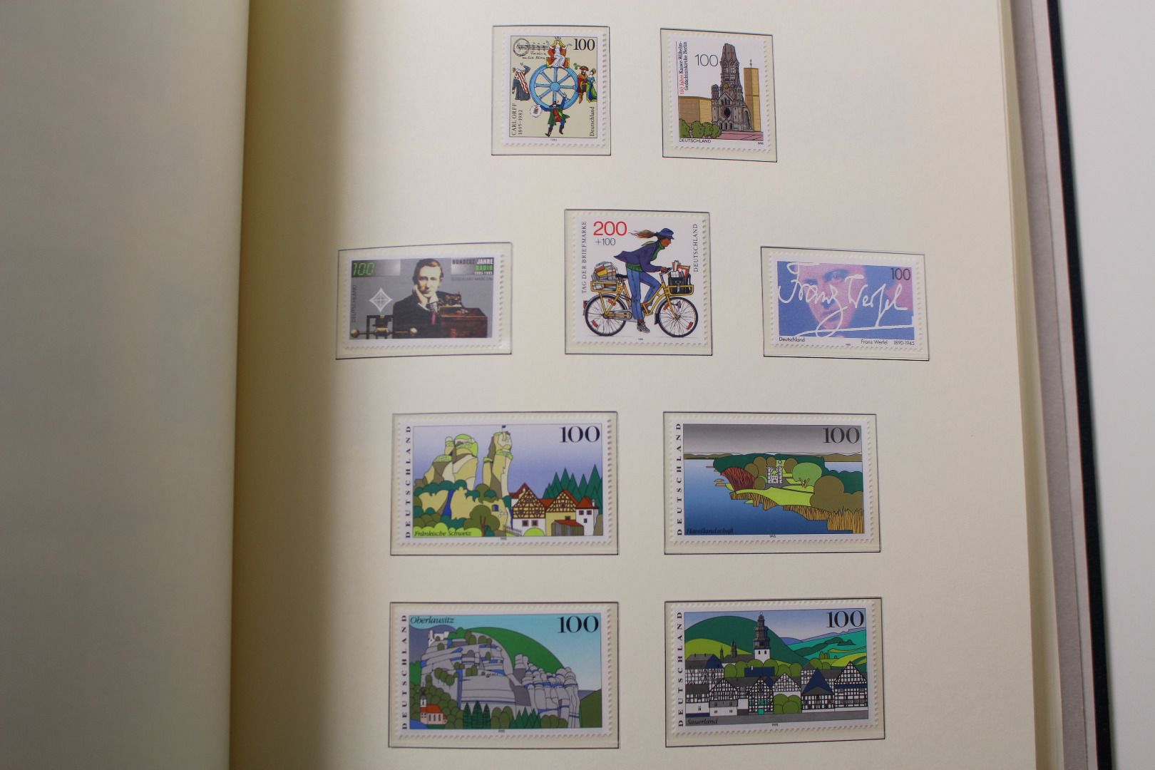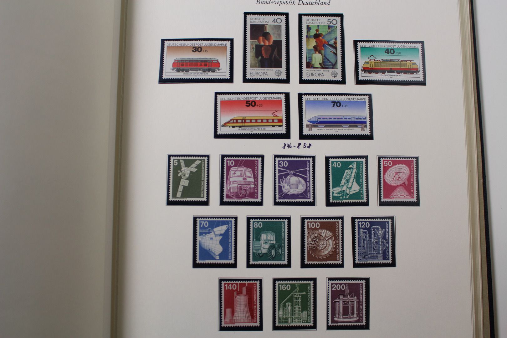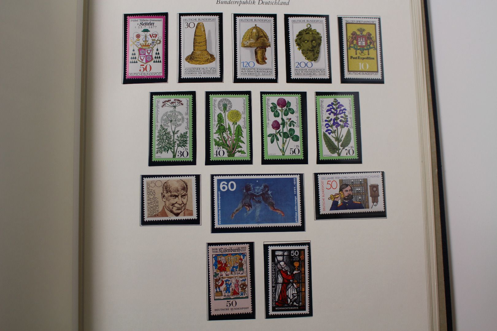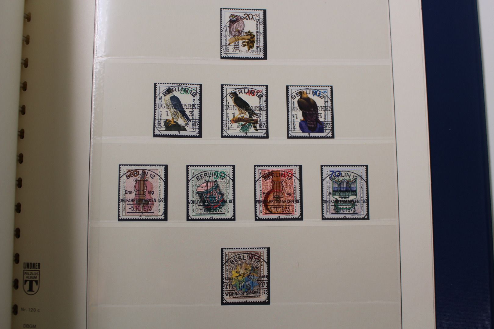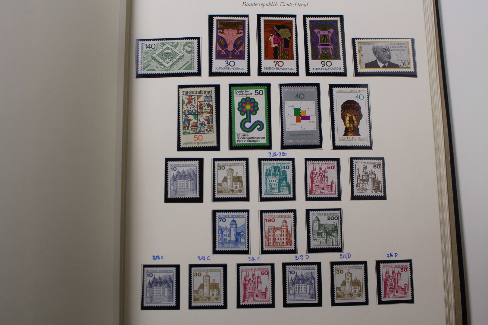 Die Berlin Sammlung in 2 Lindner T Vordruckalben mit einigen besseren Anfangsausgaben, sonst ab Ende der 1950er bis Mitte der 1980er Jahre ganz gut besetzt. Die BRD in 5 Borek Vordruckalben bis zum Jahr 2000. Ab Mitte der 1950er Jahre meist postfrisch umfangreich. Einige Jahre der Borek Vordrucke mit schwarzen Klemmtaschen. Die Qualität ist unterschiedlich.
