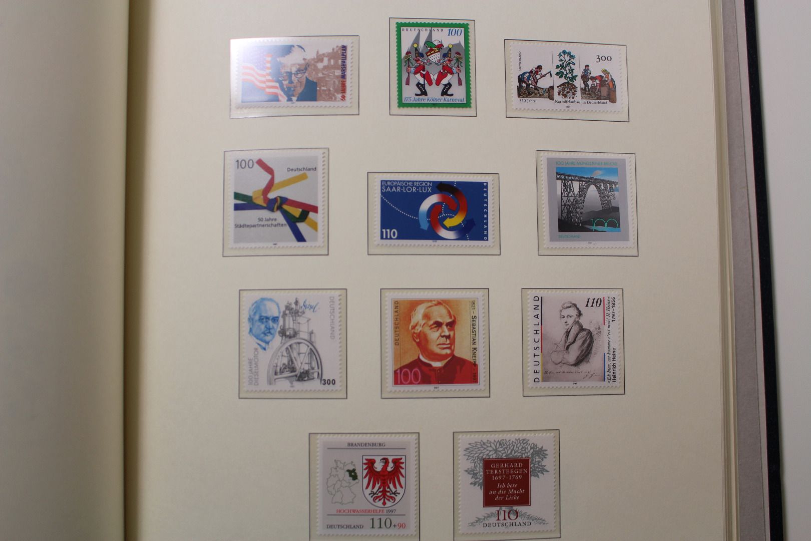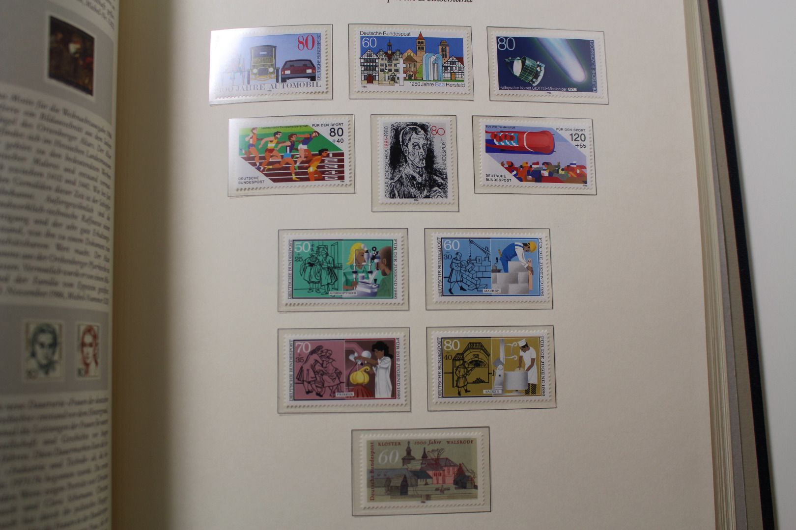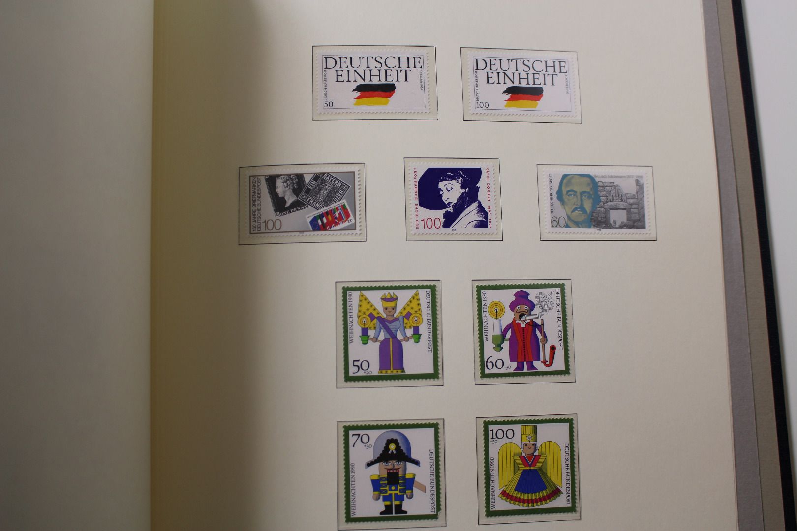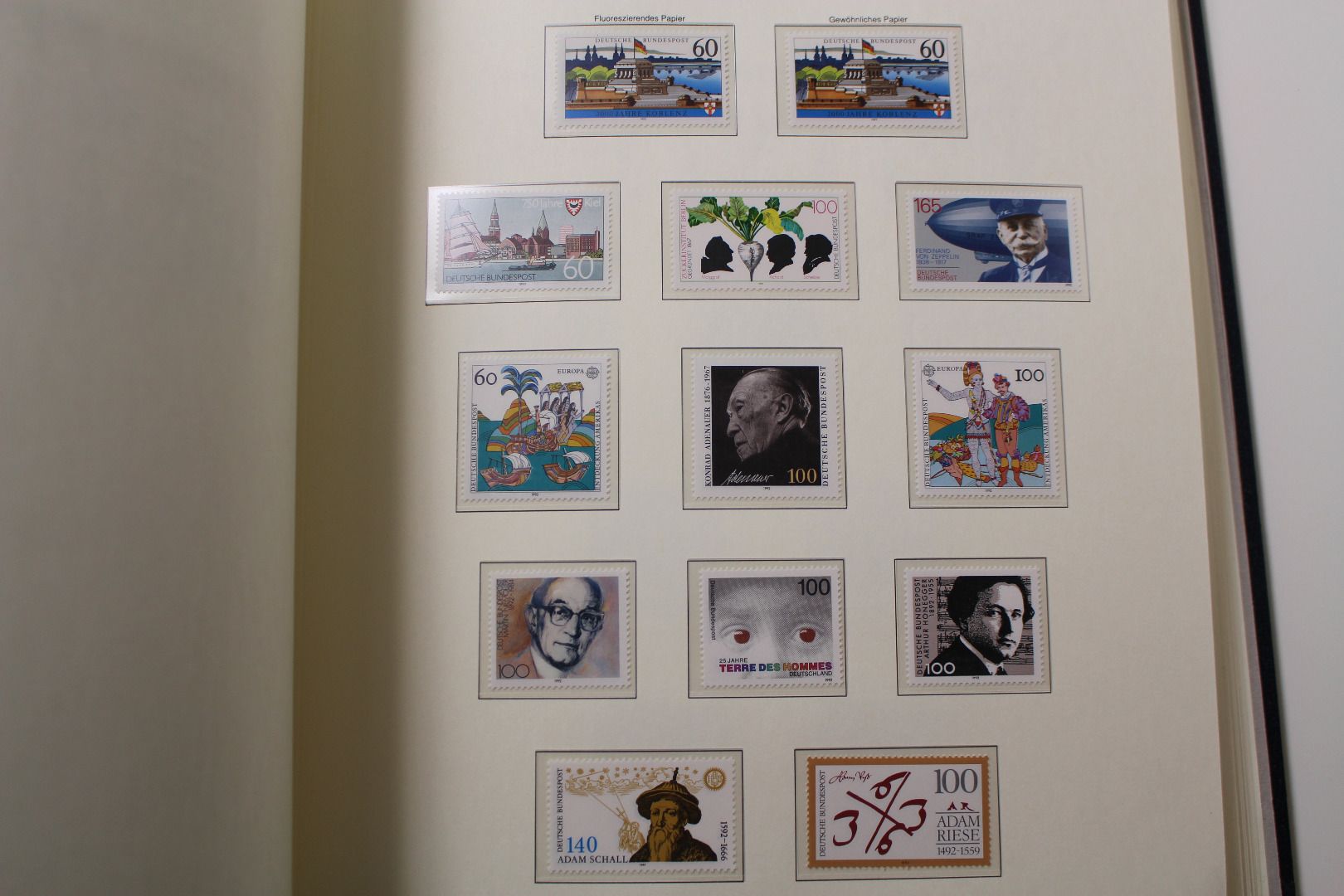 Die Berlin Sammlung in 2 Lindner T Vordruckalben mit einigen besseren Anfangsausgaben, sonst ab Ende der 1950er bis Mitte der 1980er Jahre ganz gut besetzt. Die BRD in 5 Borek Vordruckalben bis zum Jahr 2000. Ab Mitte der 1950er Jahre meist postfrisch umfangreich. Einige Jahre der Borek Vordrucke mit schwarzen Klemmtaschen. Die Qualität ist unterschiedlich.