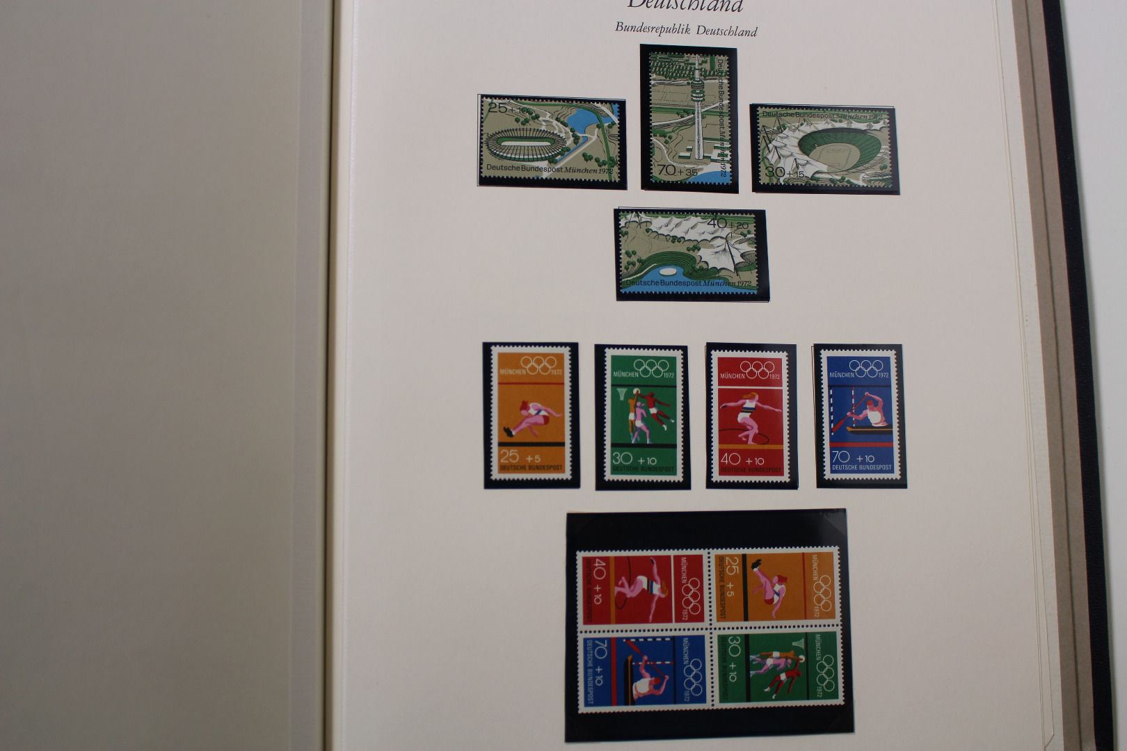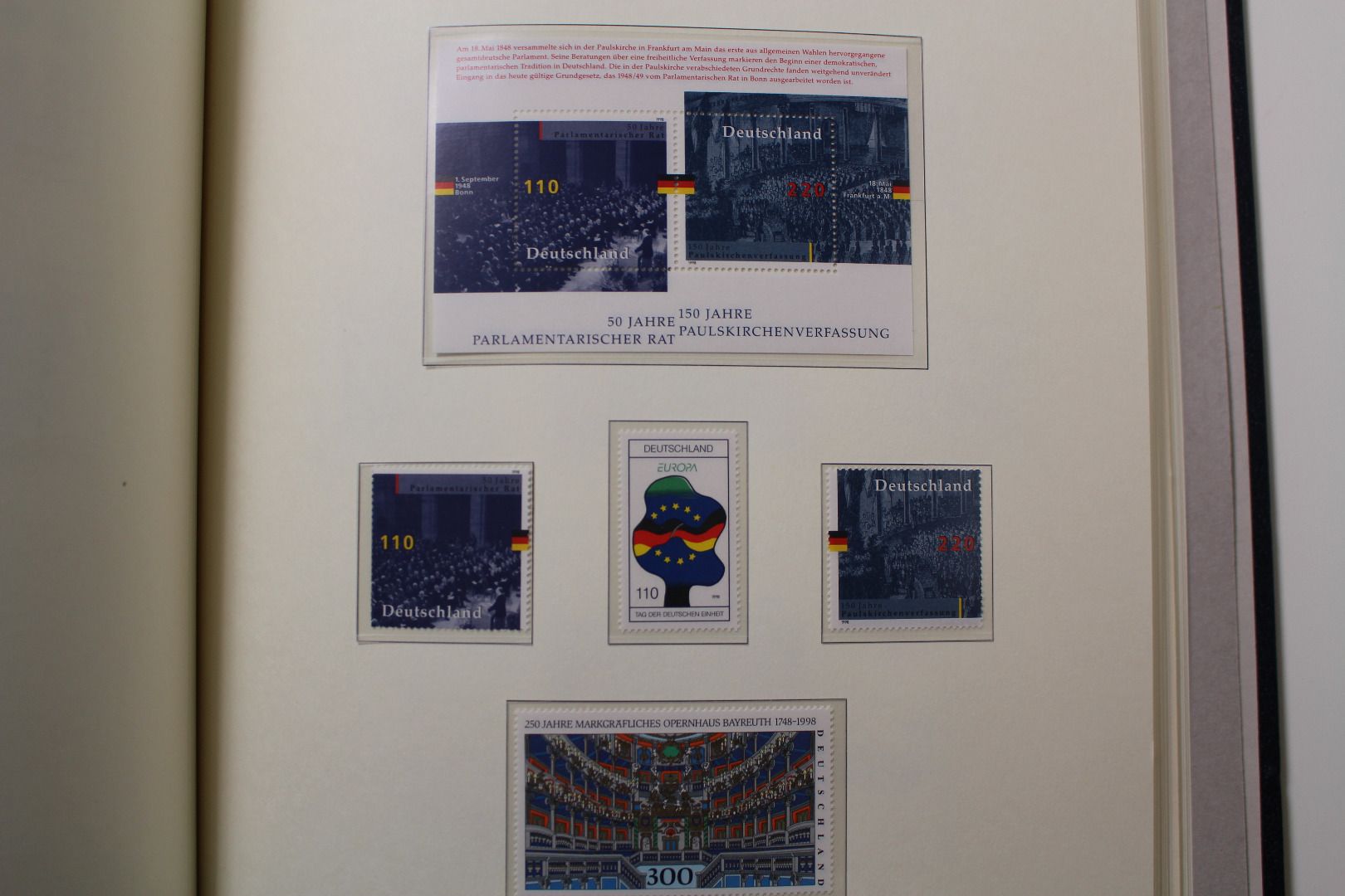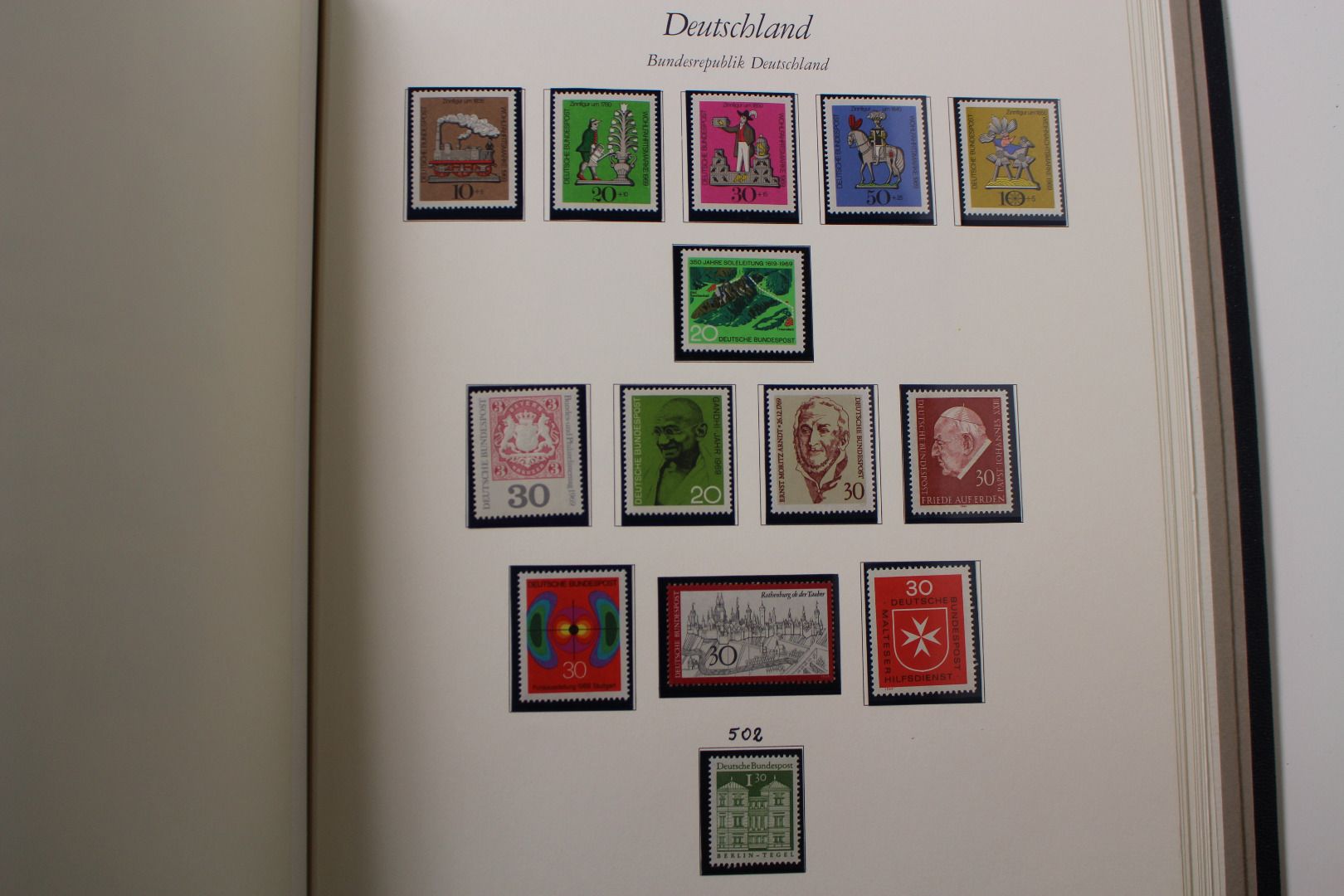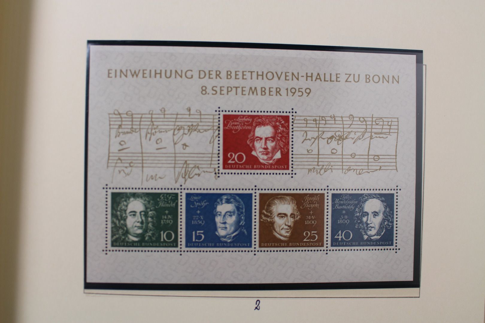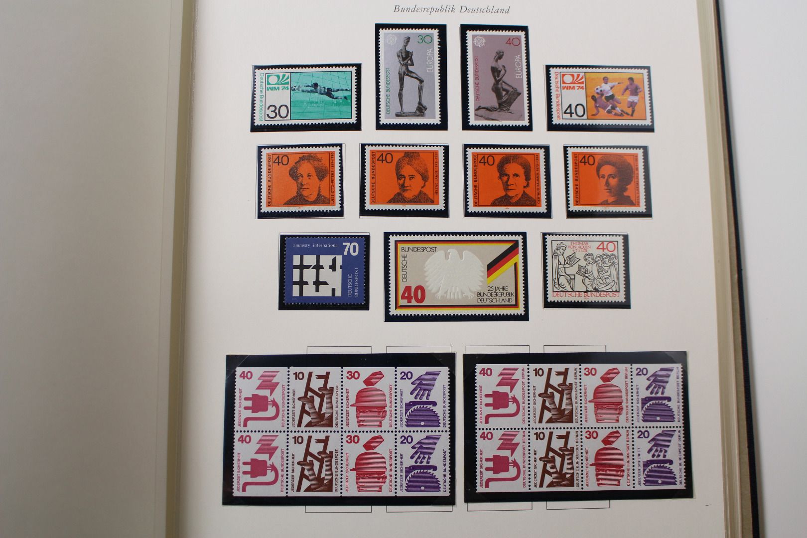 Die Berlin Sammlung in 2 Lindner T Vordruckalben mit einigen besseren Anfangsausgaben, sonst ab Ende der 1950er bis Mitte der 1980er Jahre ganz gut besetzt. Die BRD in 5 Borek Vordruckalben bis zum Jahr 2000. Ab Mitte der 1950er Jahre meist postfrisch umfangreich. Einige Jahre der Borek Vordrucke mit schwarzen Klemmtaschen. Die Qualität ist unterschiedlich.
