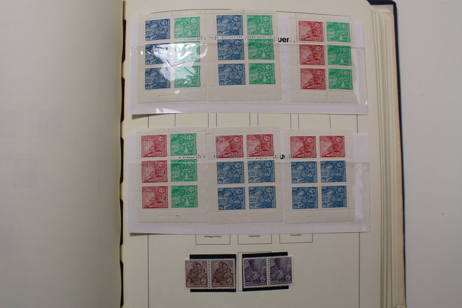 Die DDR Sammlung ist in den Anfangsjahren ganz gut besetzt, später in den 1960er Jahren dann lückenhafter und endet 1971. Untergebracht in einem alten Leuchtturm Vordruck. Die Bundesrepublik wurde gestempelt und postfrisch/ungebraucht gesammelt und beginnt ab 1949-1990, teils mit besseren Ausgaben. Später auch lückenhafter vorhanden. Untergebracht in insgesamt 8 Lindner T Vordruckalben. Die Qualität ist etwas unterschiedlich.