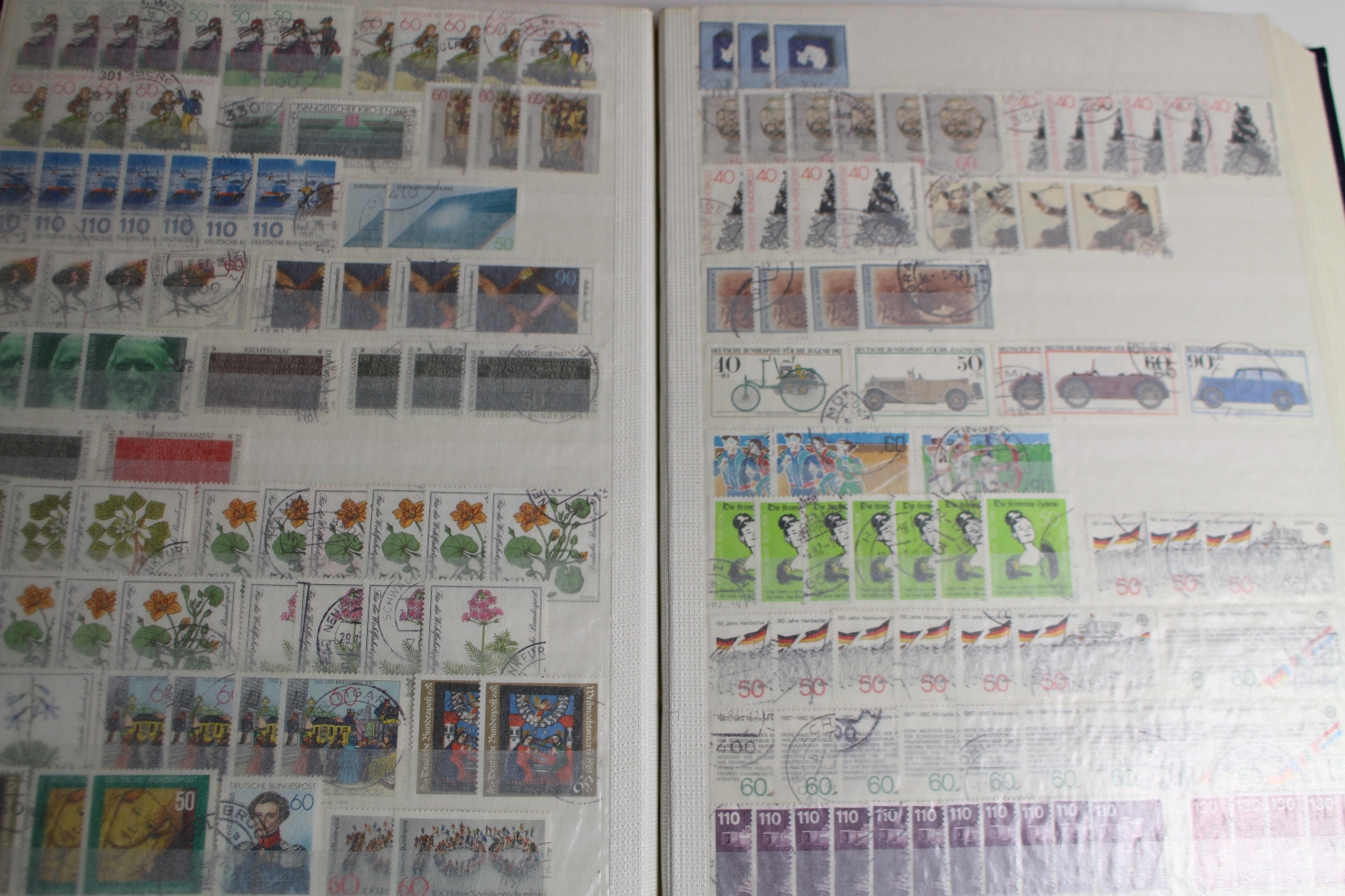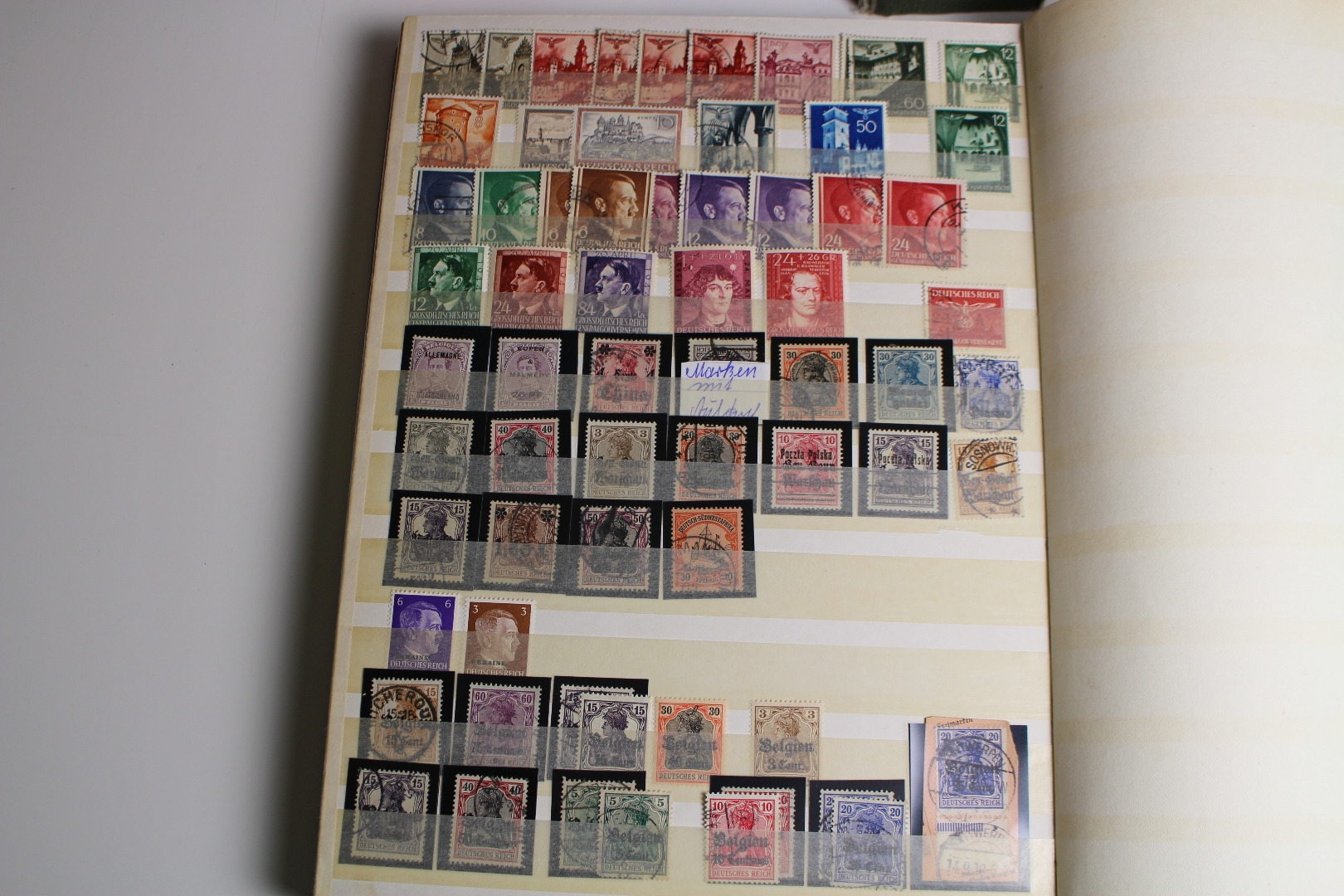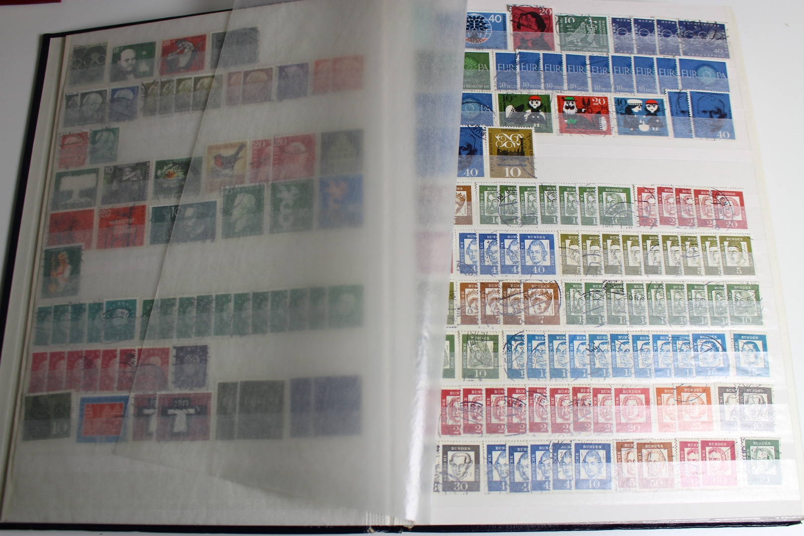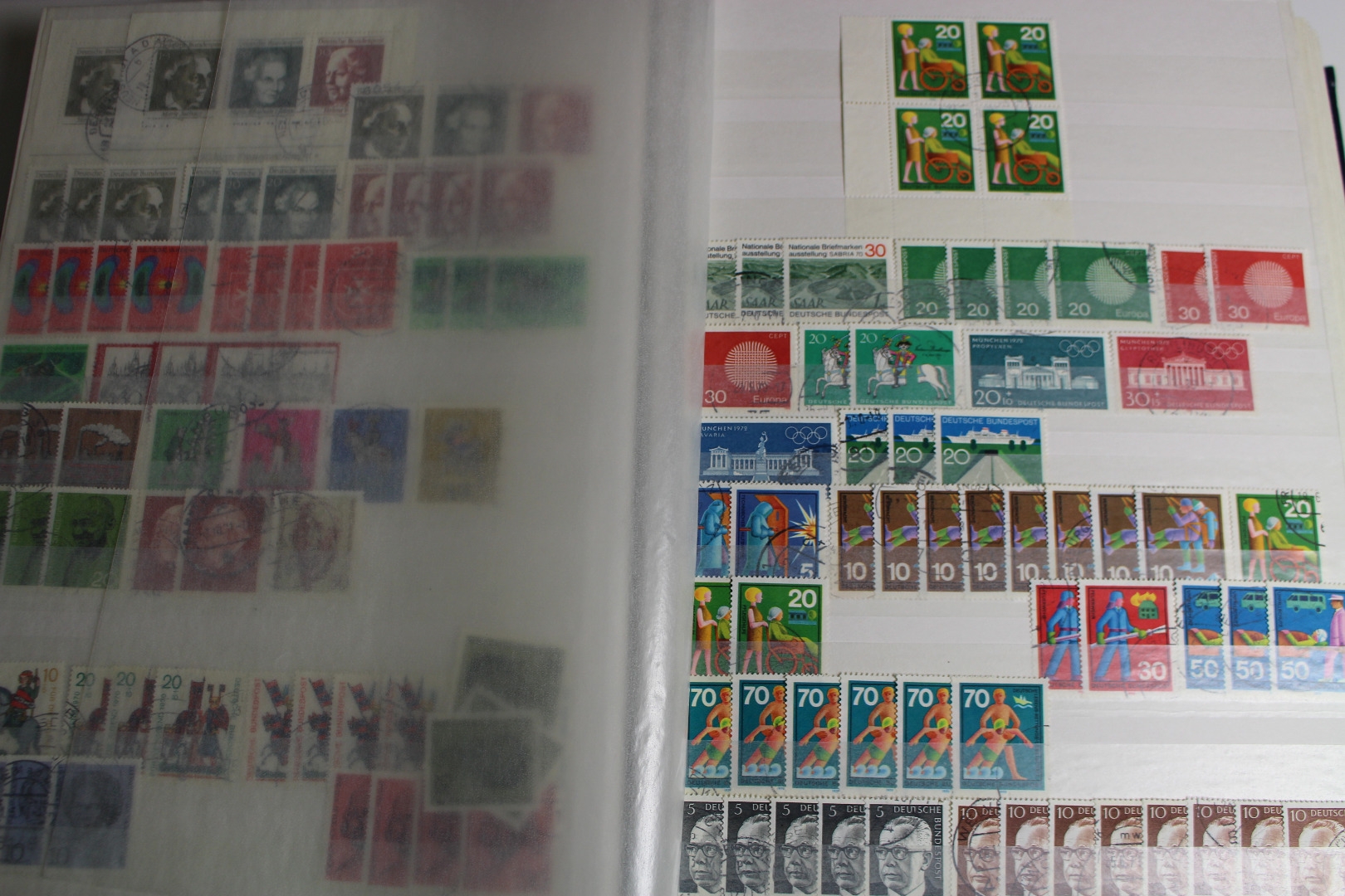 Enthalten ist eine Deutsches Reich Sammlung im Einsteckalbum, eine gestempelte BRD Sammlung auf selbstgestalteten Blättern mit Klemmtaschen und Material aus anderen Gebieten. Dazu gibt es eine alte Europa Schaubek-Schwarte mit etwas Inhalt. Text nicht komplett. Die Qualität ist wie üblich etwas unterschiedlich - meist aber ganz gut.
