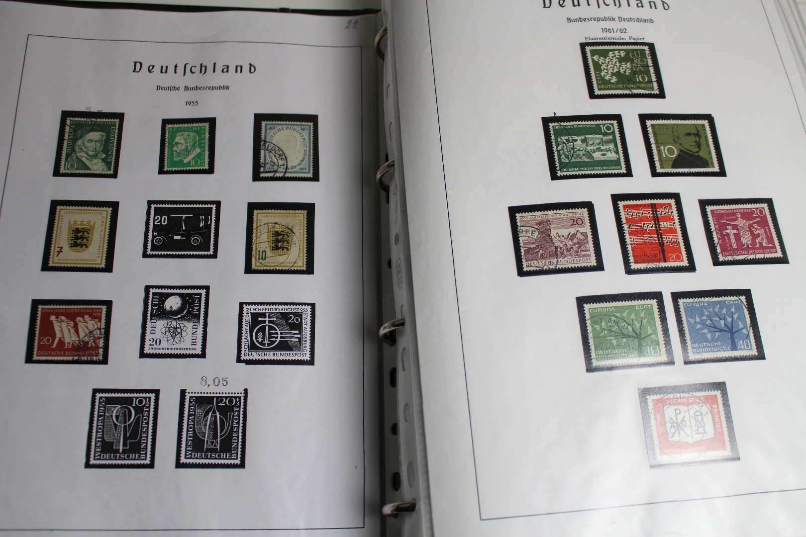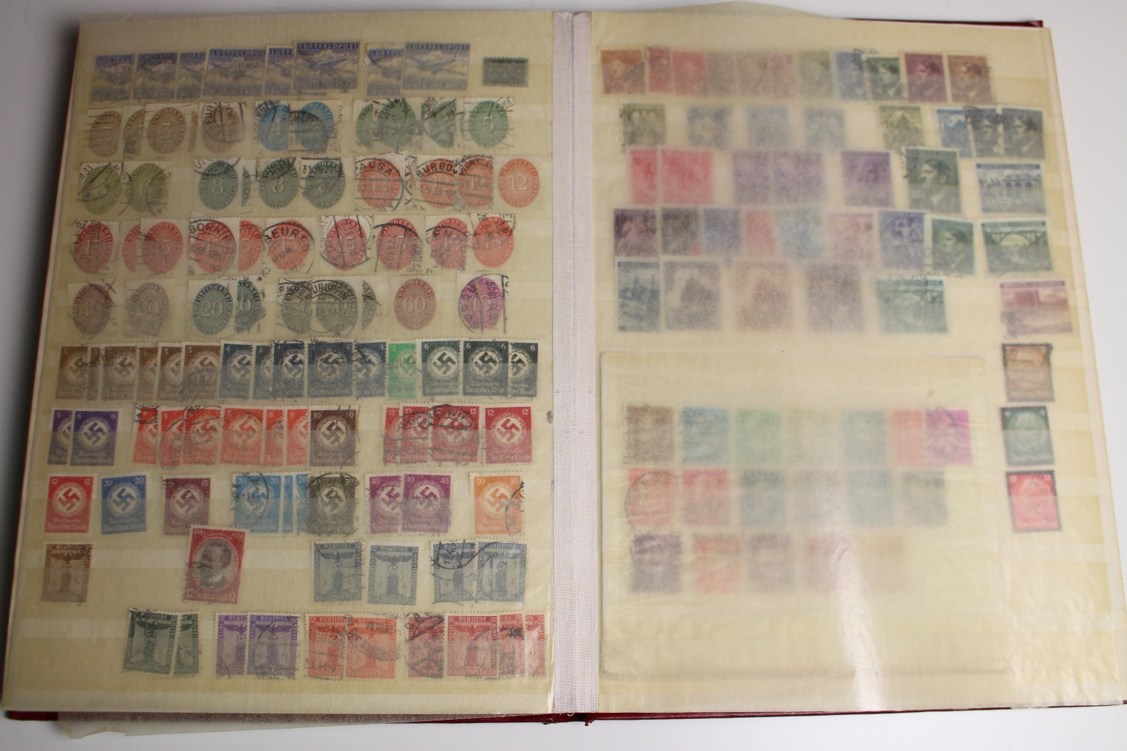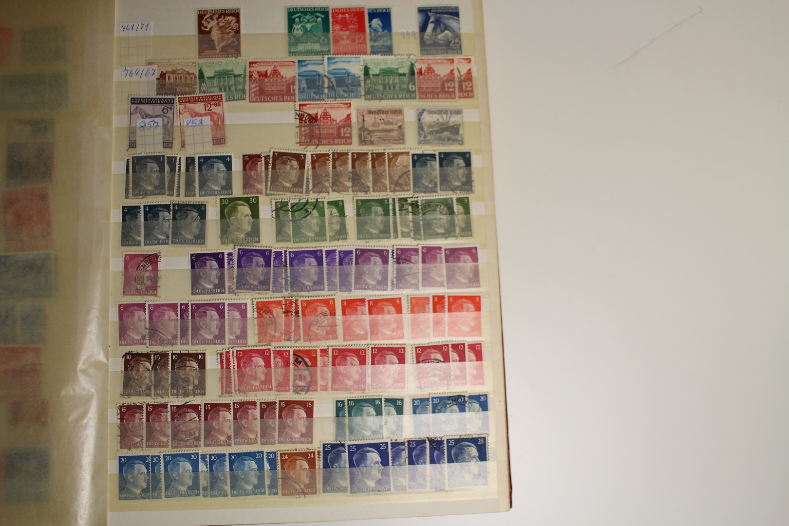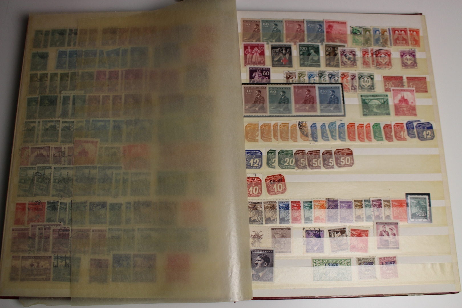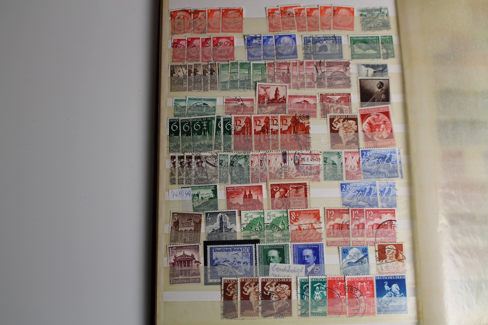 Enthalten ist eine Deutsches Reich Sammlung im Einsteckalbum, eine gestempelte BRD Sammlung auf selbstgestalteten Blättern mit Klemmtaschen und Material aus anderen Gebieten. Dazu gibt es eine alte Europa Schaubek-Schwarte mit etwas Inhalt. Text nicht komplett. Die Qualität ist wie üblich etwas unterschiedlich - meist aber ganz gut.
