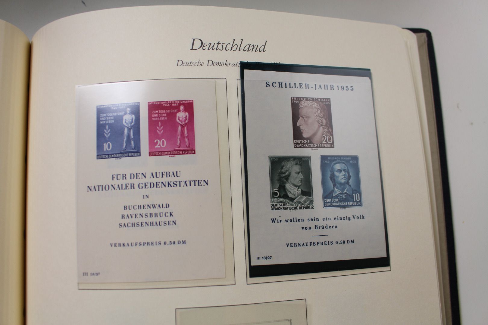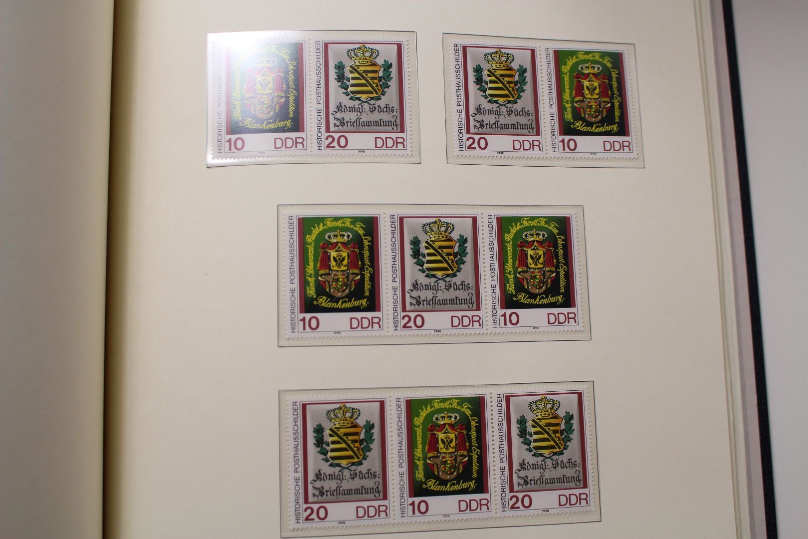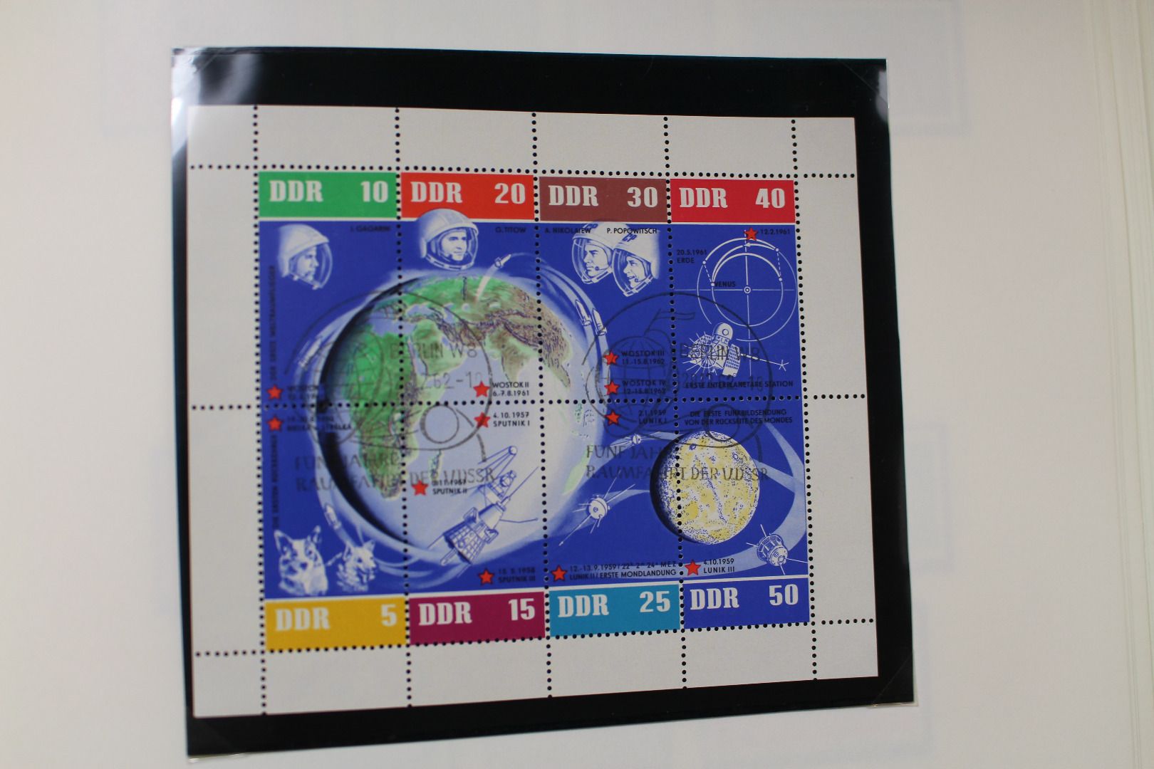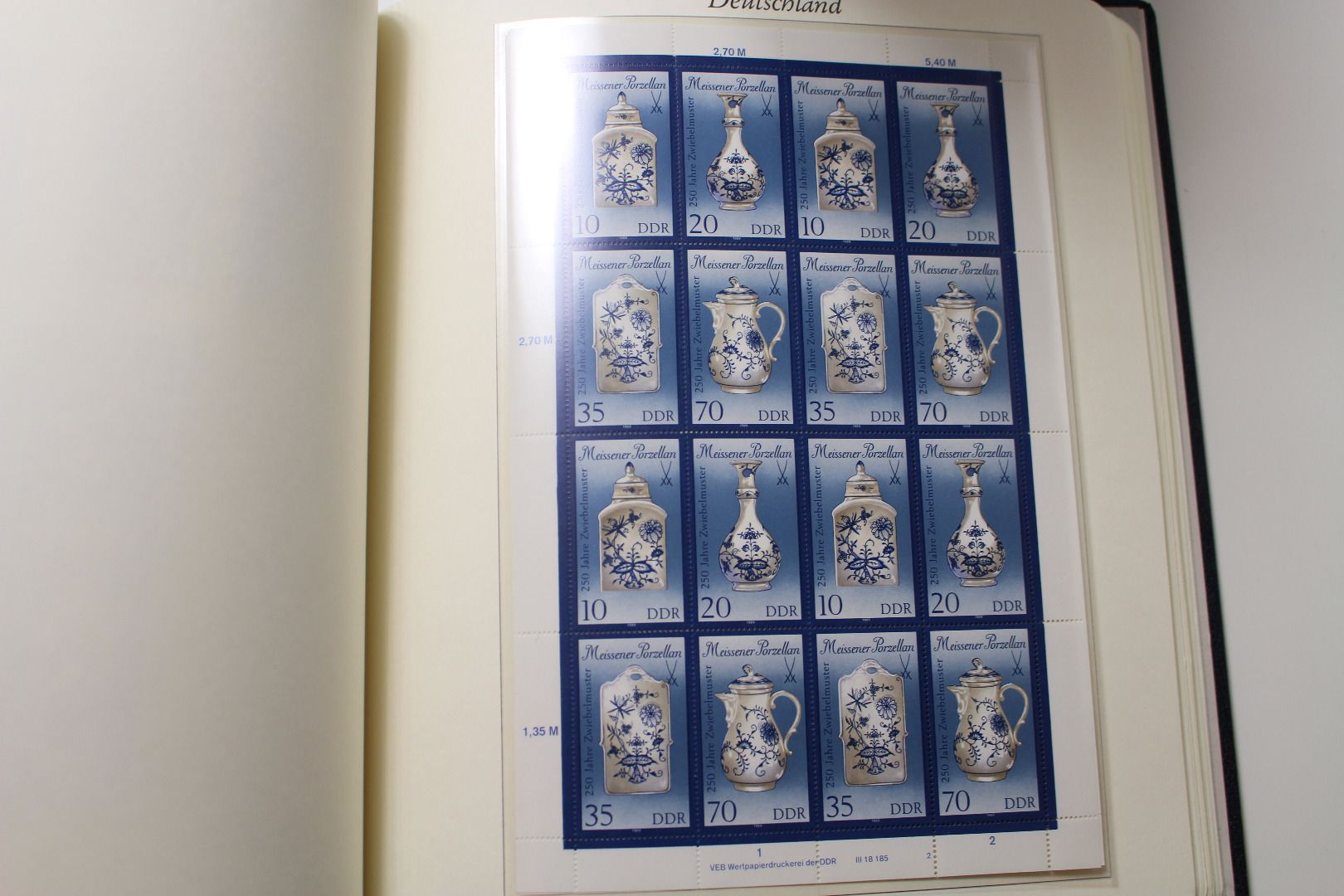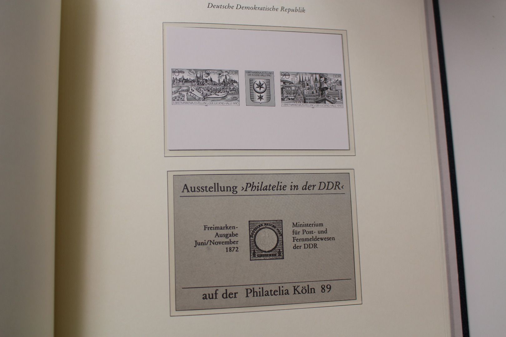 DDR von 1949-1990 in 9 Borek Vordruckalben mit vielen Besonderheiten wie die Einzelmarken aus Blockausgaben und Kleinbögen, einigen Zussammendruckbögen, Schwarzdrucken usw. Dazu gibts noch etwas BRD und Berlin sowie Zonen. Die Qualität ist unterschiedlich.