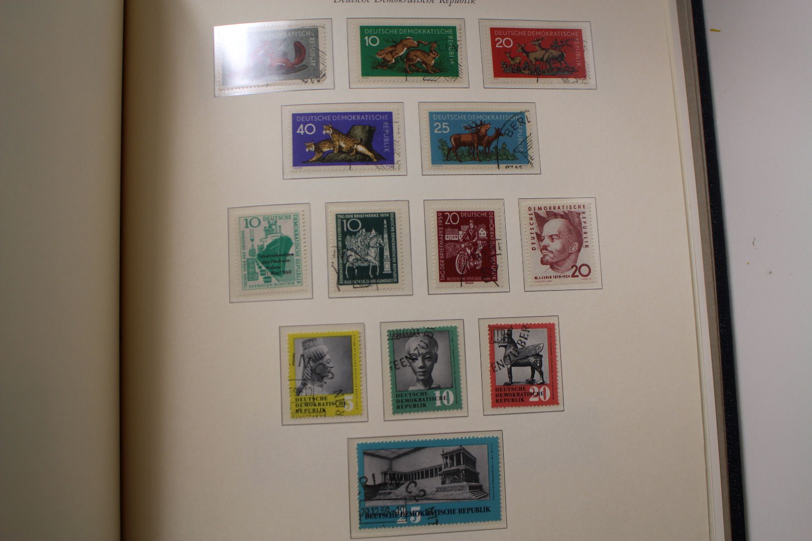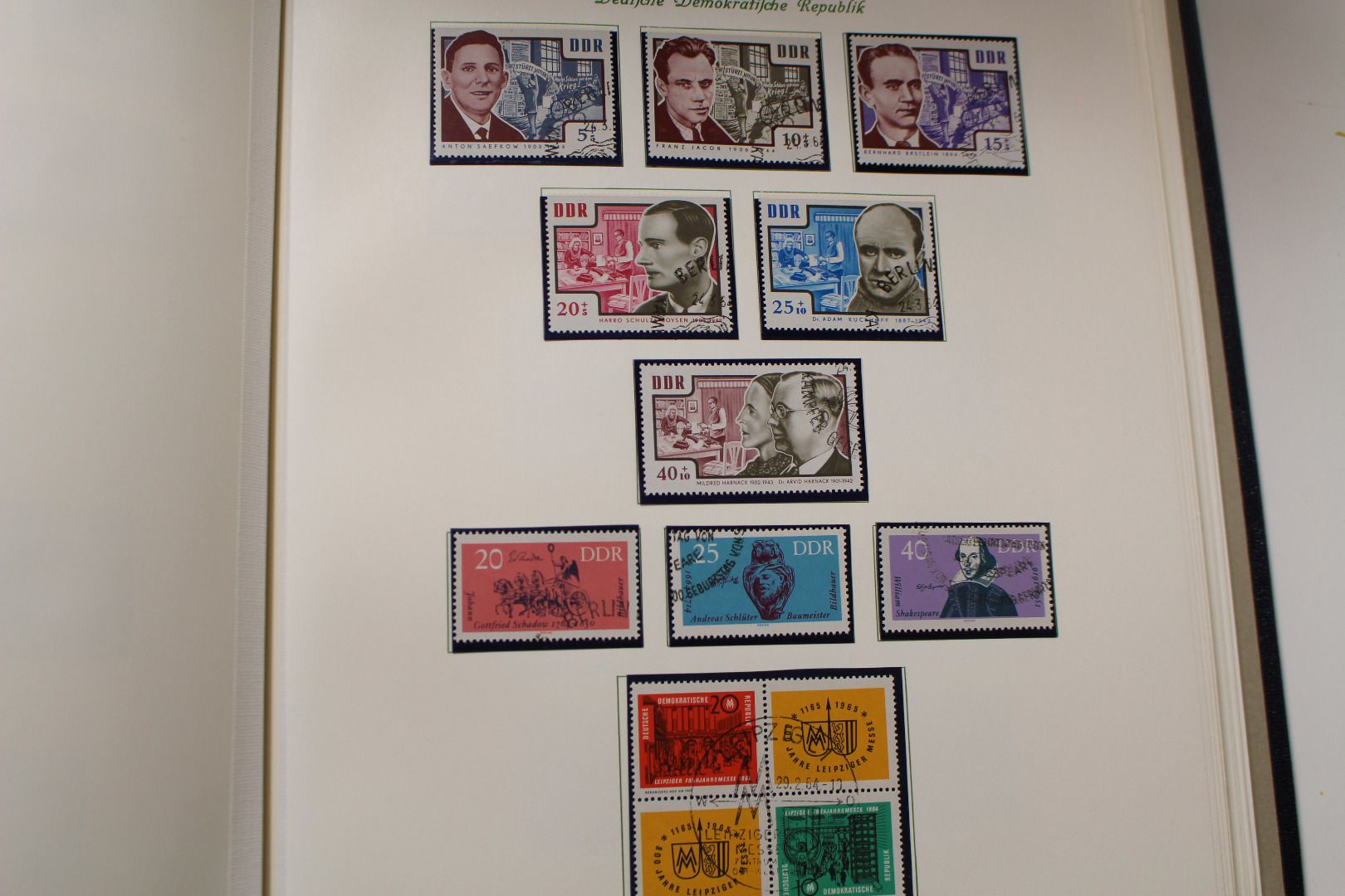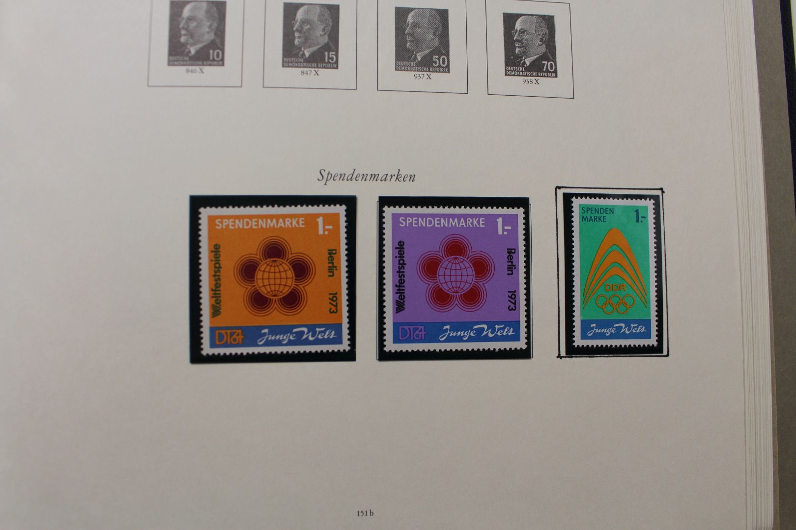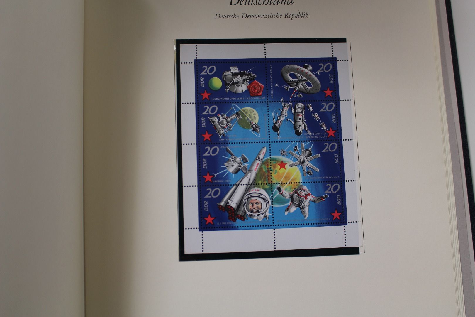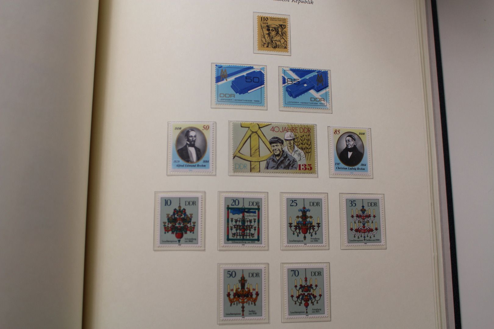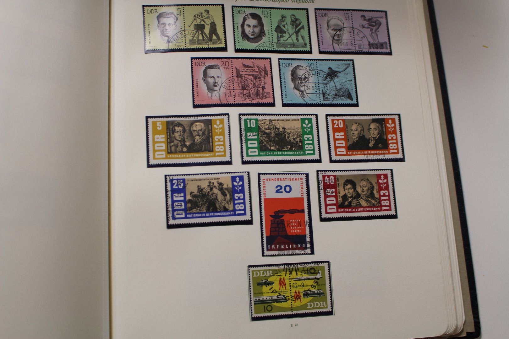 DDR von 1949-1990 in 9 Borek Vordruckalben mit vielen Besonderheiten wie die Einzelmarken aus Blockausgaben und Kleinbögen, einigen Zussammendruckbögen, Schwarzdrucken usw. Dazu gibts noch etwas BRD und Berlin sowie Zonen. Die Qualität ist unterschiedlich.