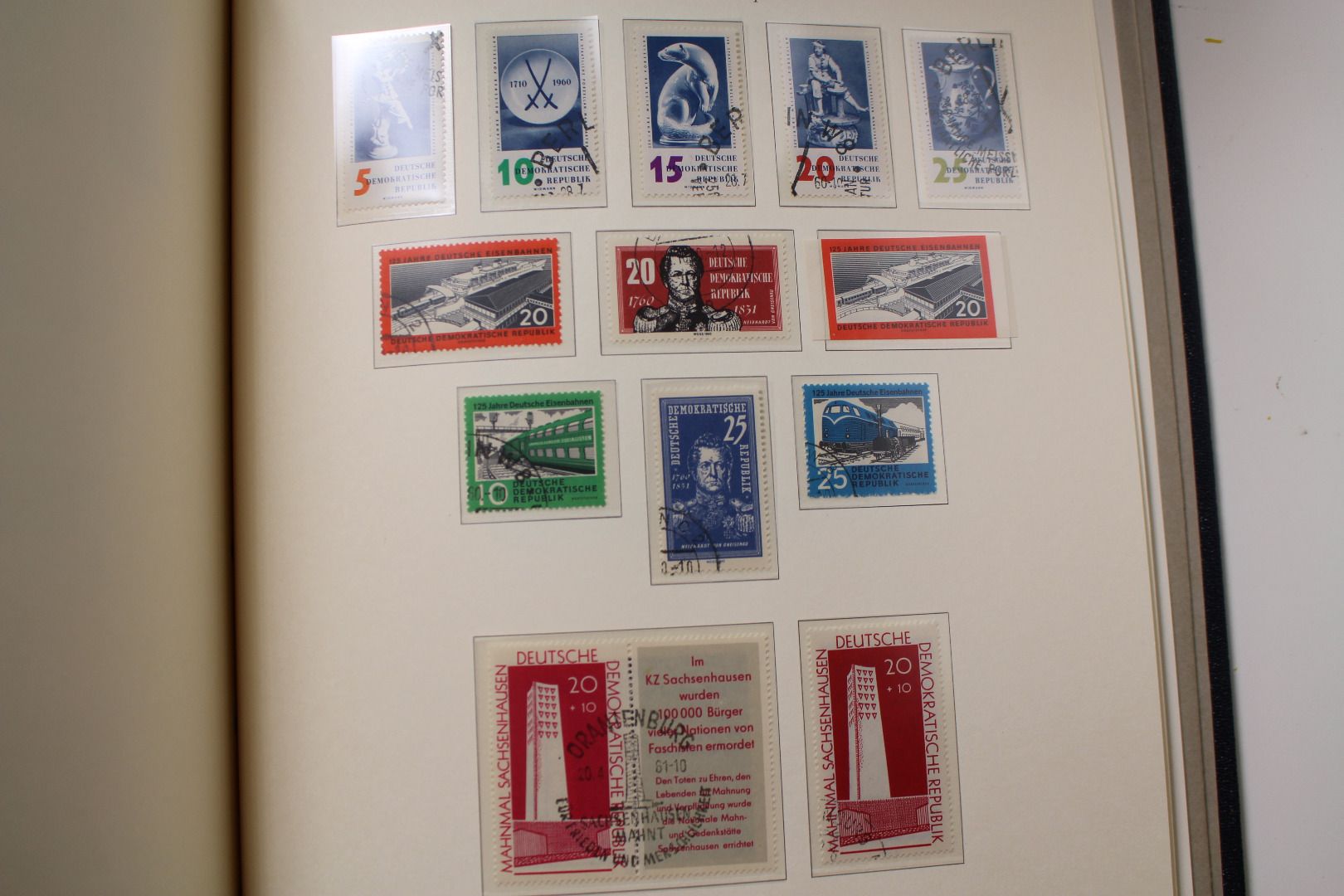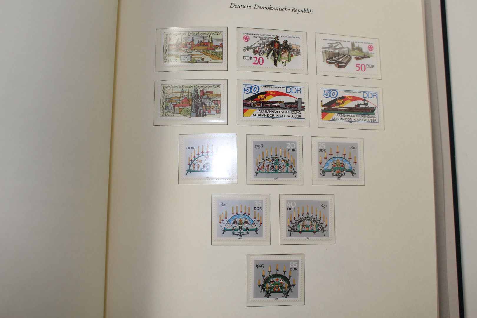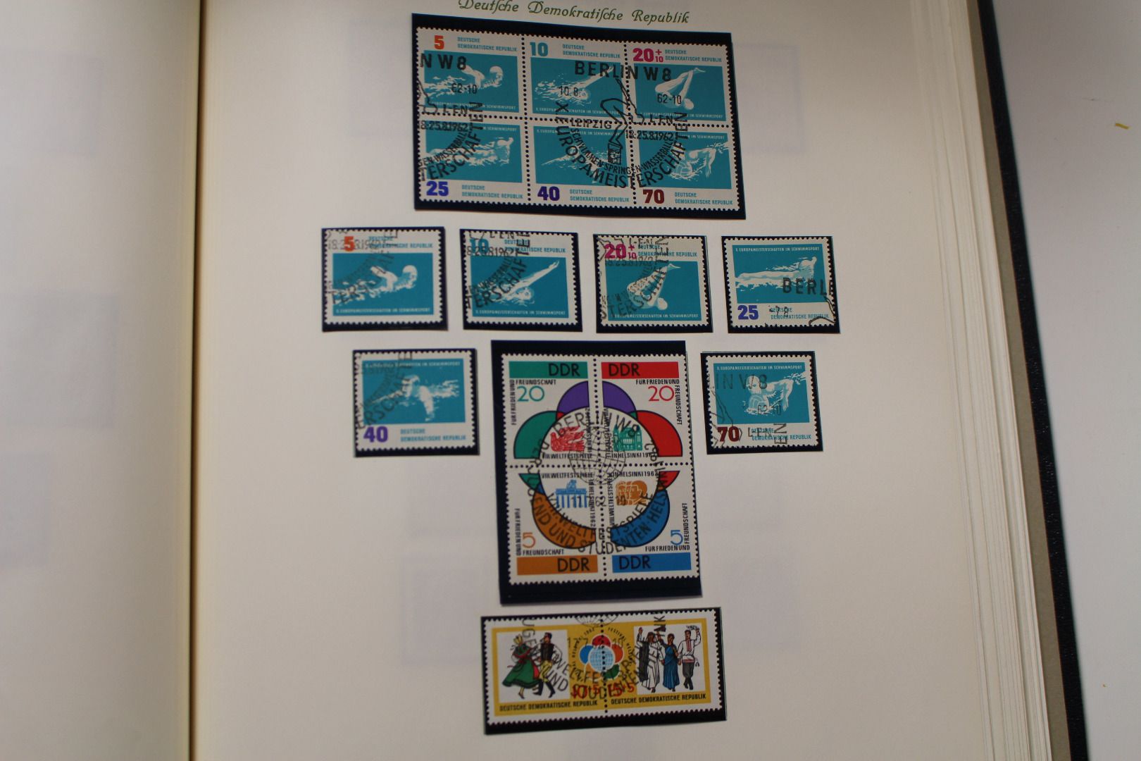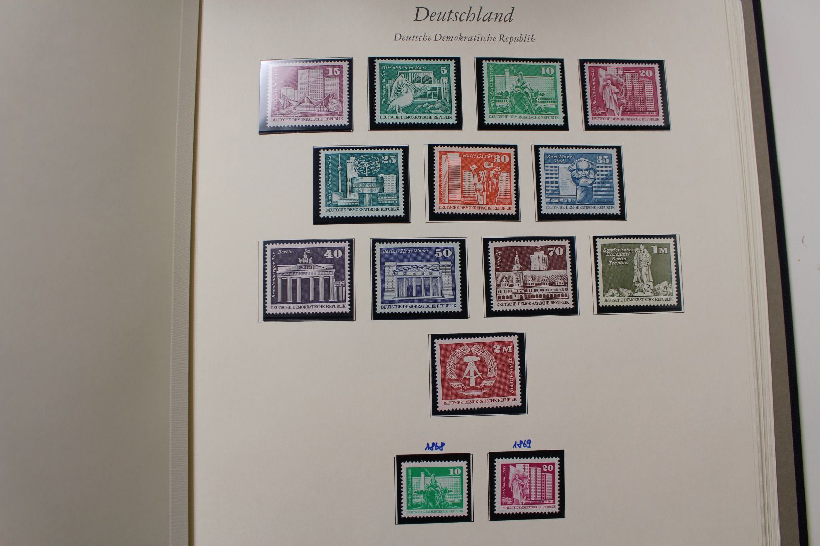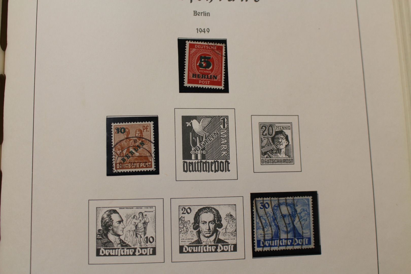 DDR von 1949-1990 in 9 Borek Vordruckalben mit vielen Besonderheiten wie die Einzelmarken aus Blockausgaben und Kleinbögen, einigen Zussammendruckbögen, Schwarzdrucken usw. Dazu gibts noch etwas BRD und Berlin sowie Zonen. Die Qualität ist unterschiedlich.