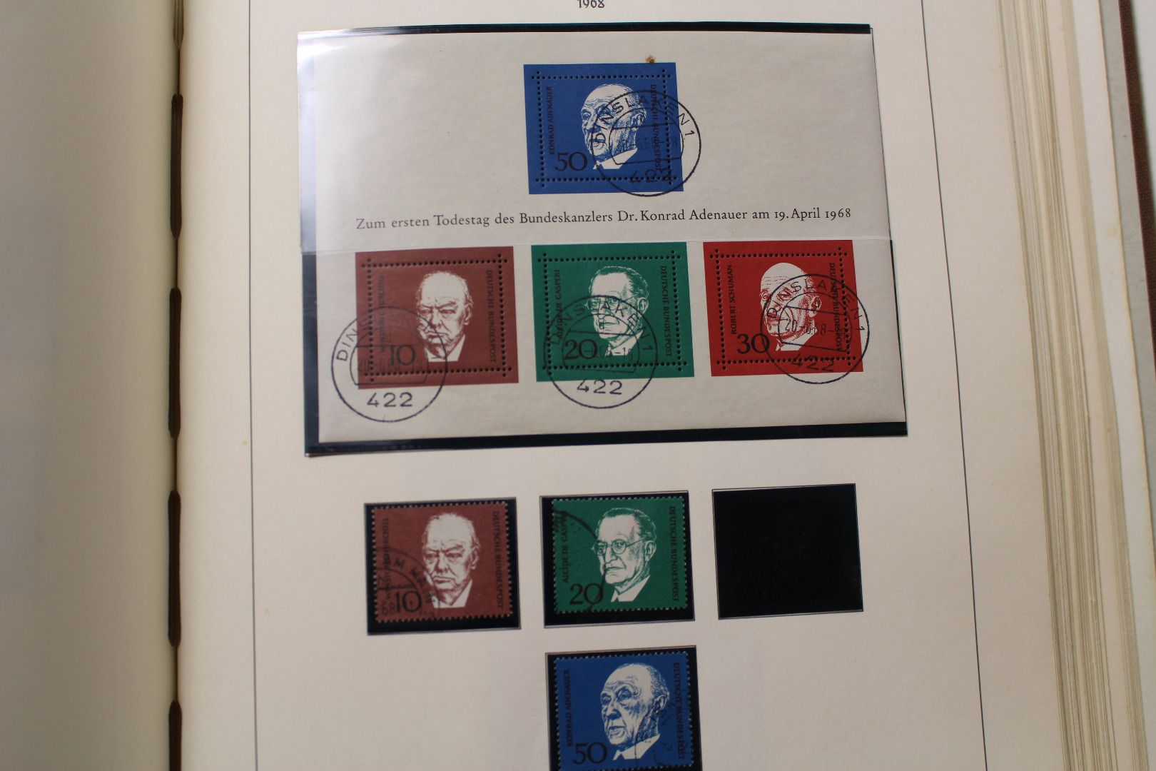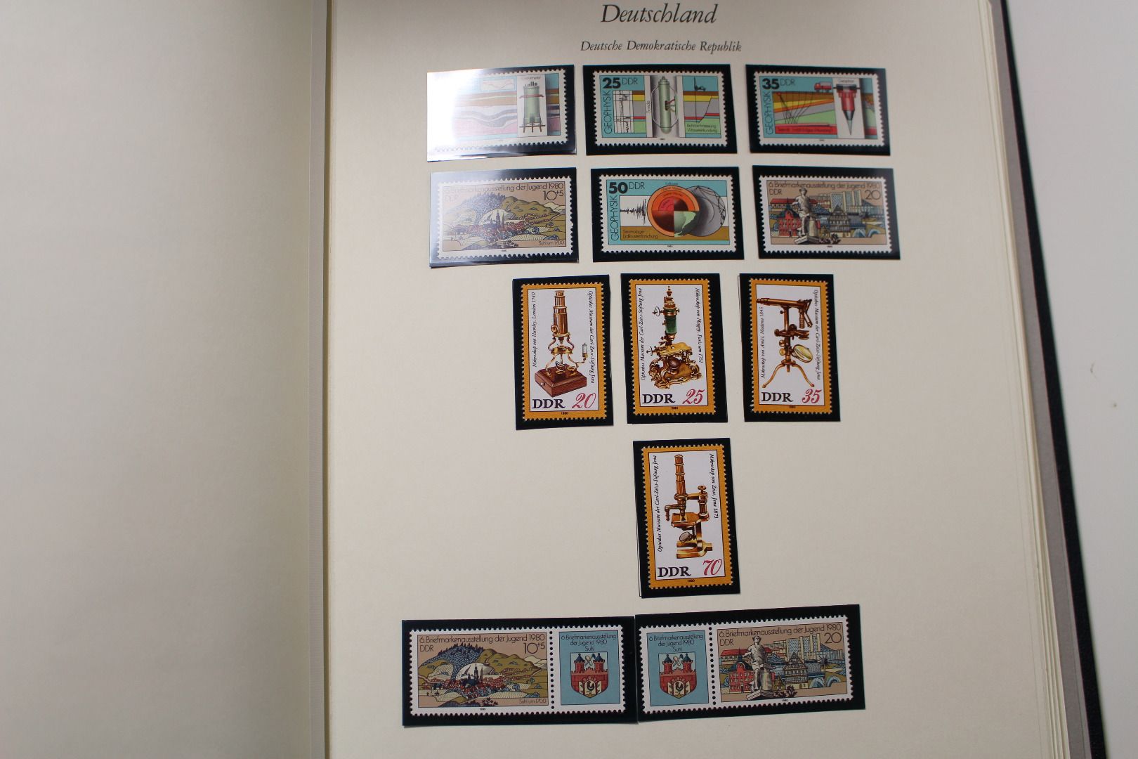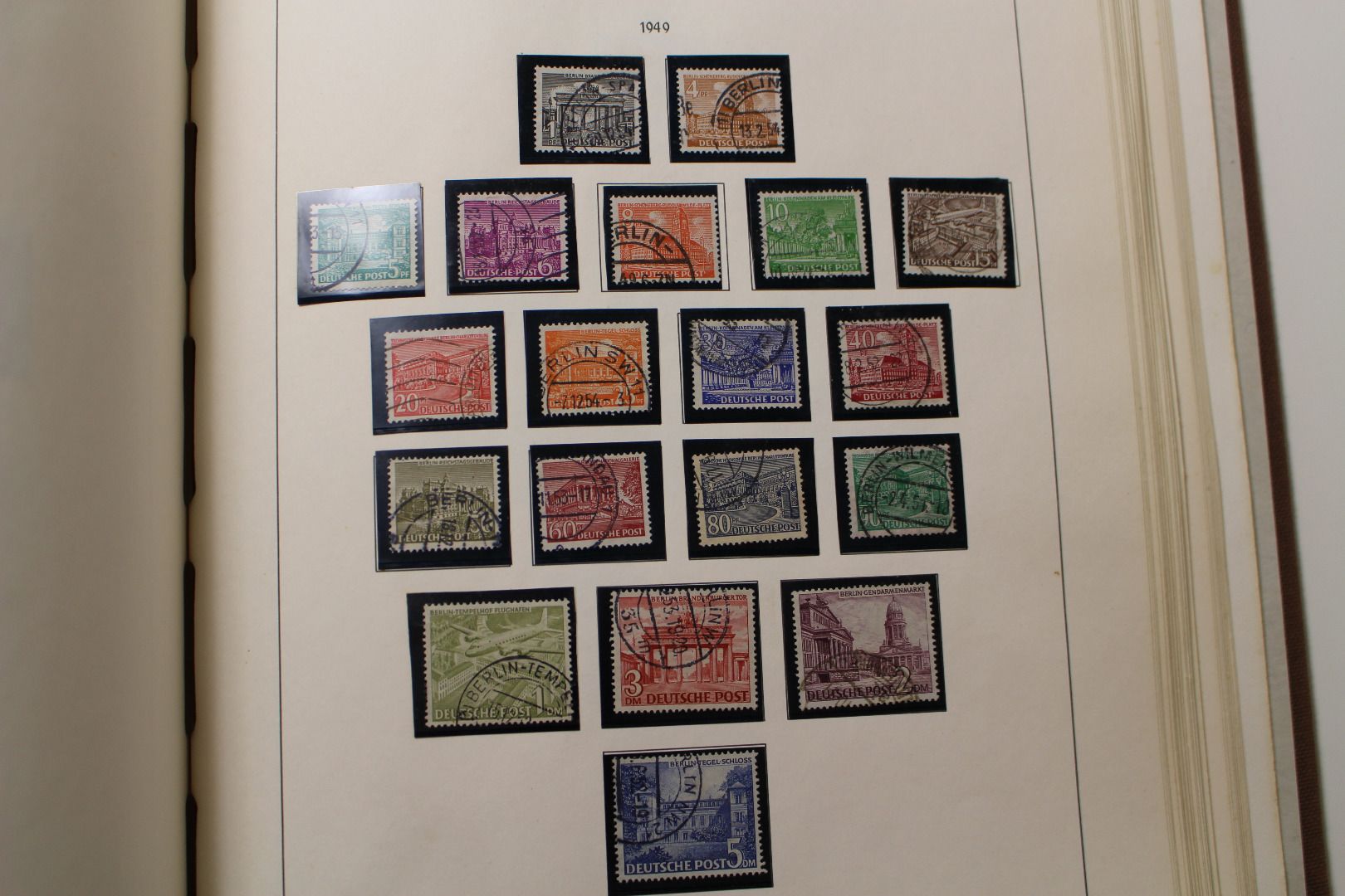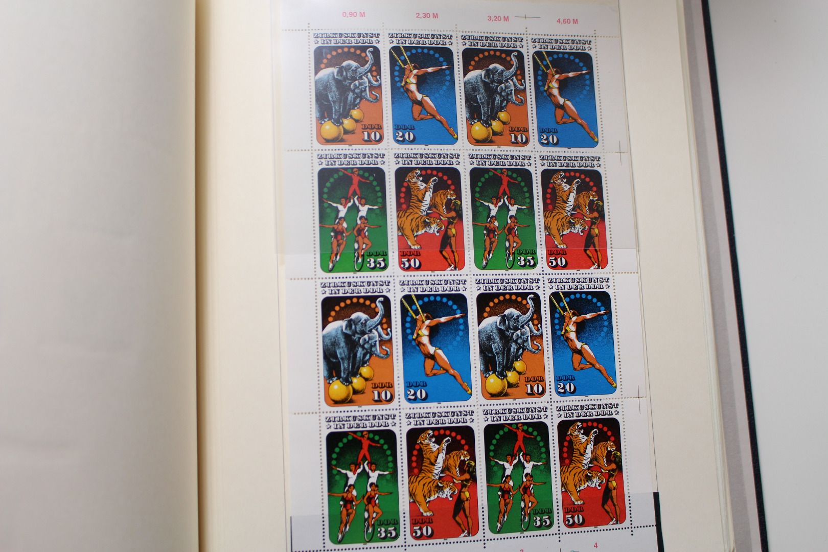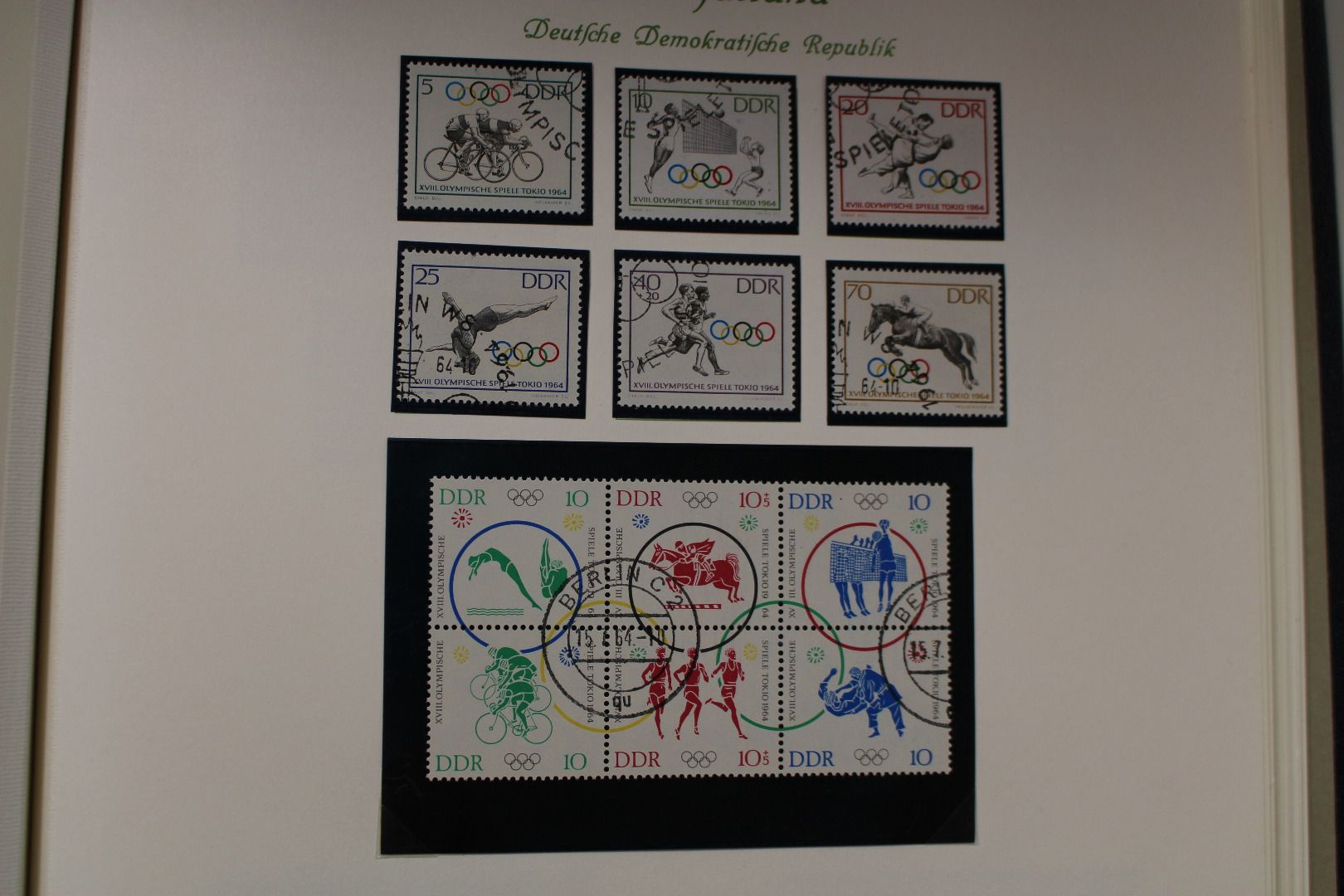 DDR von 1949-1990 in 9 Borek Vordruckalben mit vielen Besonderheiten wie die Einzelmarken aus Blockausgaben und Kleinbögen, einigen Zussammendruckbögen, Schwarzdrucken usw. Dazu gibts noch etwas BRD und Berlin sowie Zonen. Die Qualität ist unterschiedlich.