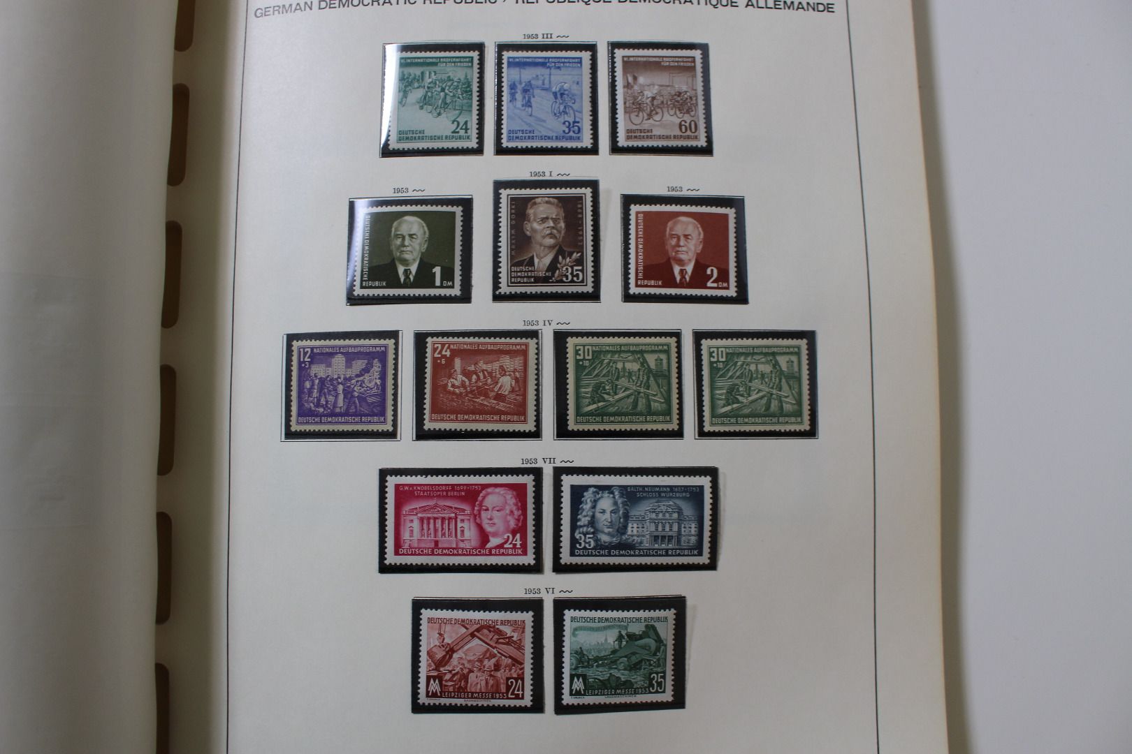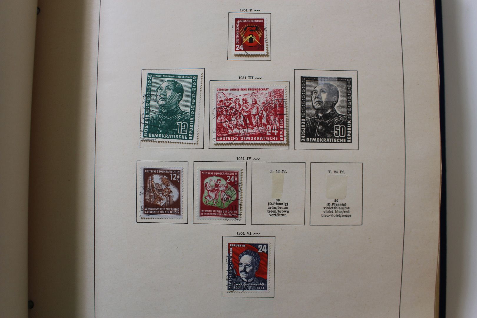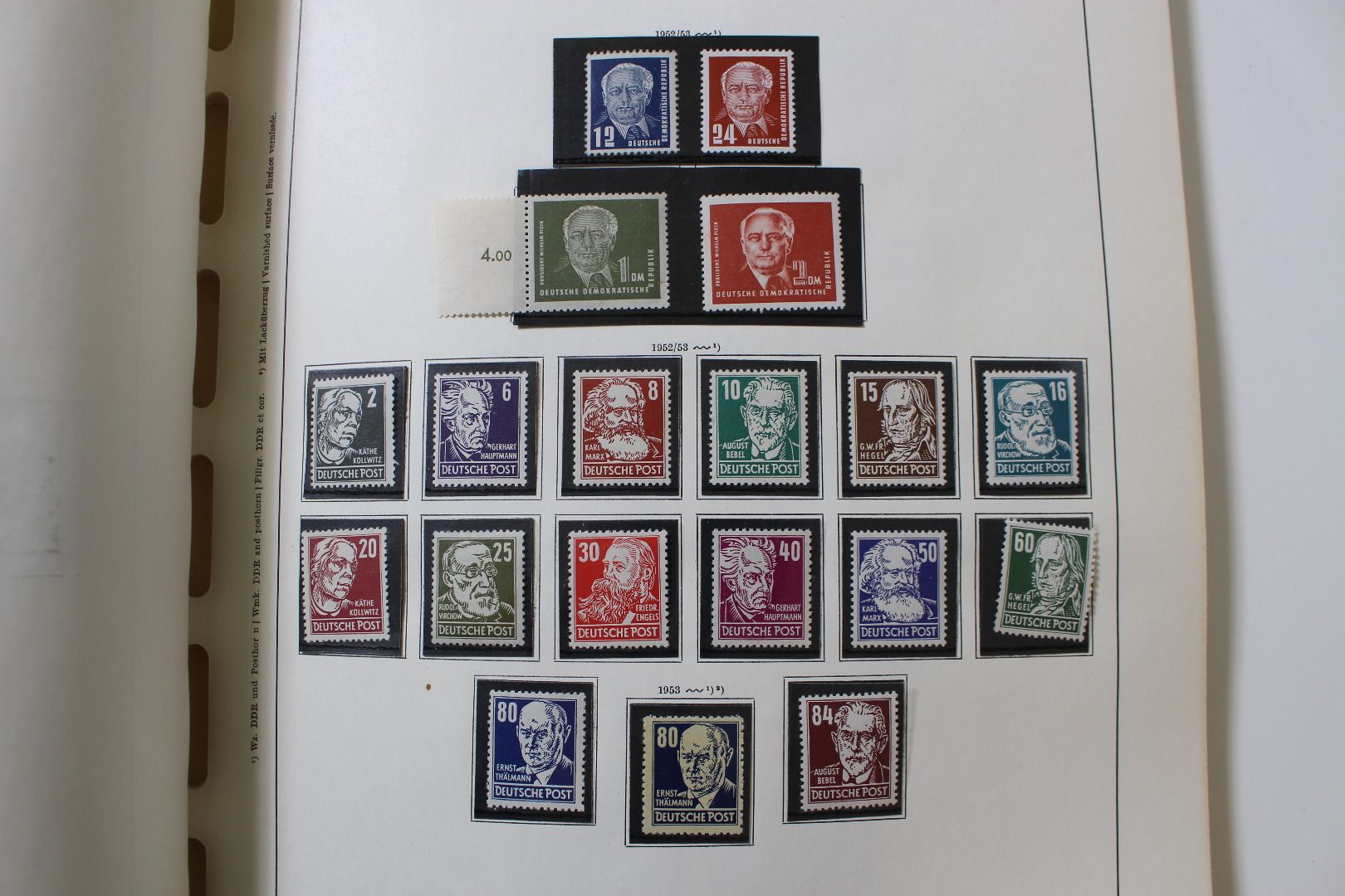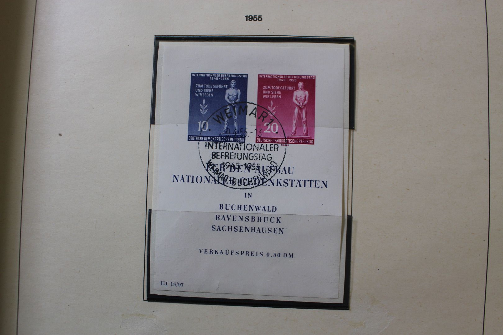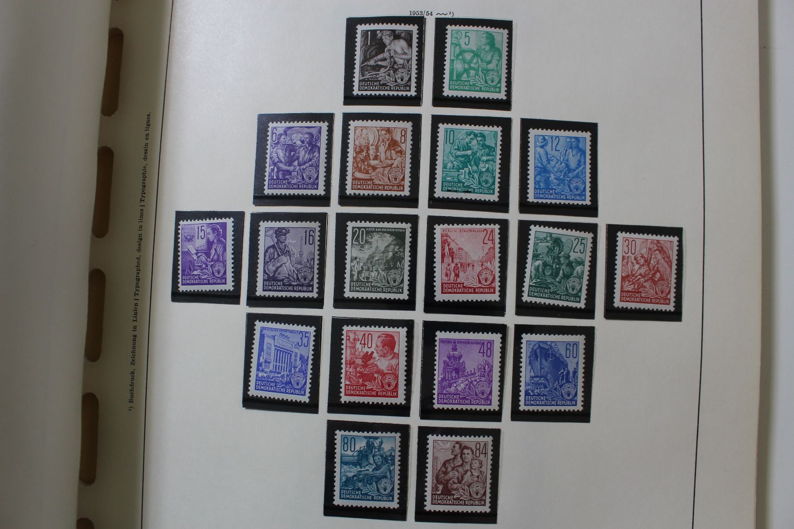 Die DDR ist in den 1950er Jahren fast komplett, gesammelt wurde überwiegend ungebraucht, etwas auch postfrisch. Dazu gibts eine kleine DDR gestempelte Restsammlung sowie 2 BRD prall gefüllte Dublettenalben mit gestempeltem Material aus den 1990er Jahren (Plattenfehler???). zusätzlich liegen noch 3 Alben mit diversen anderen Marken bei.
