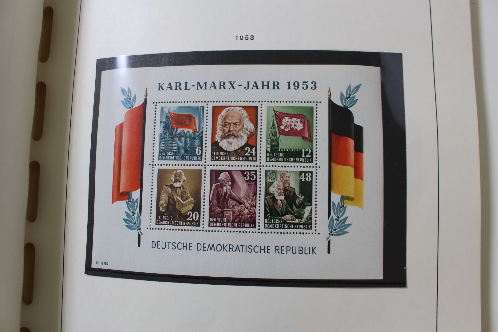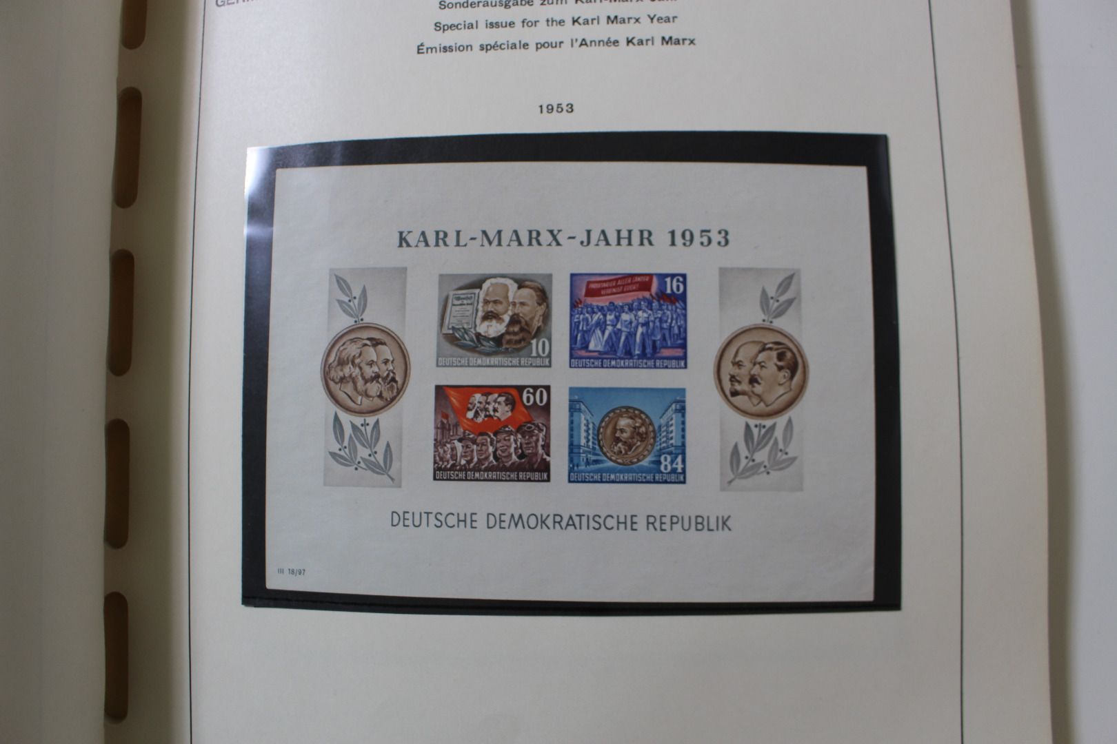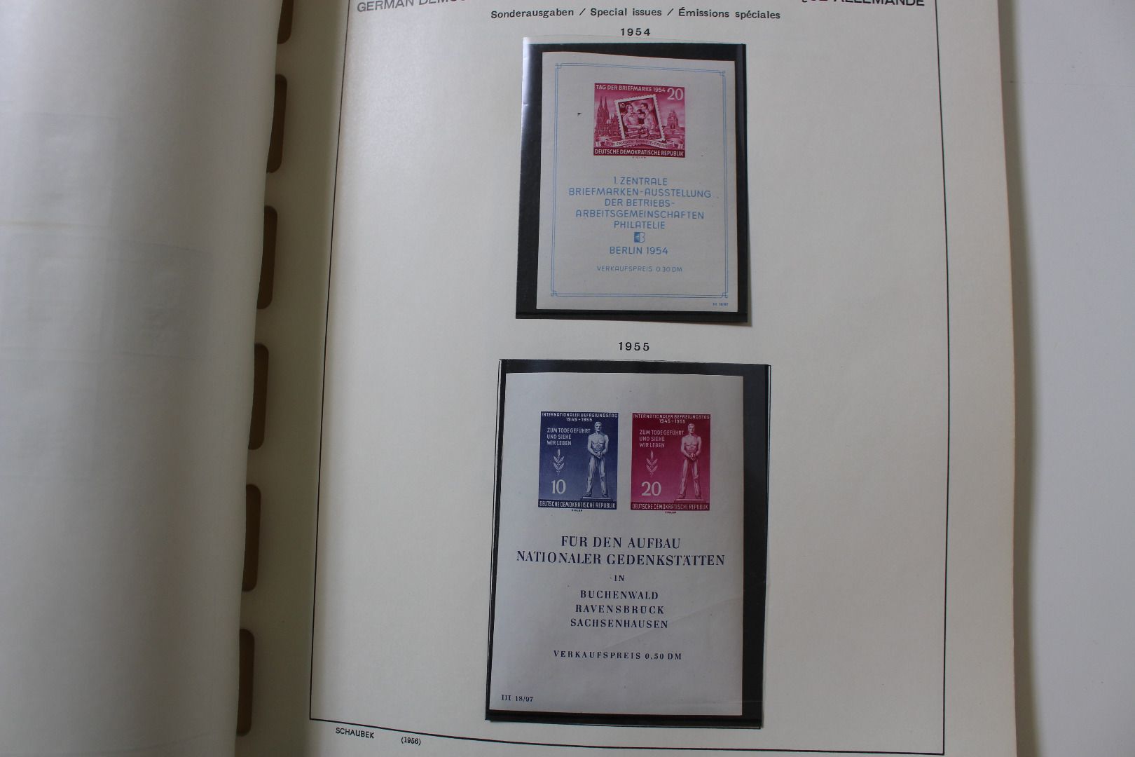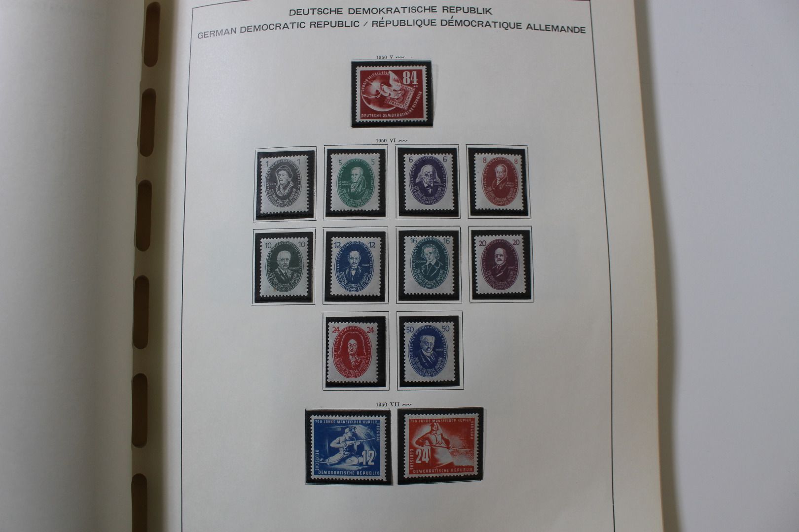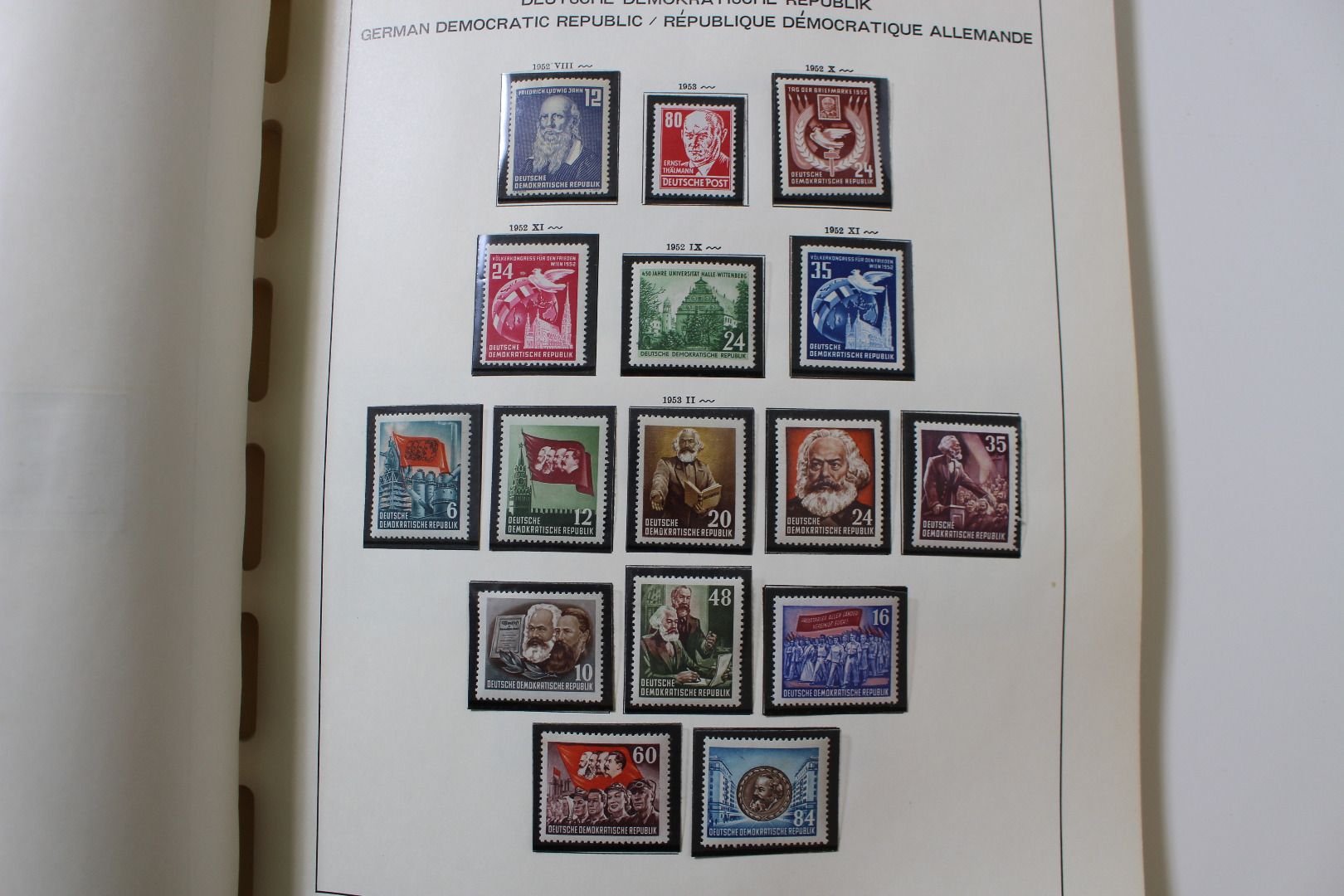 Die DDR ist in den 1950er Jahren fast komplett, gesammelt wurde überwiegend ungebraucht, etwas auch postfrisch. Dazu gibts eine kleine DDR gestempelte Restsammlung sowie 2 BRD prall gefüllte Dublettenalben mit gestempeltem Material aus den 1990er Jahren (Plattenfehler???). zusätzlich liegen noch 3 Alben mit diversen anderen Marken bei.