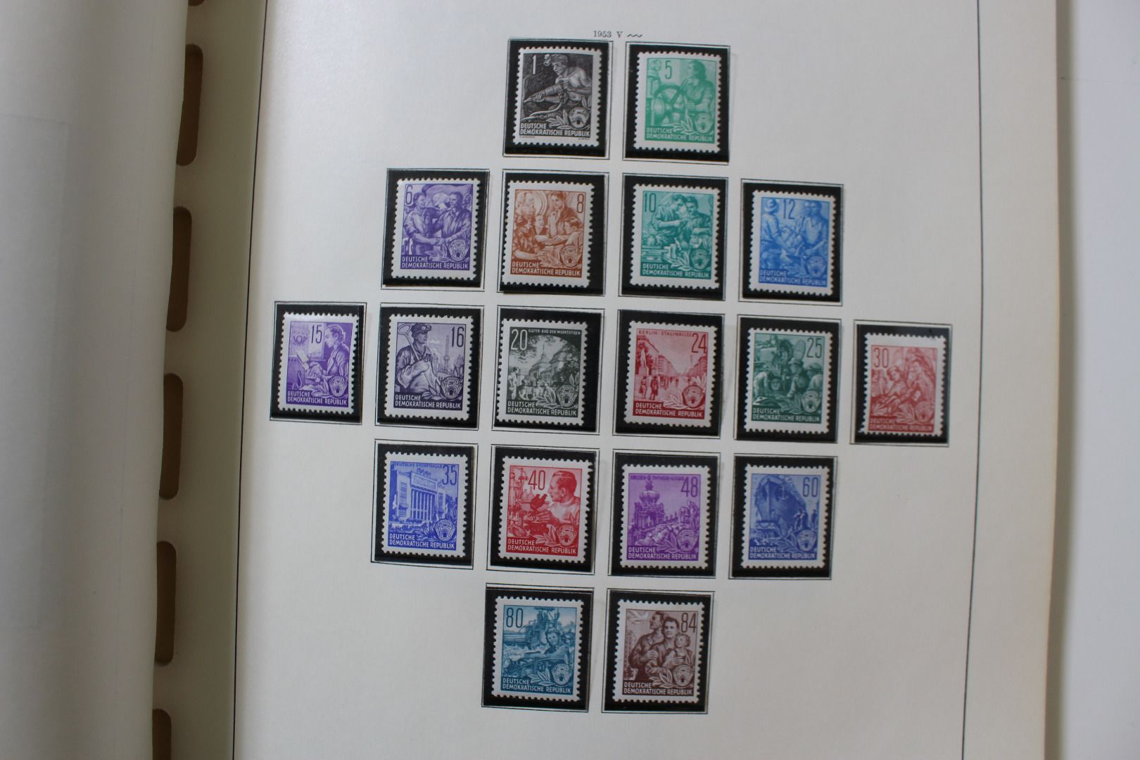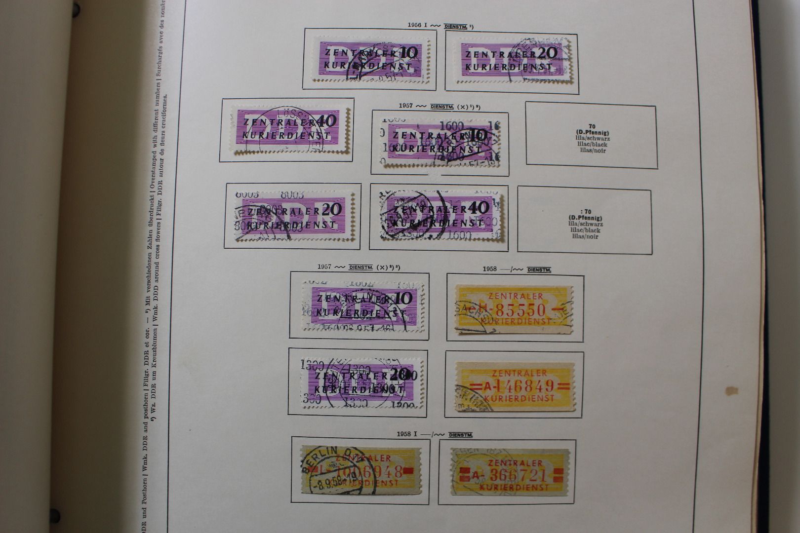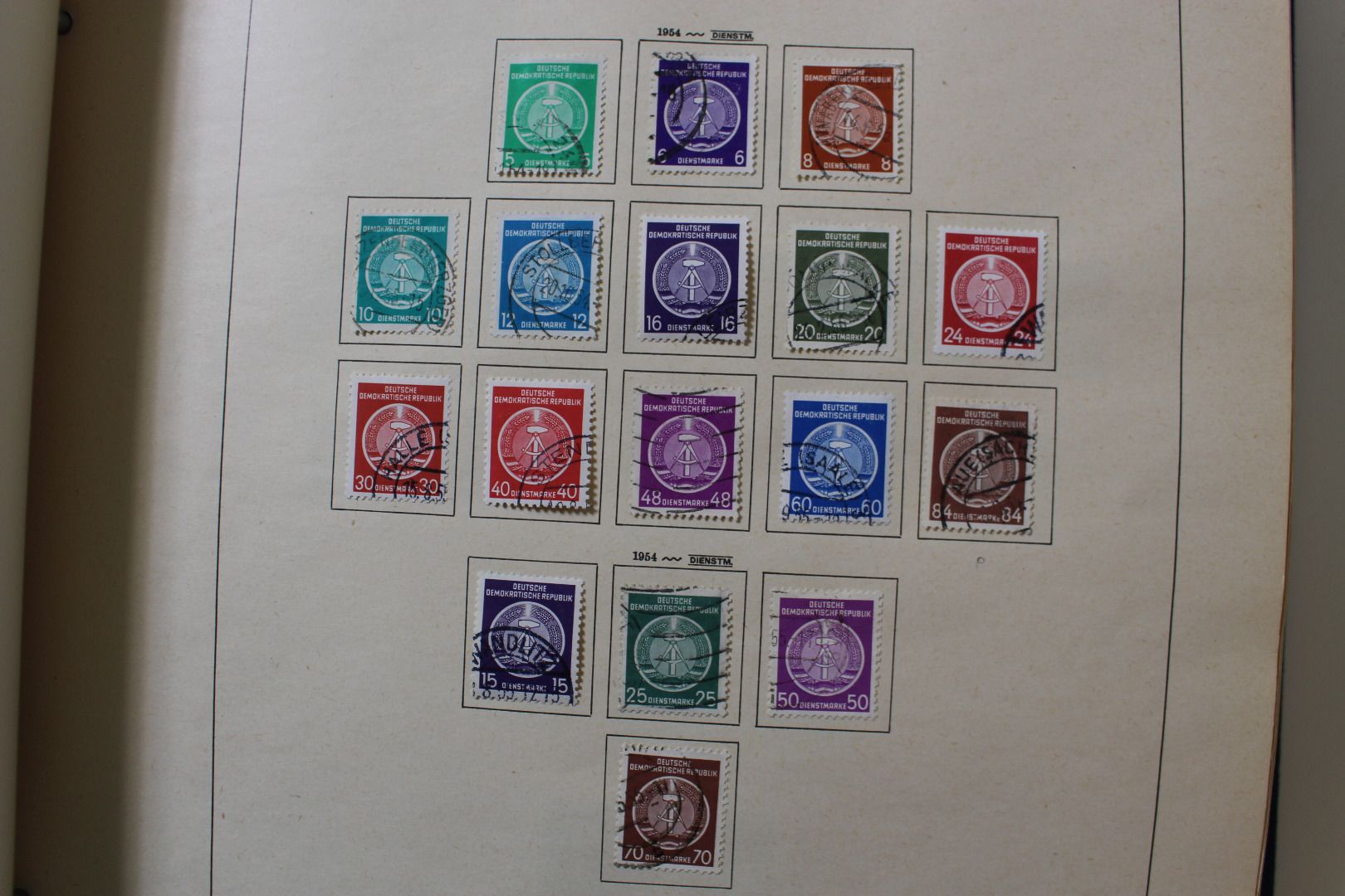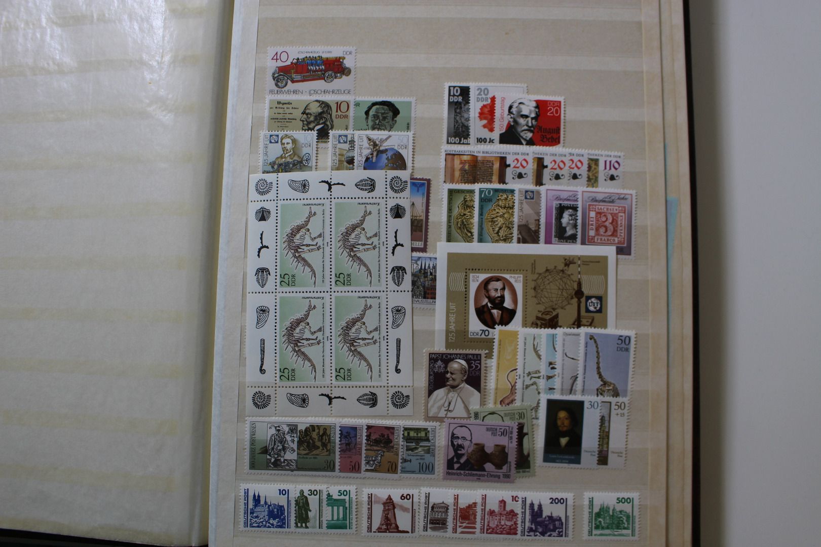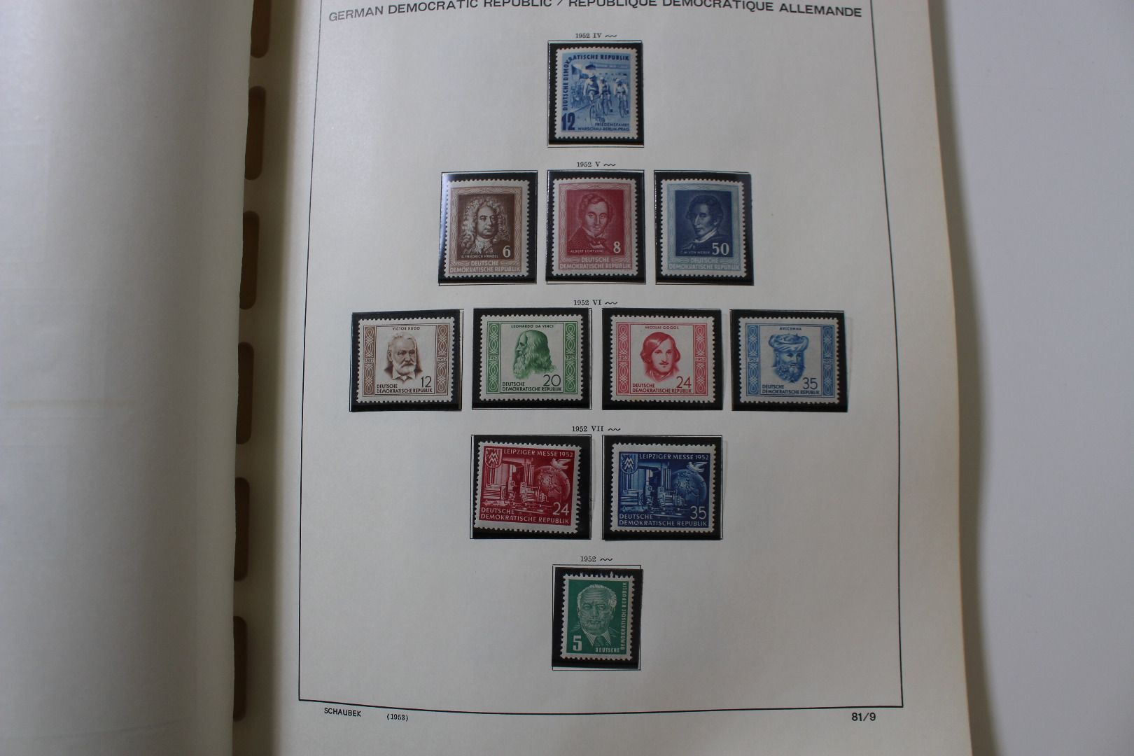 Die DDR ist in den 1950er Jahren fast komplett, gesammelt wurde überwiegend ungebraucht, etwas auch postfrisch. Dazu gibts eine kleine DDR gestempelte Restsammlung sowie 2 BRD prall gefüllte Dublettenalben mit gestempeltem Material aus den 1990er Jahren (Plattenfehler???). zusätzlich liegen noch 3 Alben mit diversen anderen Marken bei.