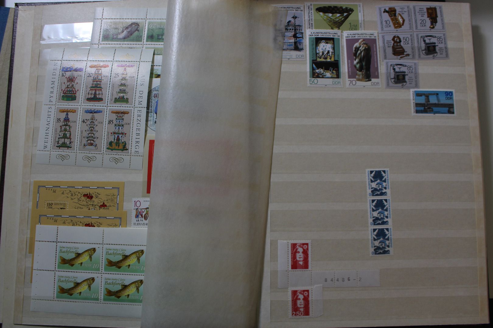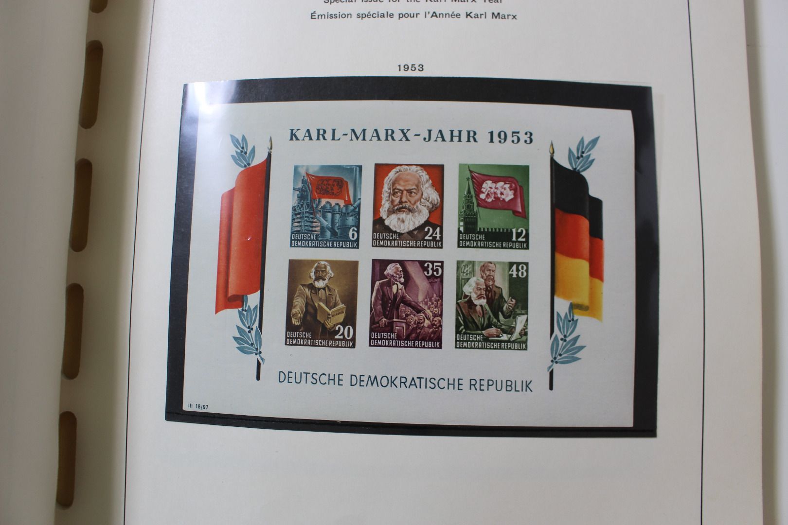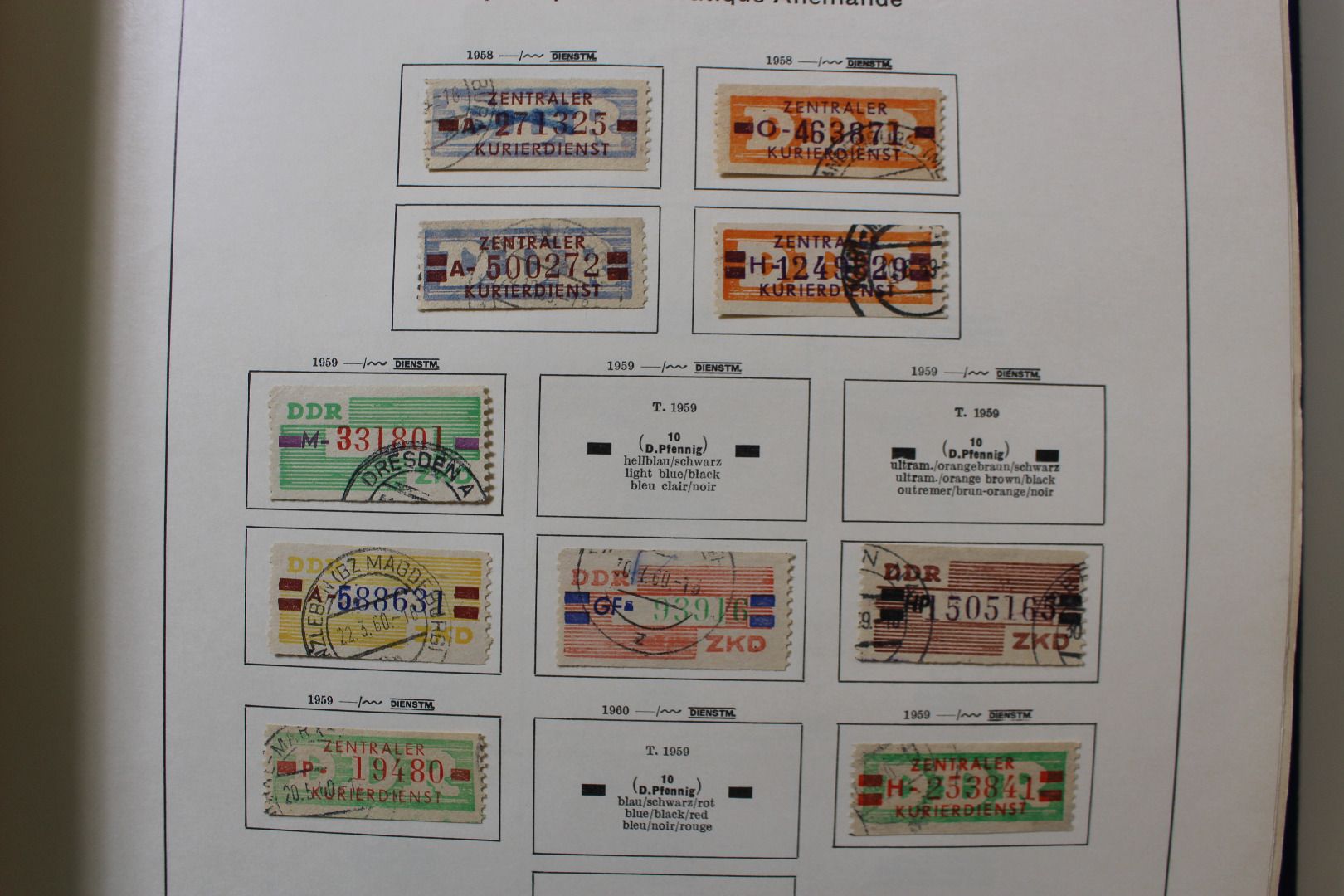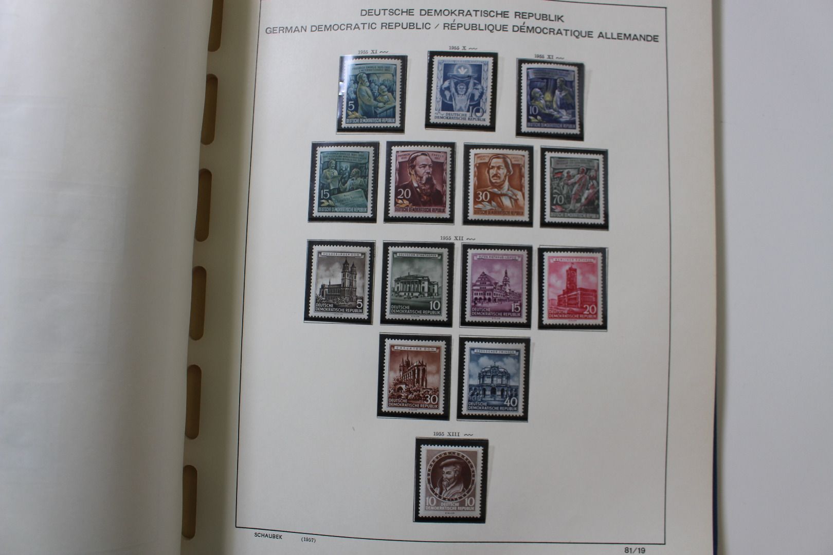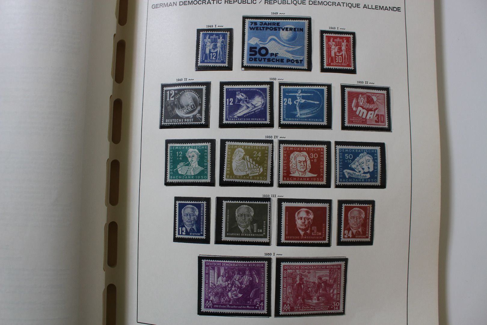 Die DDR ist in den 1950er Jahren fast komplett, gesammelt wurde überwiegend ungebraucht, etwas auch postfrisch. Dazu gibts eine kleine DDR gestempelte Restsammlung sowie 2 BRD prall gefüllte Dublettenalben mit gestempeltem Material aus den 1990er Jahren (Plattenfehler???). zusätzlich liegen noch 3 Alben mit diversen anderen Marken bei.
