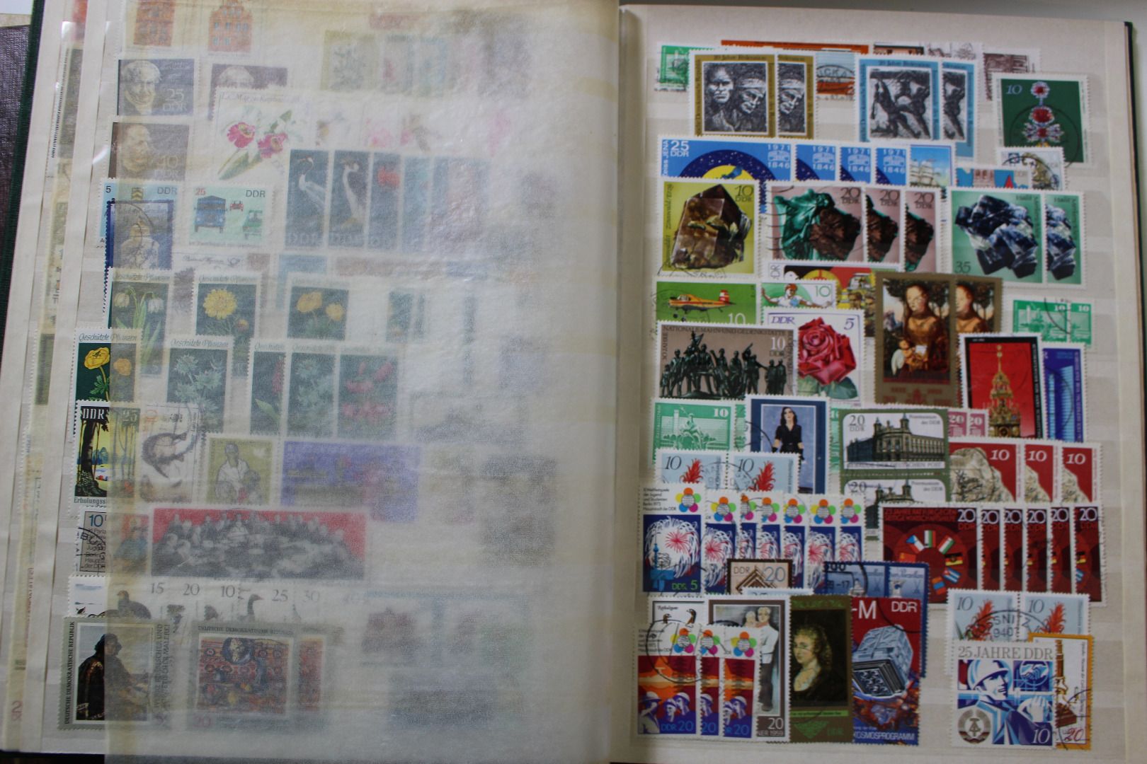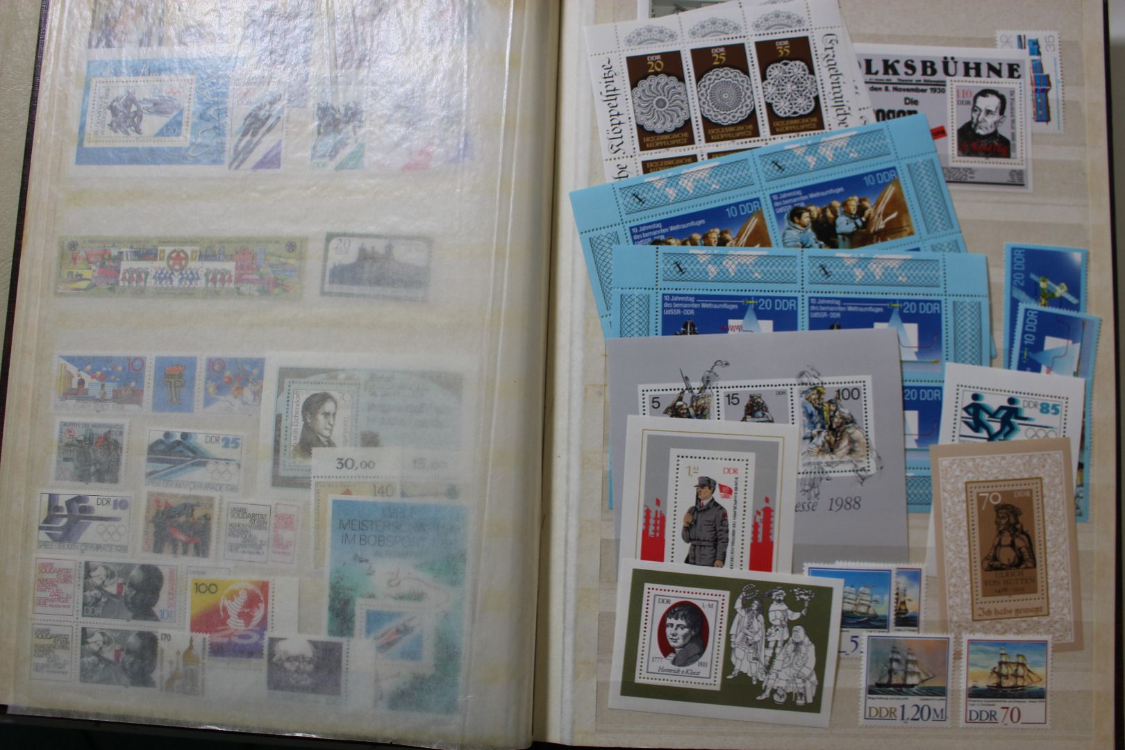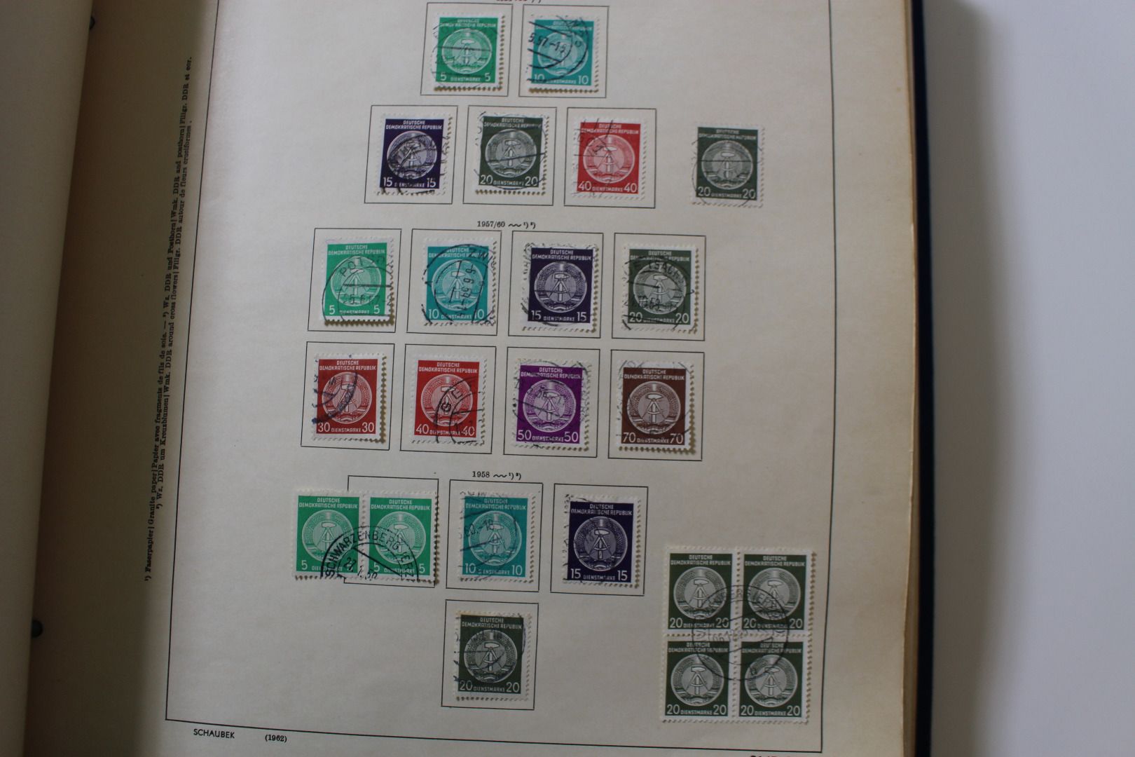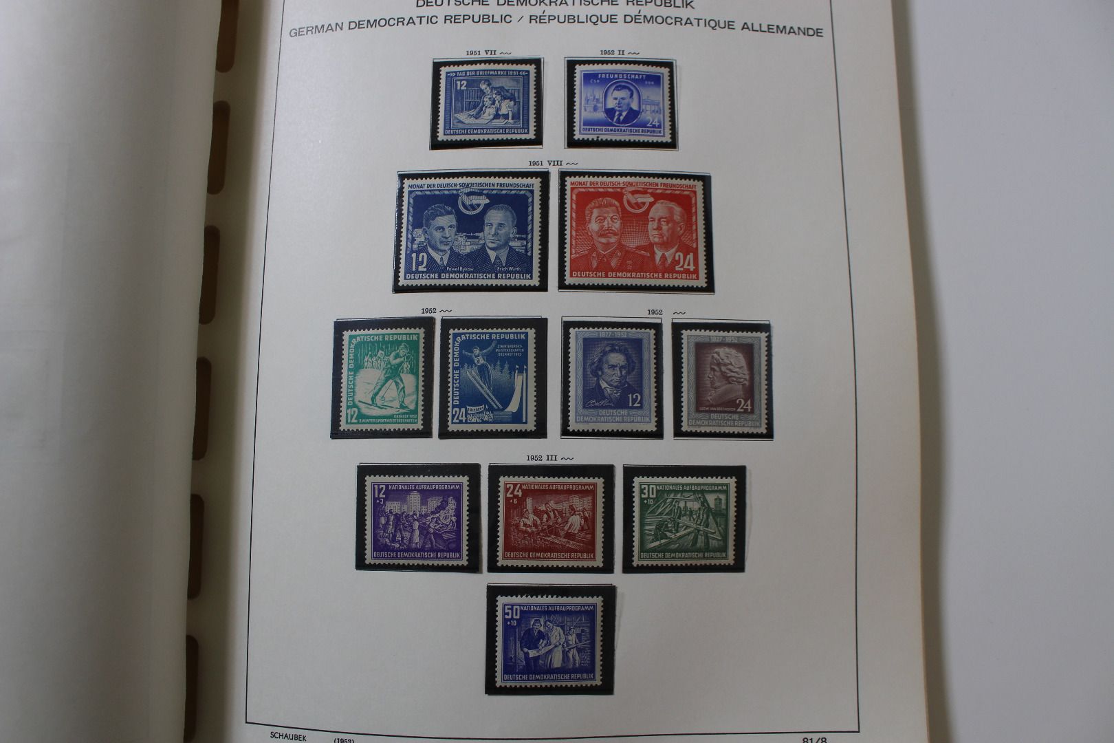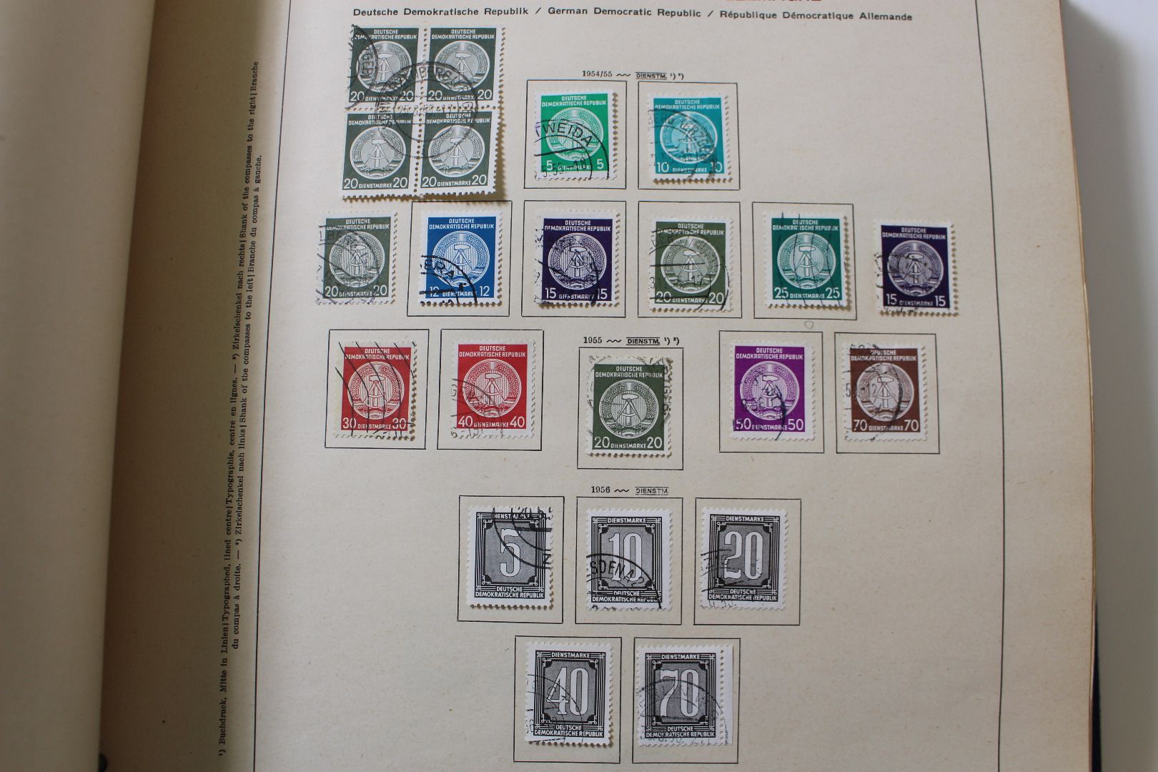 Die DDR ist in den 1950er Jahren fast komplett, gesammelt wurde überwiegend ungebraucht, etwas auch postfrisch. Dazu gibts eine kleine DDR gestempelte Restsammlung sowie 2 BRD prall gefüllte Dublettenalben mit gestempeltem Material aus den 1990er Jahren (Plattenfehler???). zusätzlich liegen noch 3 Alben mit diversen anderen Marken bei.