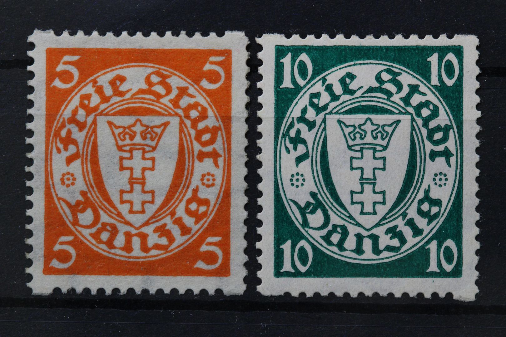 5 Pf. nachgummiert, 10 Pf mit Falz