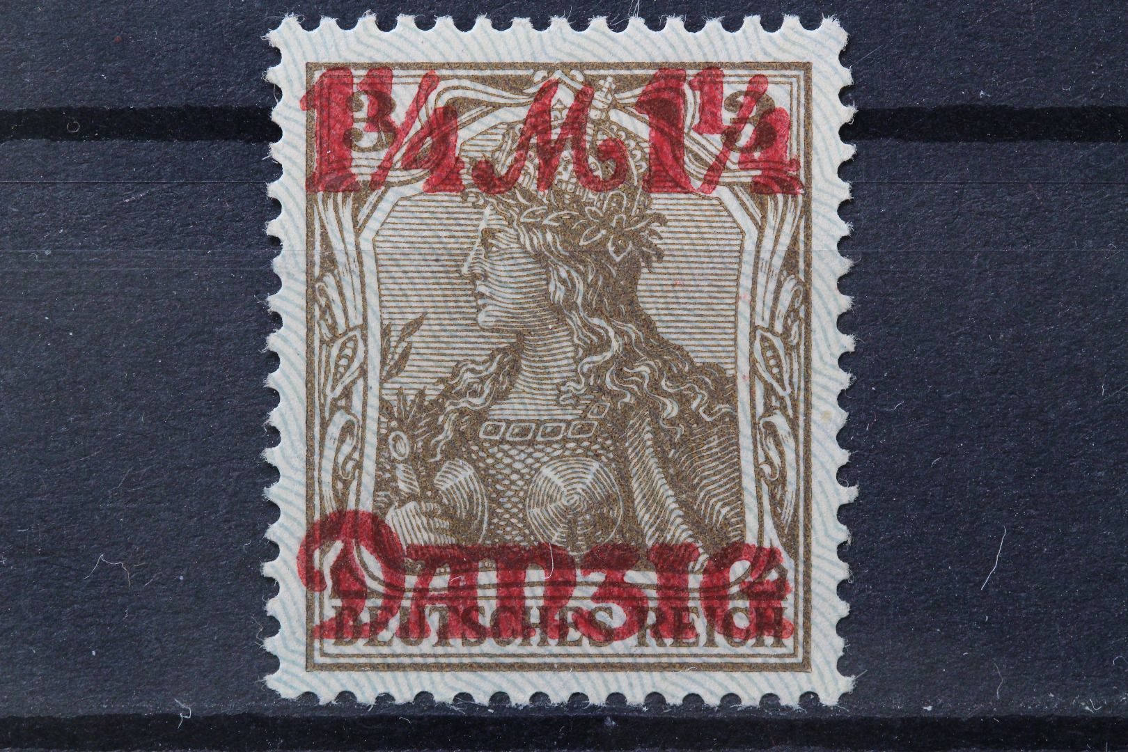 1 1/4 Mark auf Germania 3 Pf, Spitzen nach unten, Altsignatur