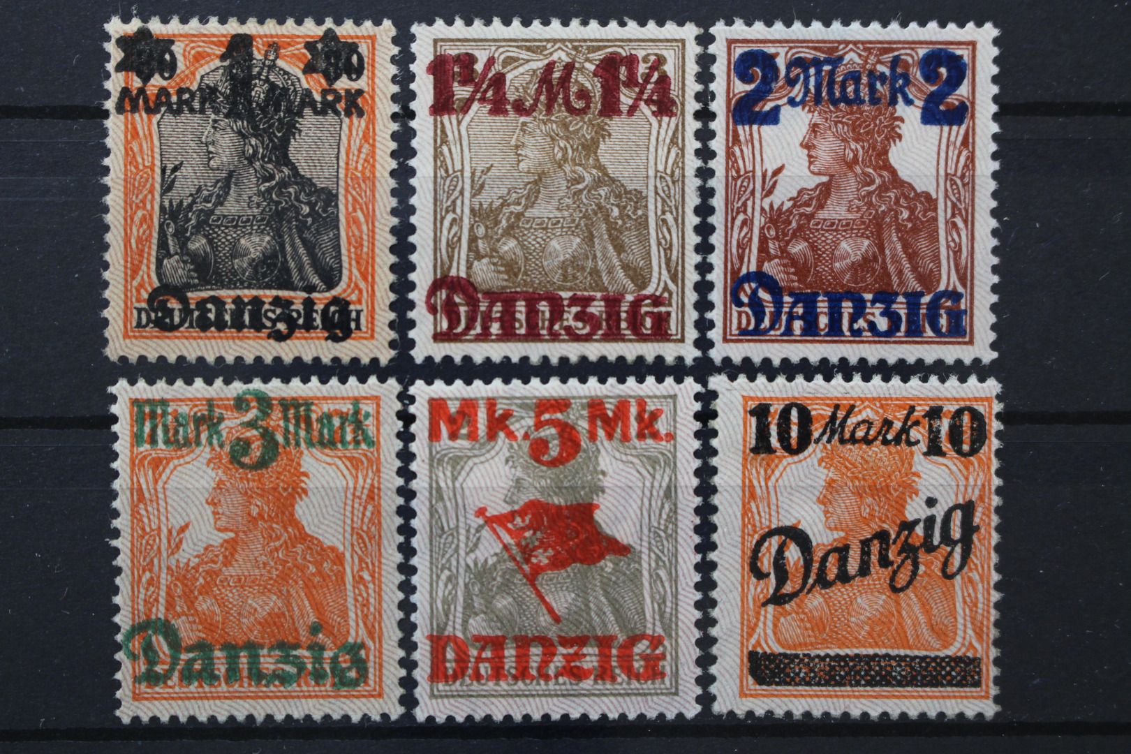 Germania mit Aufdruck, Netzaufdruck lilagrau, Spitzen nach unten, nachgummiert