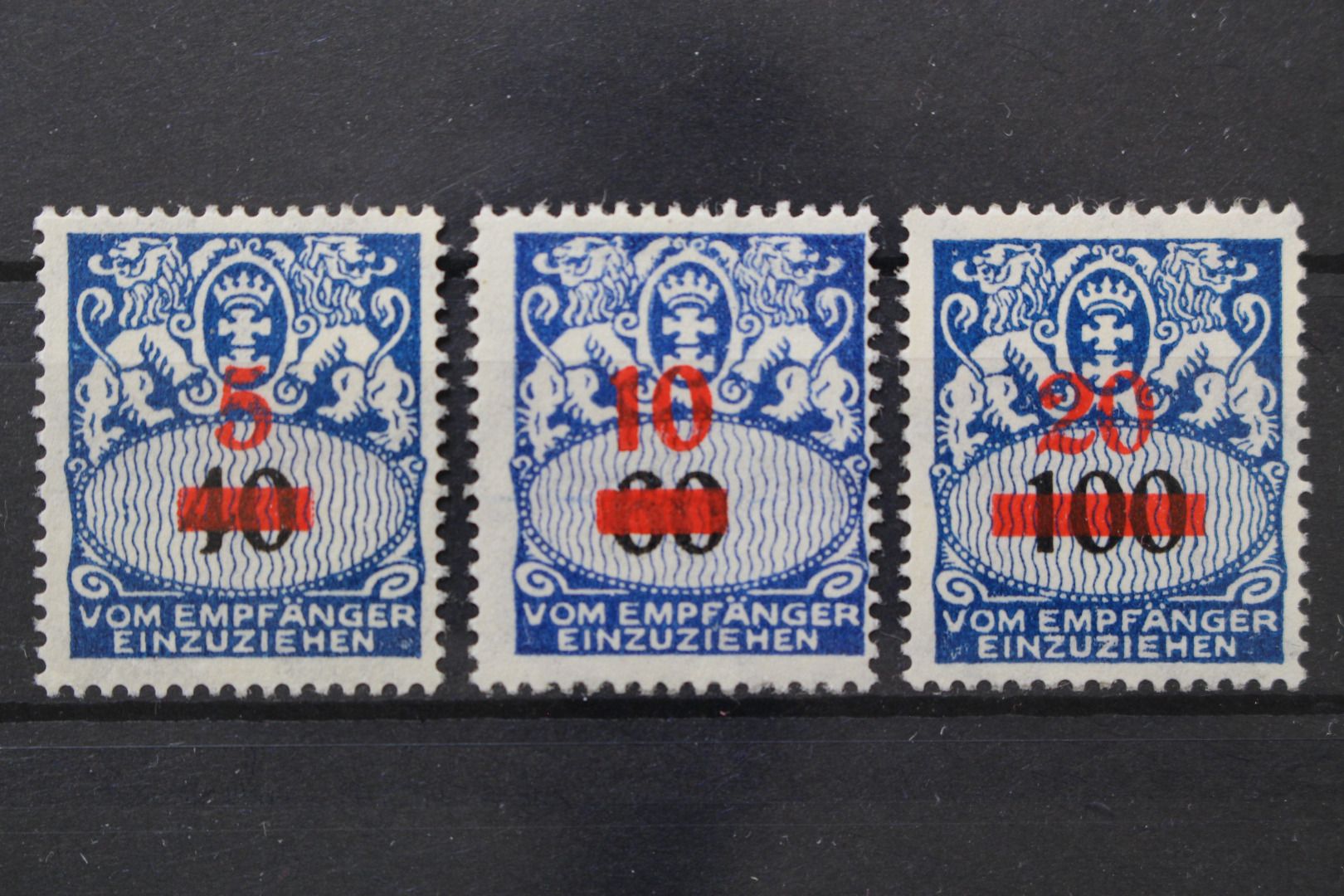 Staatswappen, 3 Werte mit Aufdruck, nachgummiert