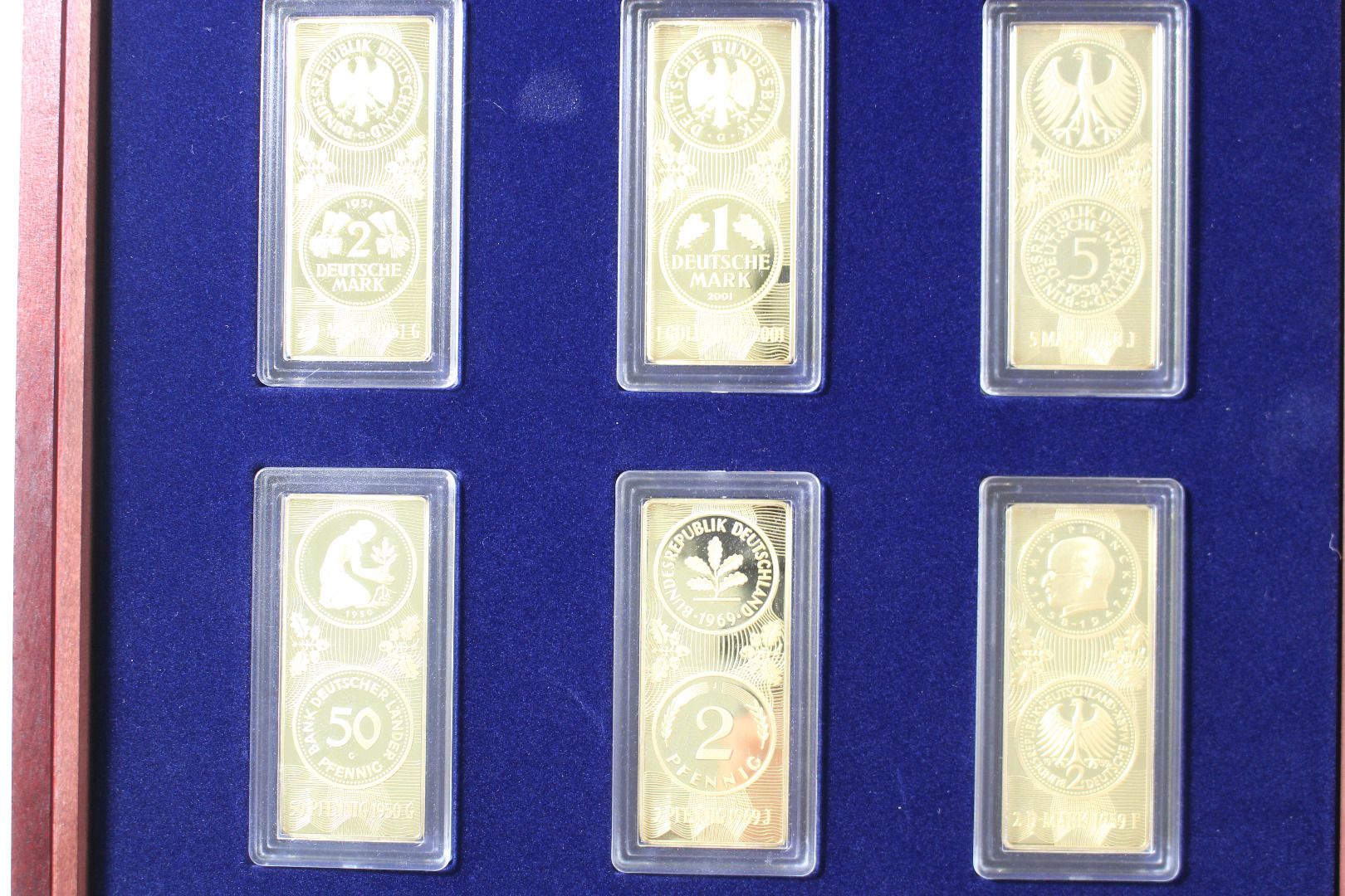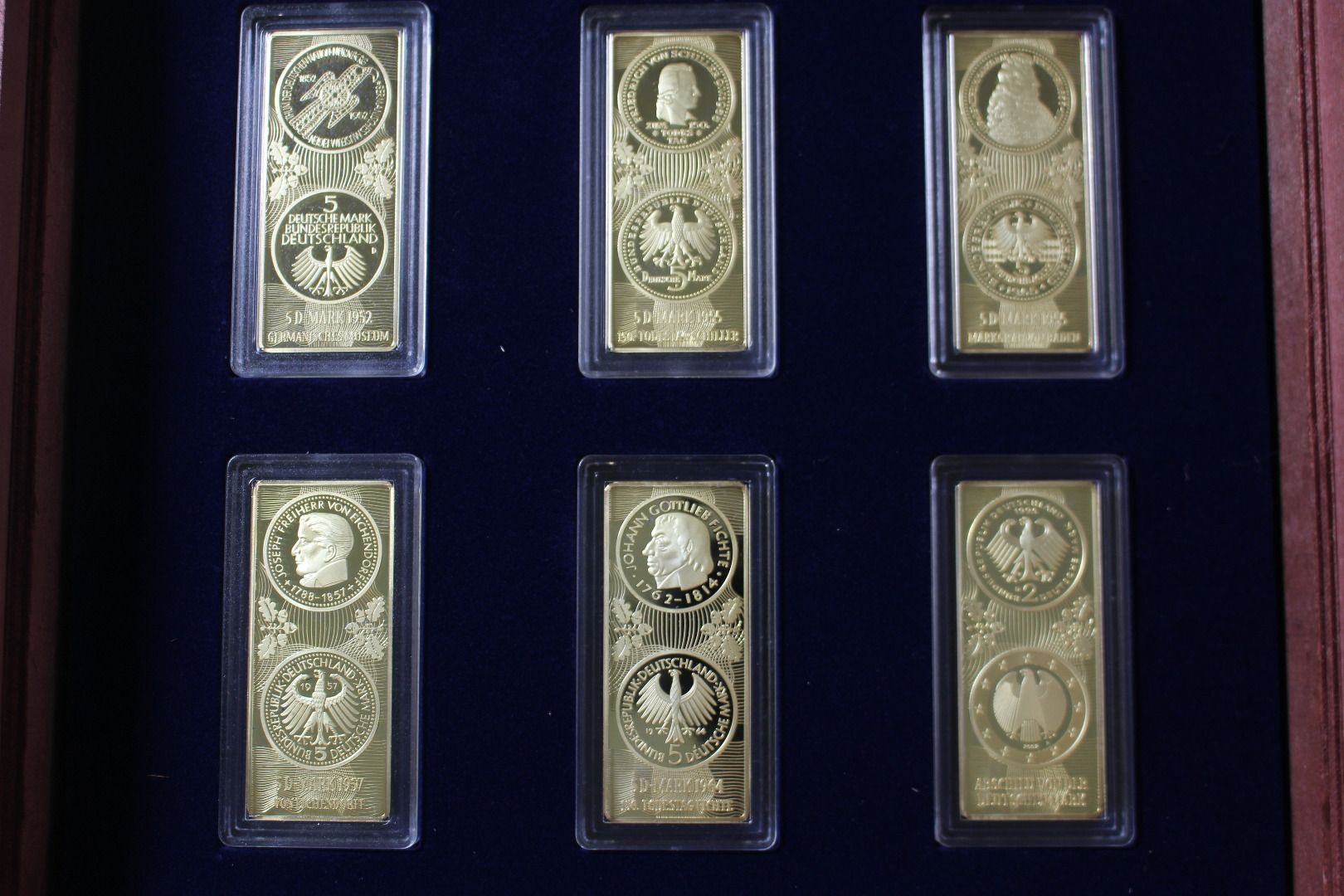 12 Medaillen in polierter Platte, 30 x 70 mm Durchmesser und 40 Gramm schwer. Material: Kupfer/Nickel. Untergebracht in einer 2-ladigen Kassette.
