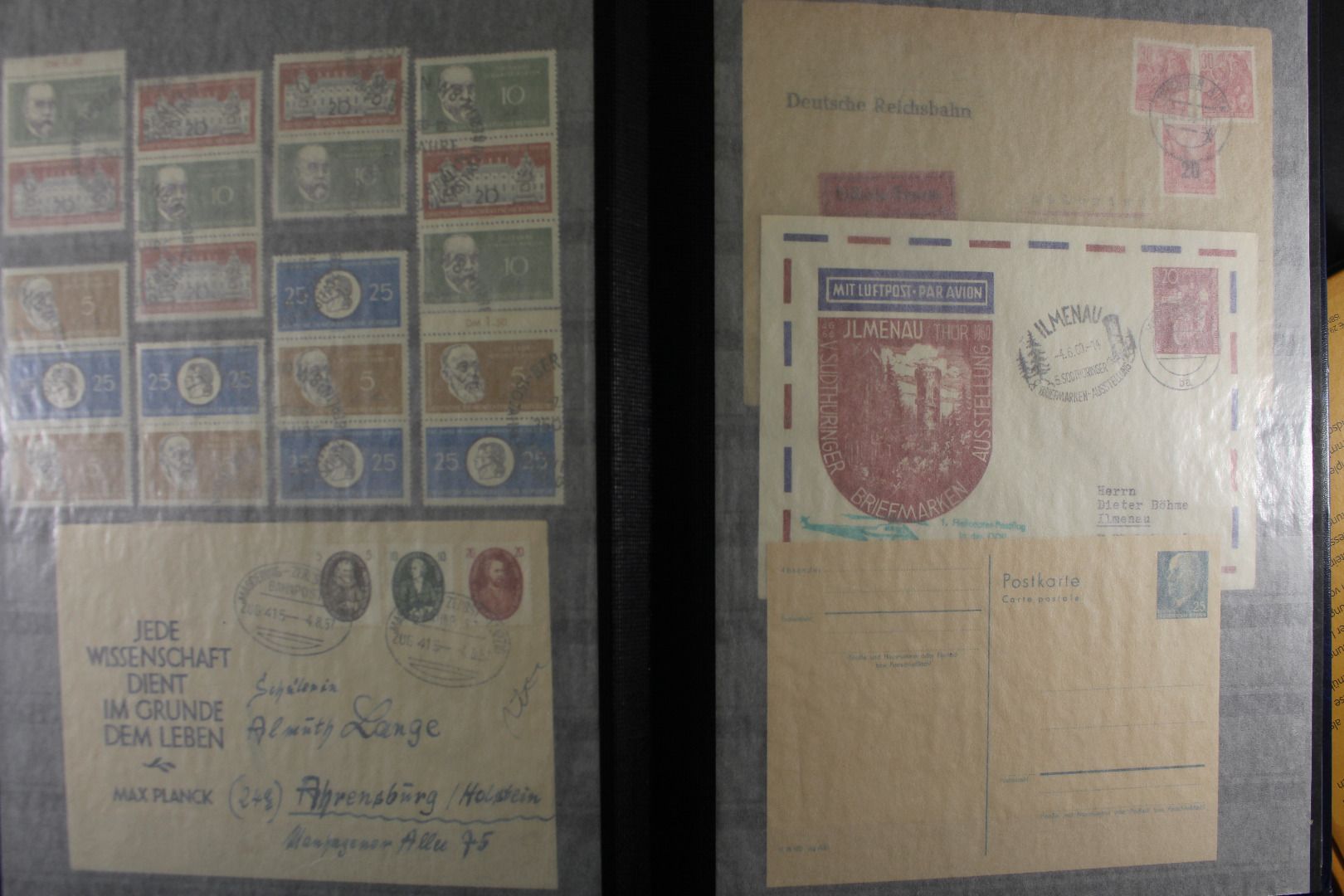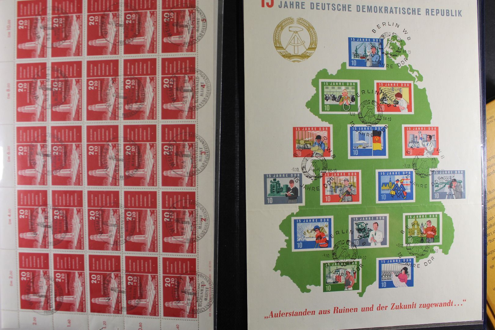 Es wurde meist ungebraucht bzw. gestempelt gesammelt, ab 1955 auch postfrisch. Etliche bessere Werte sind enthalten z.B. Block 7, 8 A/B, 9 B, 10, 13, 14 und 15. Sehr schöne Teilsammlung bis Ende der 1960er Jahre im Steckalbum.