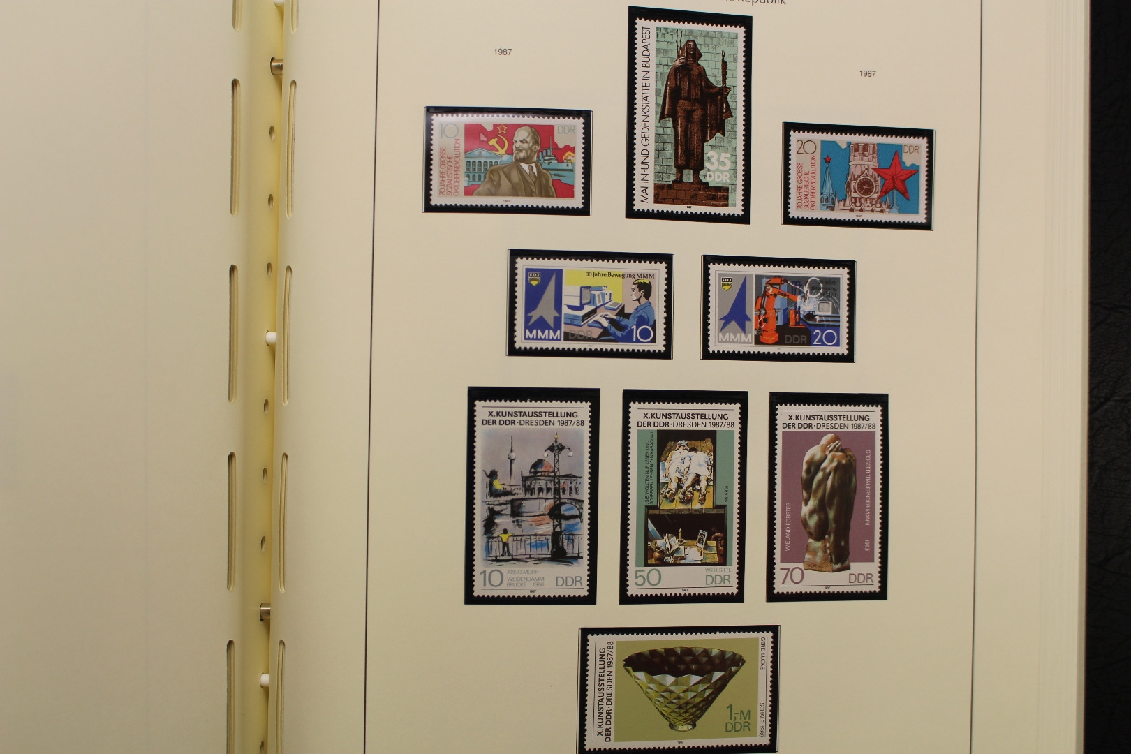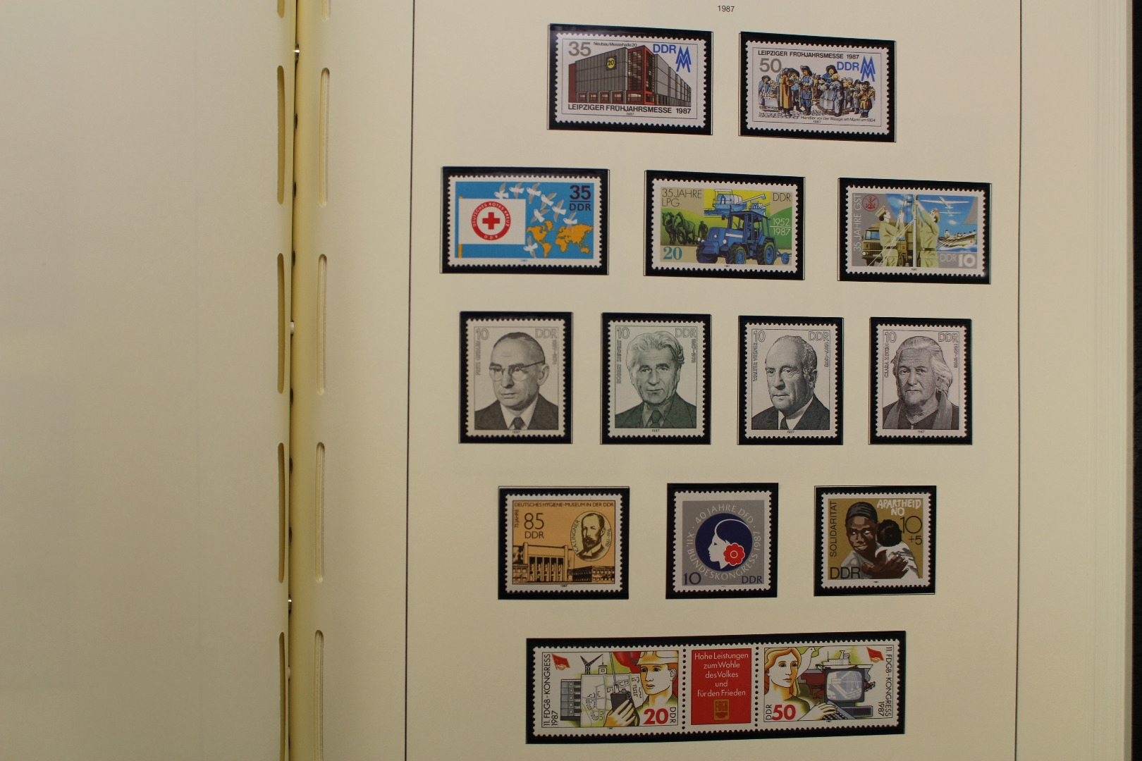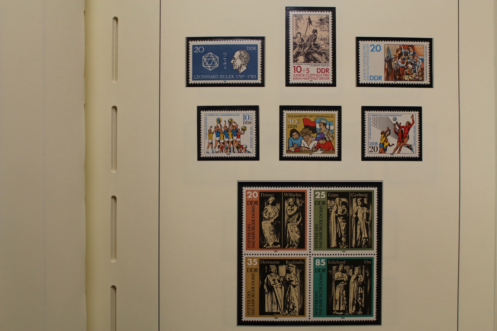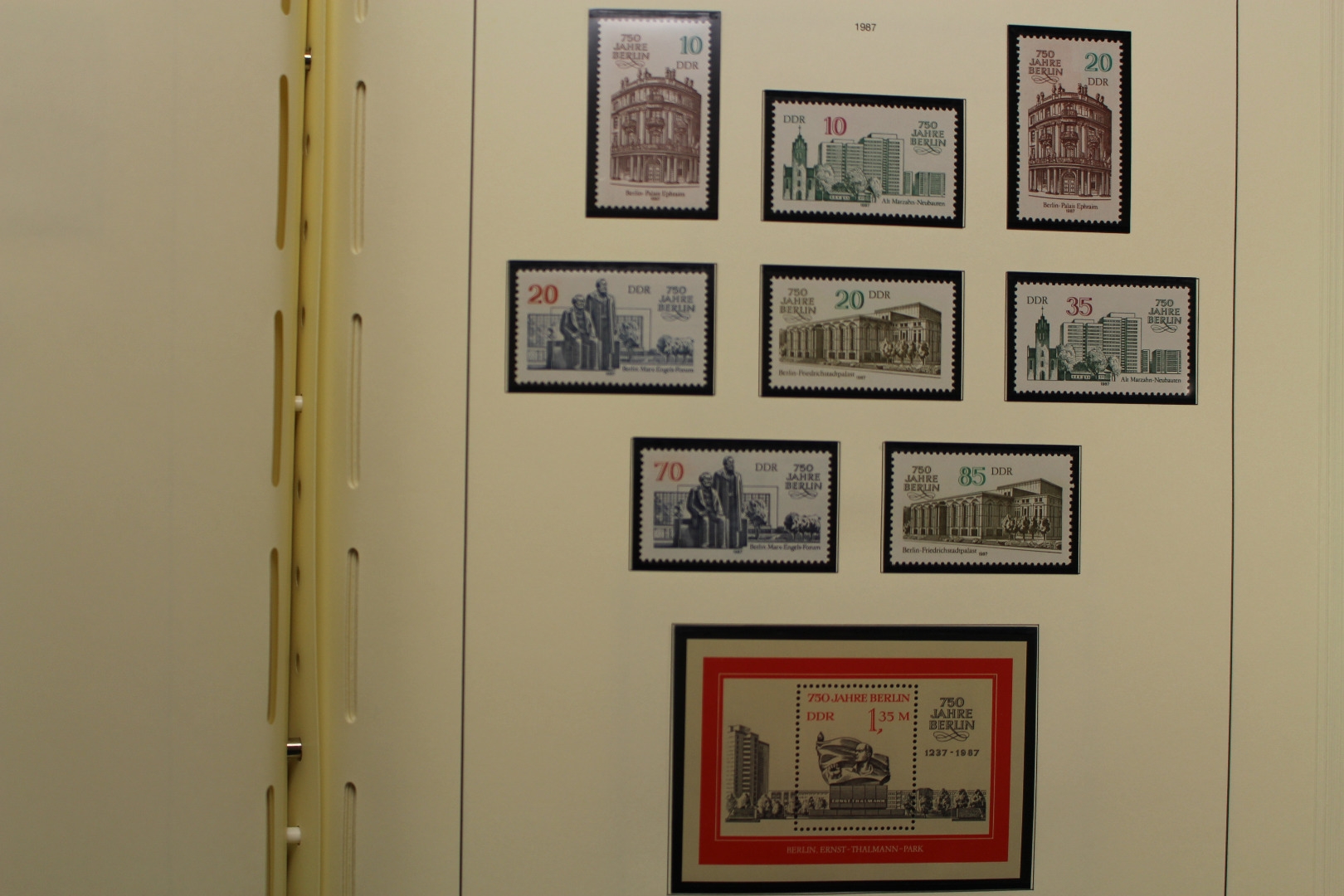 In den Hauptnummern komplette Sammlung, incl. aller Blockausgaben, Kleinbögen, 3er und 6er Zusammendrucke usw. Einige wenige Kleinbögen sind nur gestempelt enthalten. Es fehlen die Zusammendruckbögen und die Dienstmarken. Untergebracht in sehr sauberen Leuchtturm Vordruckalben mit schwarzen Klemmtaschen. Sieht sehr ansprechend aus. Damit die Briefmarken nicht aus den Taschen rutschen hat der Sammler alle Klemmtaschen mühsam und sehr sauber oben zugeschweisst. Sehr saubere Sammlung in 3 Leuchtturm Drehstabbindern.