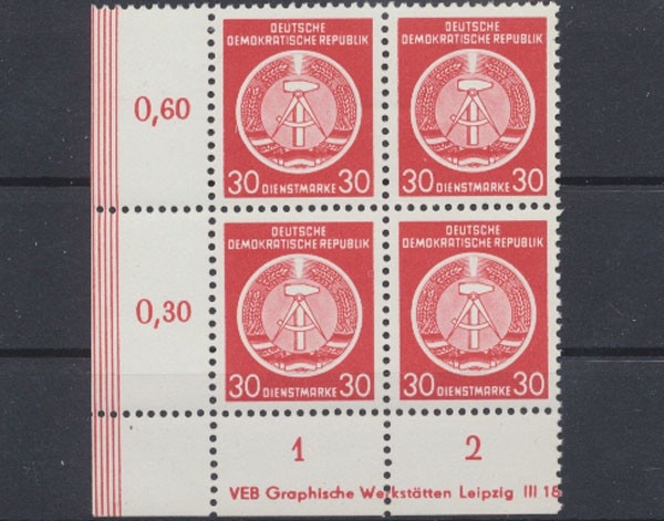 30 Pf. Staatswappen, Variante XII, Viererblock, Eckrand links unten