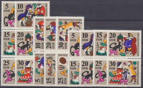 Märchen (III): der gestiefelte Kater, 9 verschiedene Zusammendruck - Kombinationen.