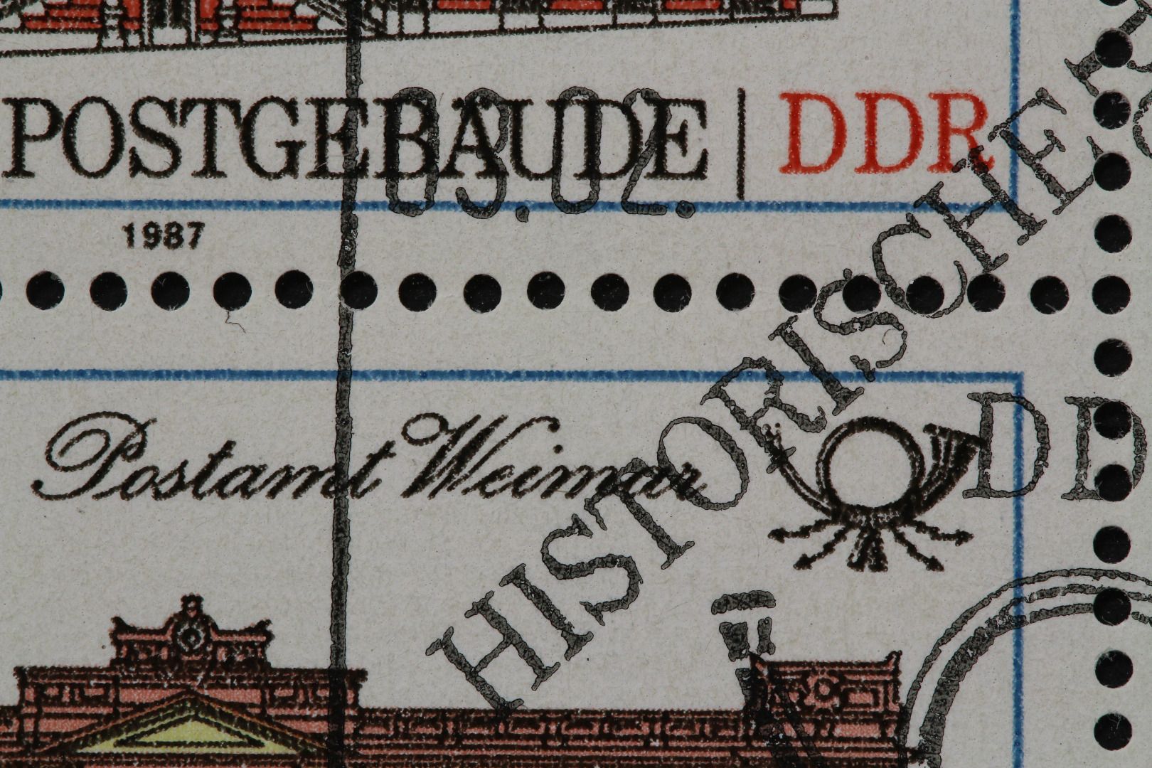 Postgebäude, MiNr. 3069 mit Plattenfehler: "W" in "Weimar" offen.