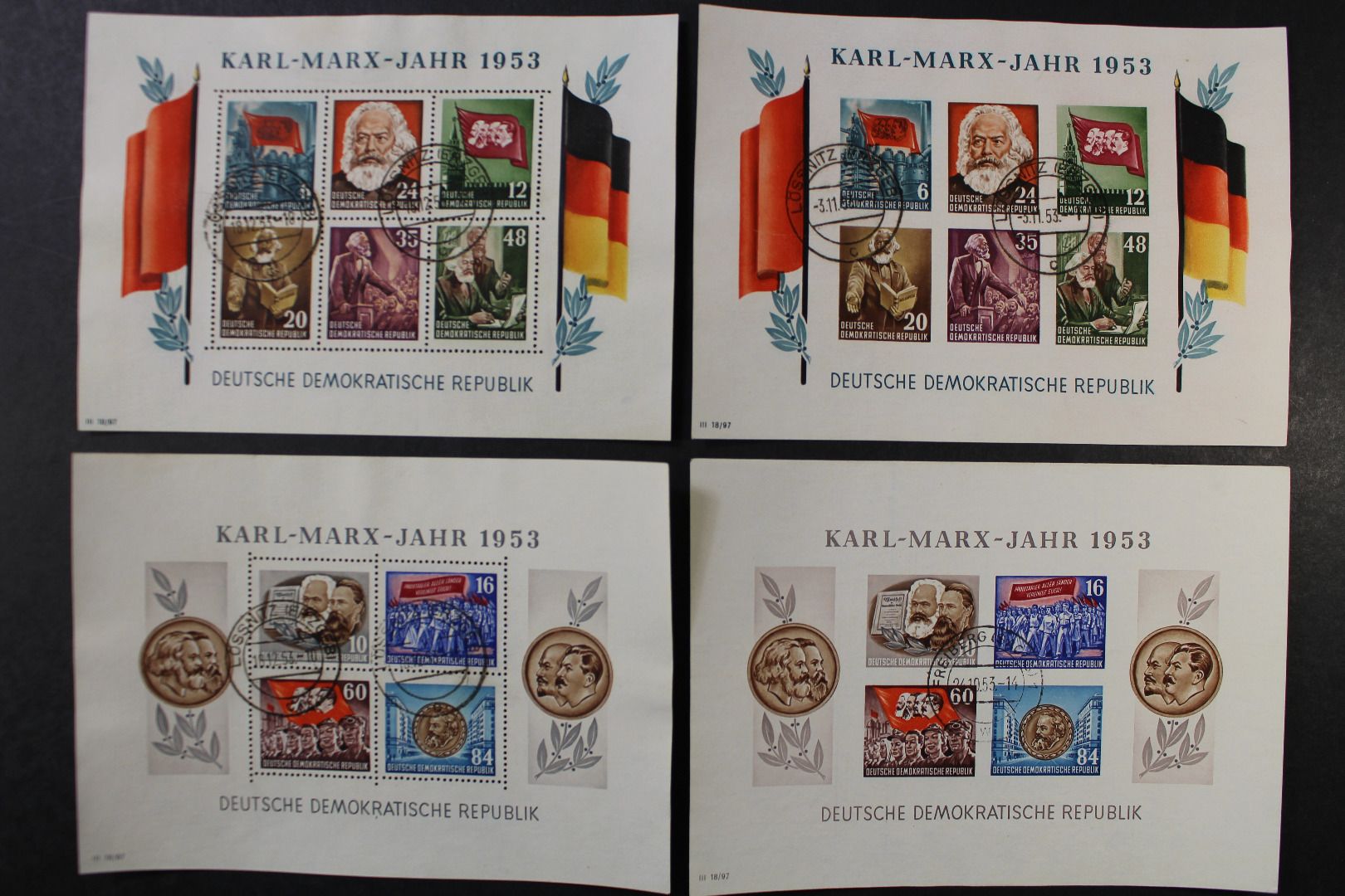 Karl-Marx-Jahr 1953, 8 A/B und 9 A grprüft Ruscher, 9 B ist nicht geprüft