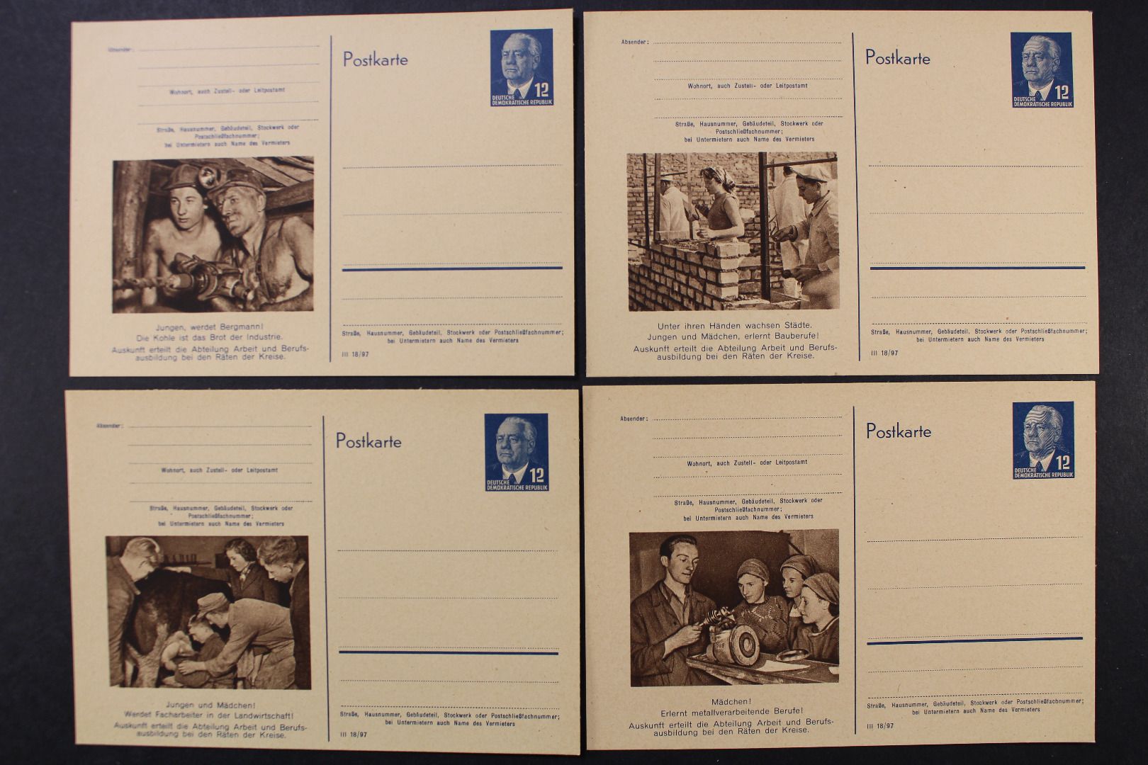 12 Pf. Pieck, 4 Karten mit verschiedenen Bildern