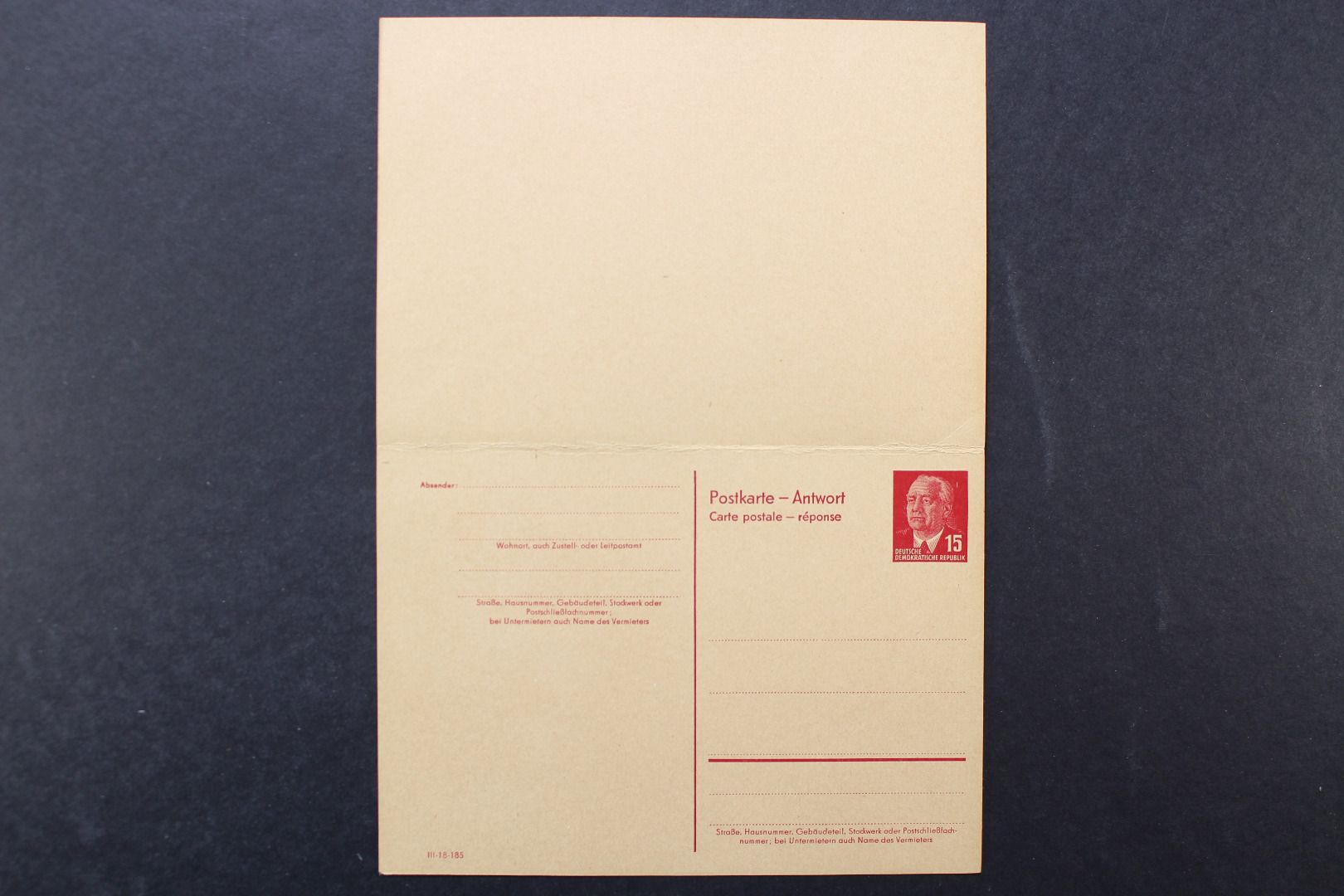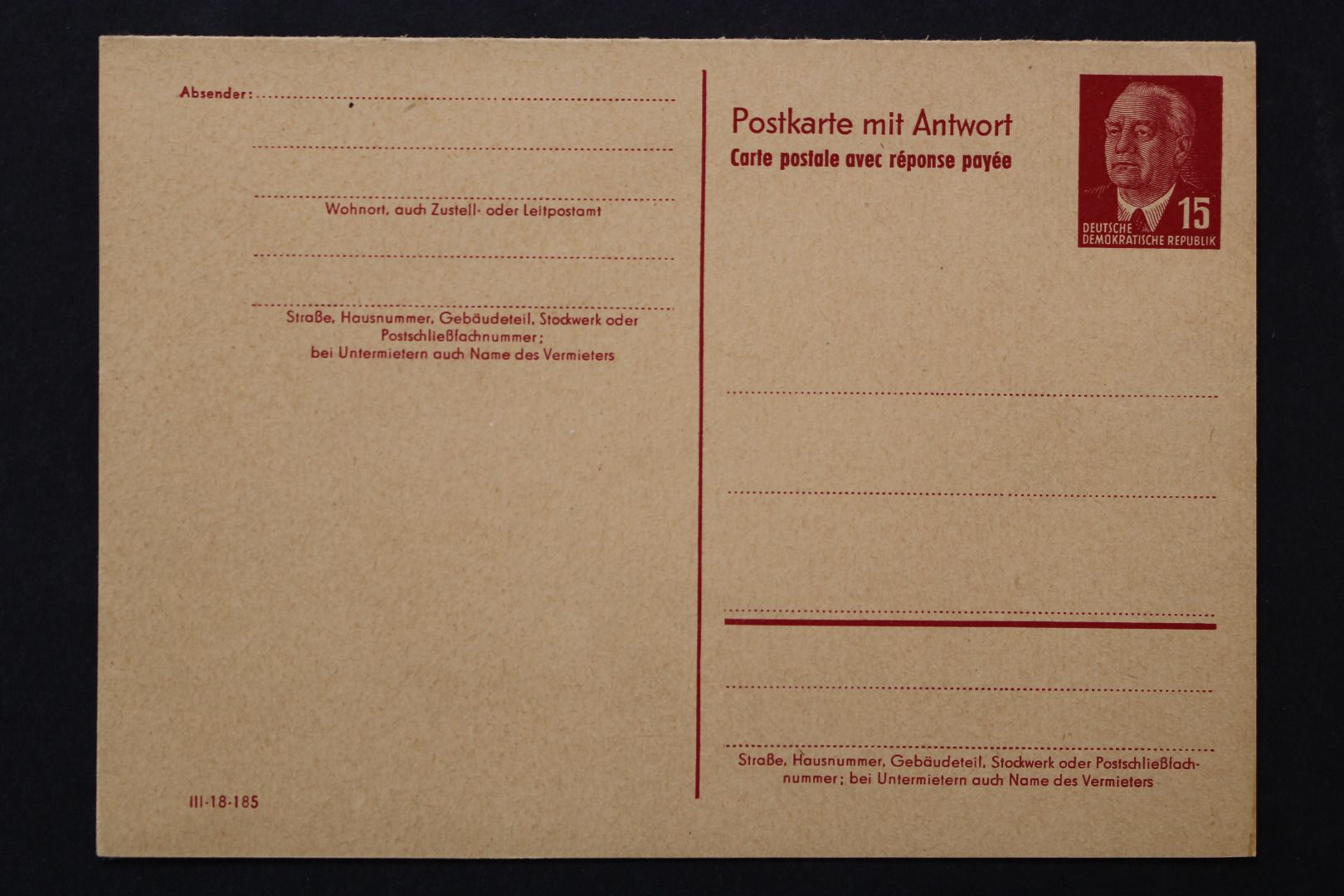 15 / 15 Pf Pieck mit Antwortkarte