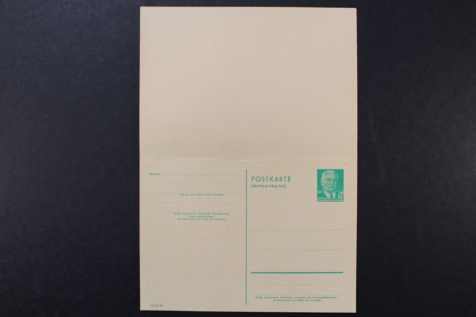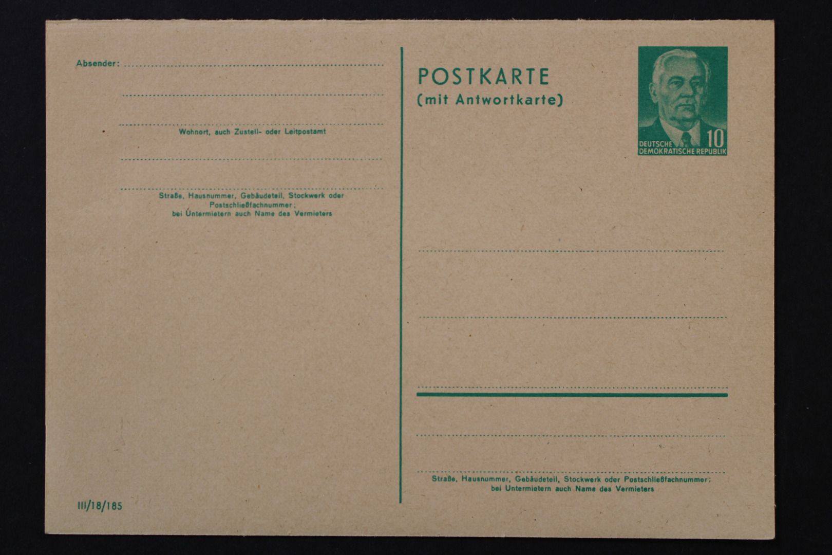 10/10 Pf. Pieck mit Antwortkarte
