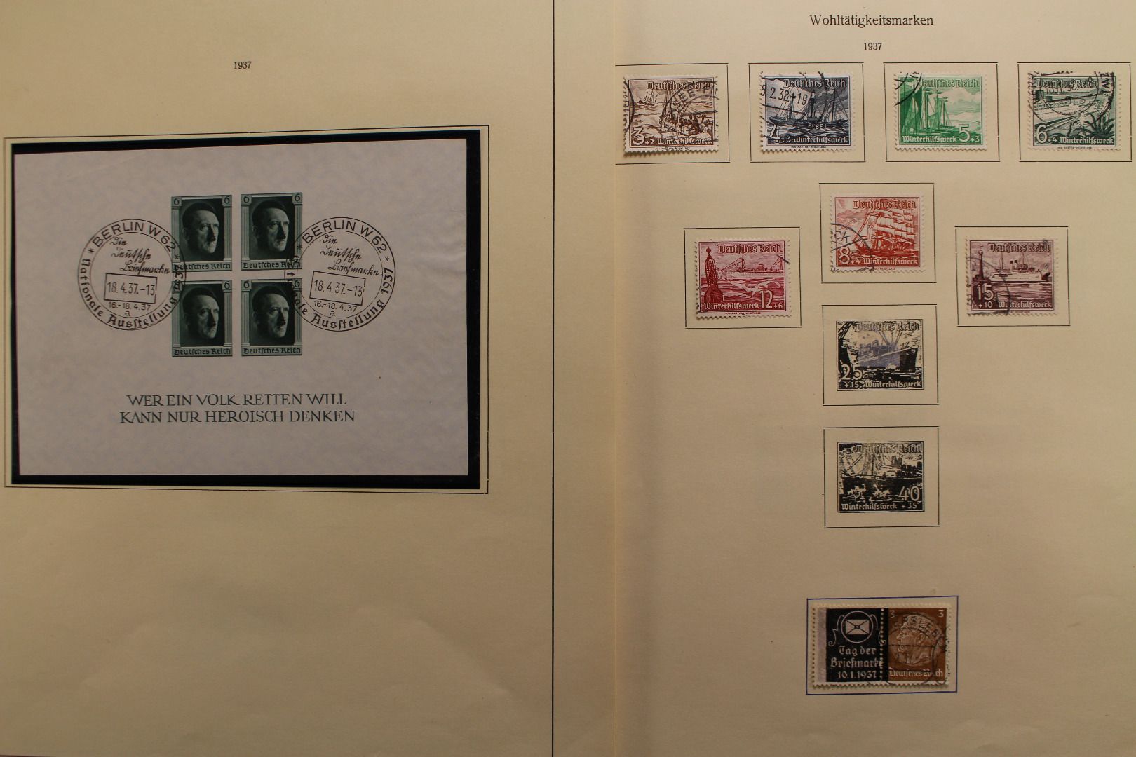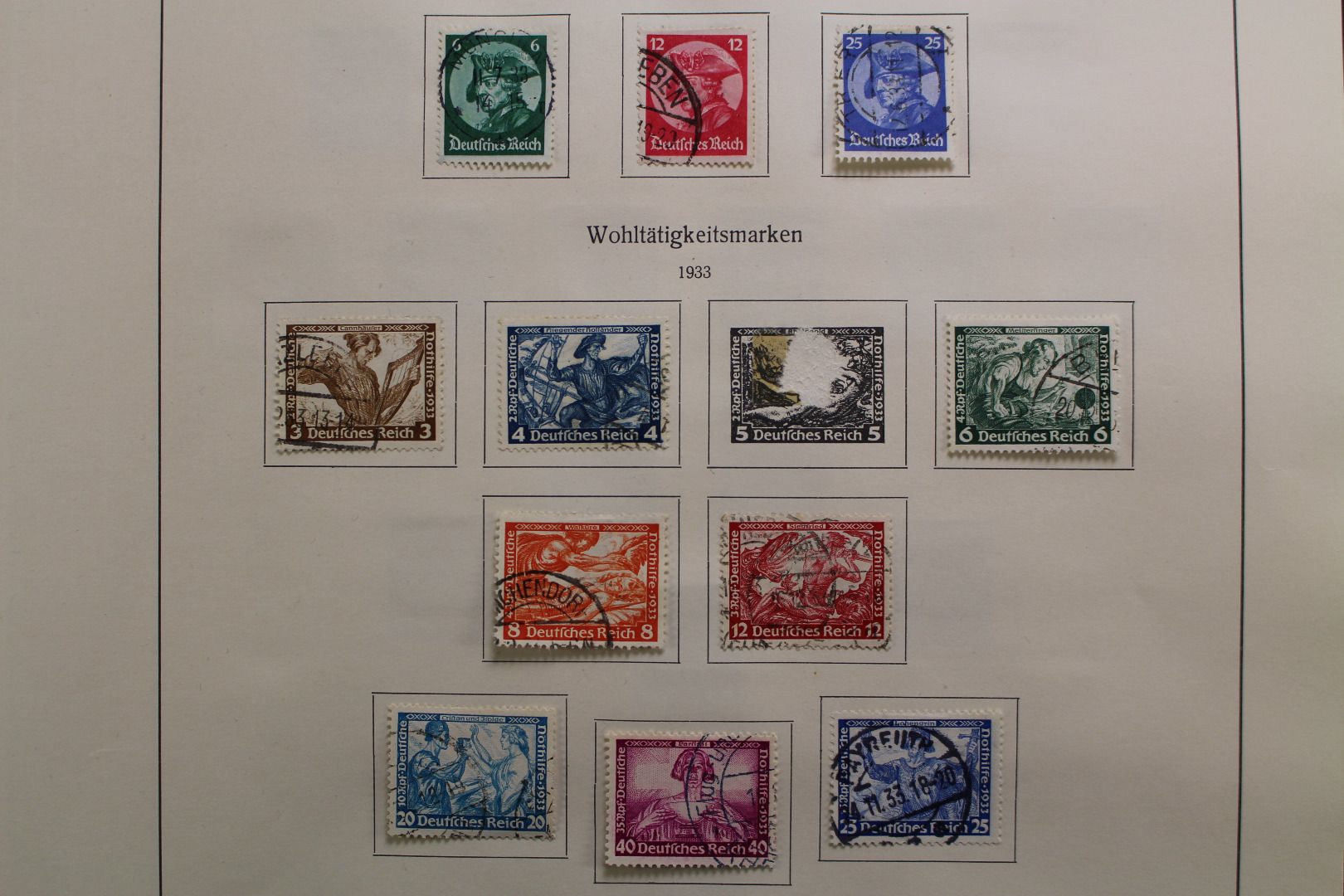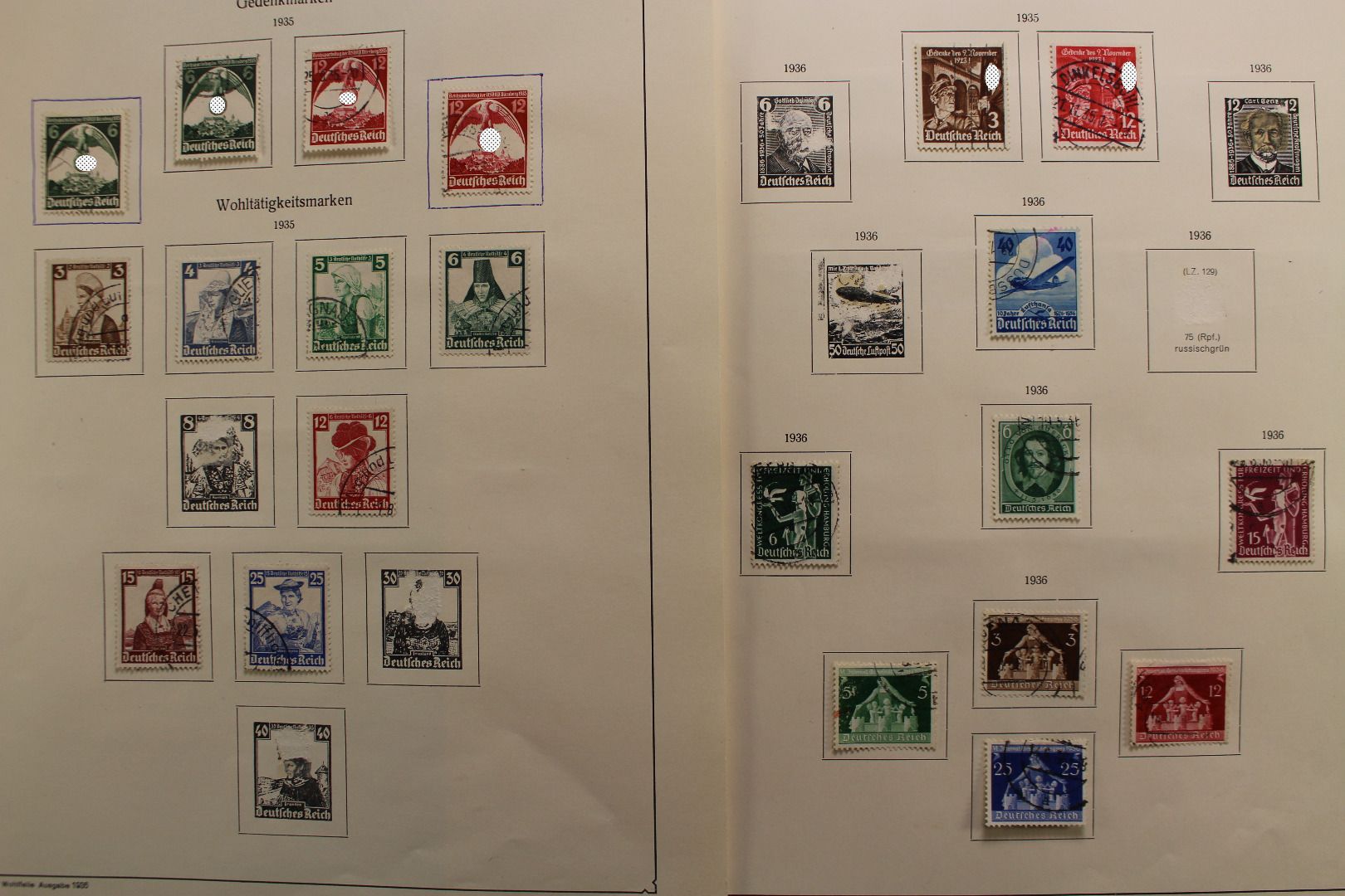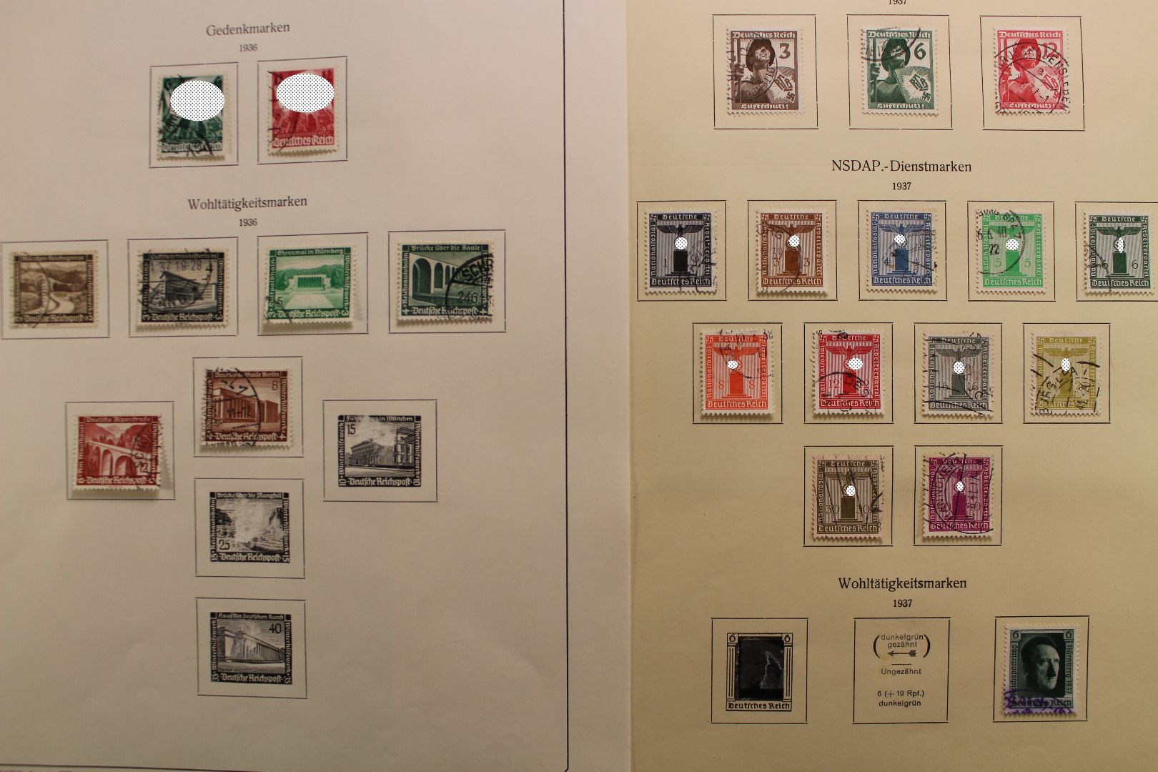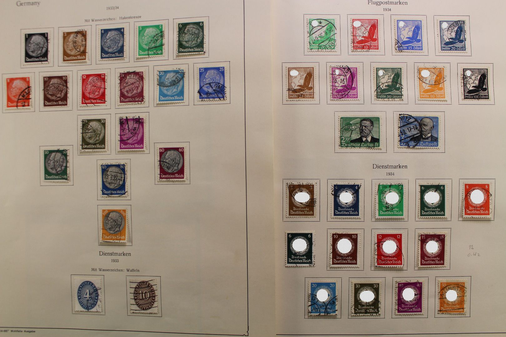Teilsammlung mit etlichen besseren Ausgaben, z.B. Wagner 1933, Flugpost 1934 und viele bessere Dienstmarken mit guten Bedarfsstempeln. Die Qualität ist überwiegend ganz gut bis etwas unterschiedlich. Untergebracht auf uralten Vordruckblättern.