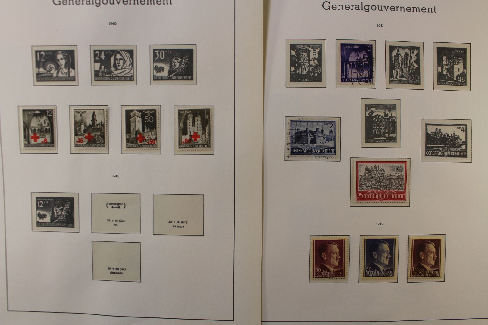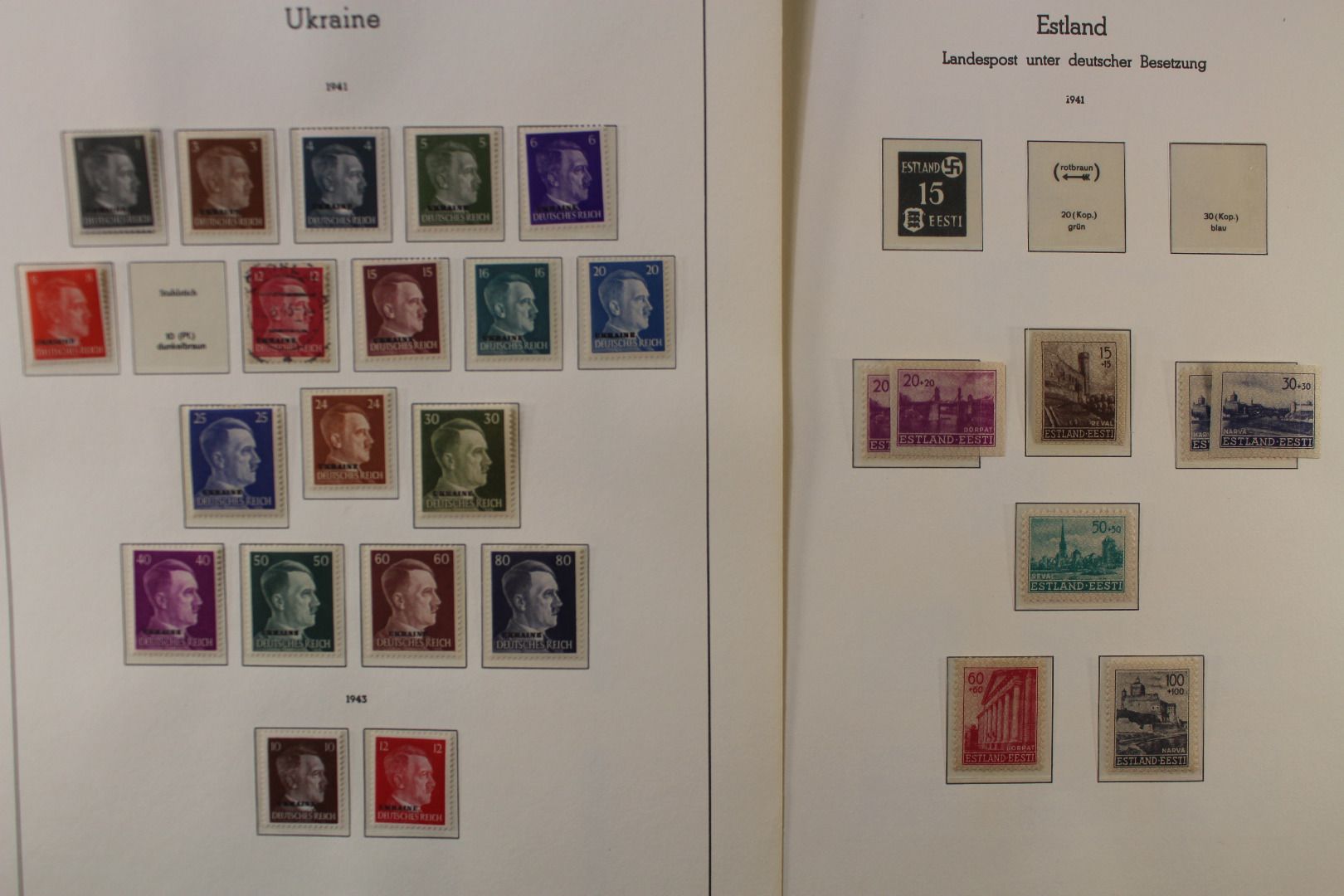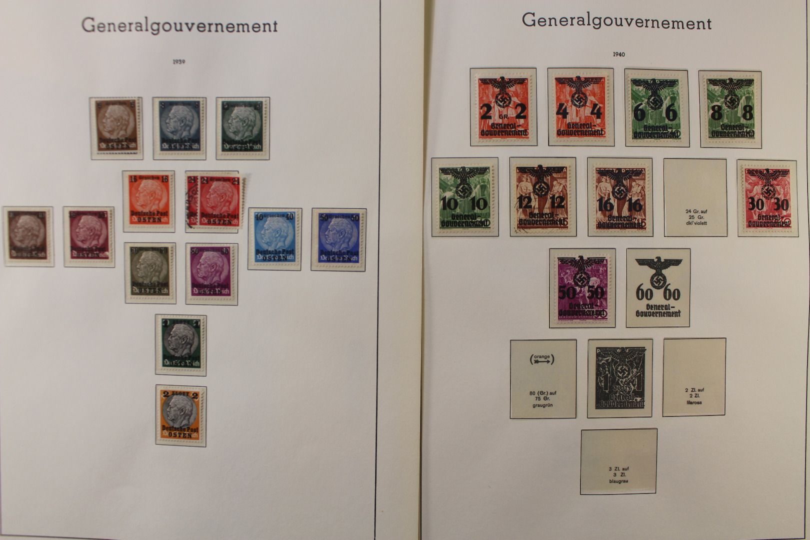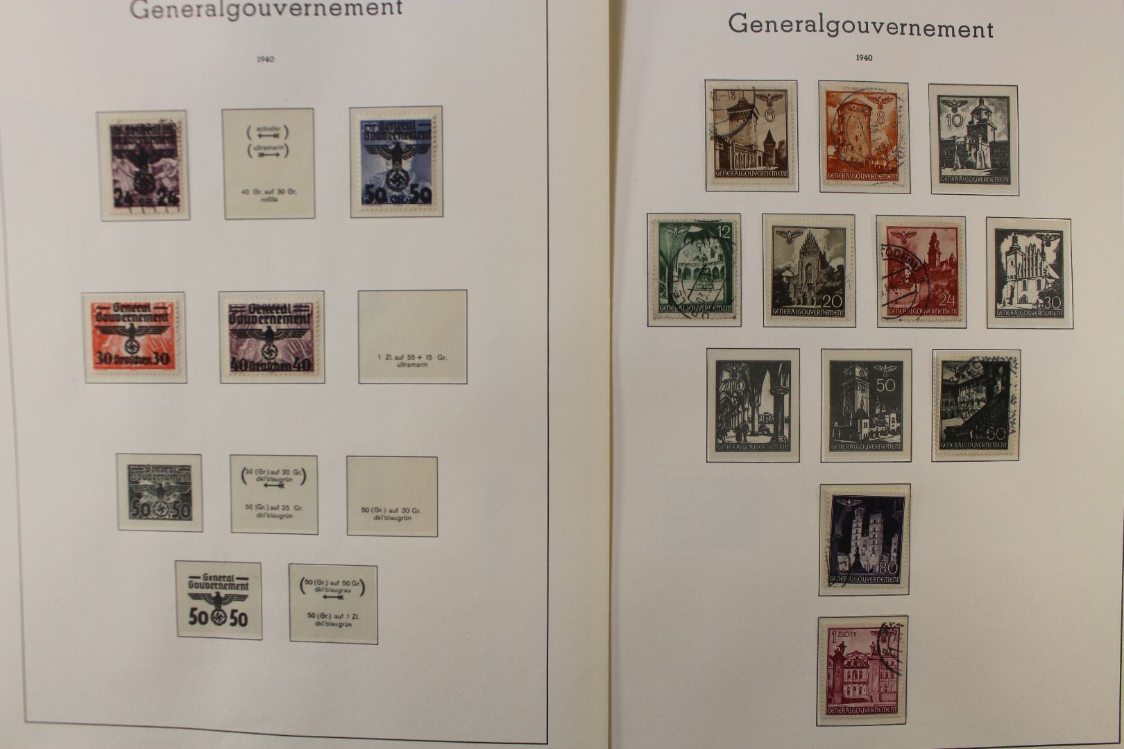 Gute gestempelte und ungebrauchte Teilsammlung im alten Leuchtturm Vordruckalbum (incl. Klemmtaschen und Klemmbinder). Zusätzlich sind auch die Gebiete Generalgouvernement, Böhmen & Mähren und weitere Gebiete aus der Zeit 1939-1945 enthalten.