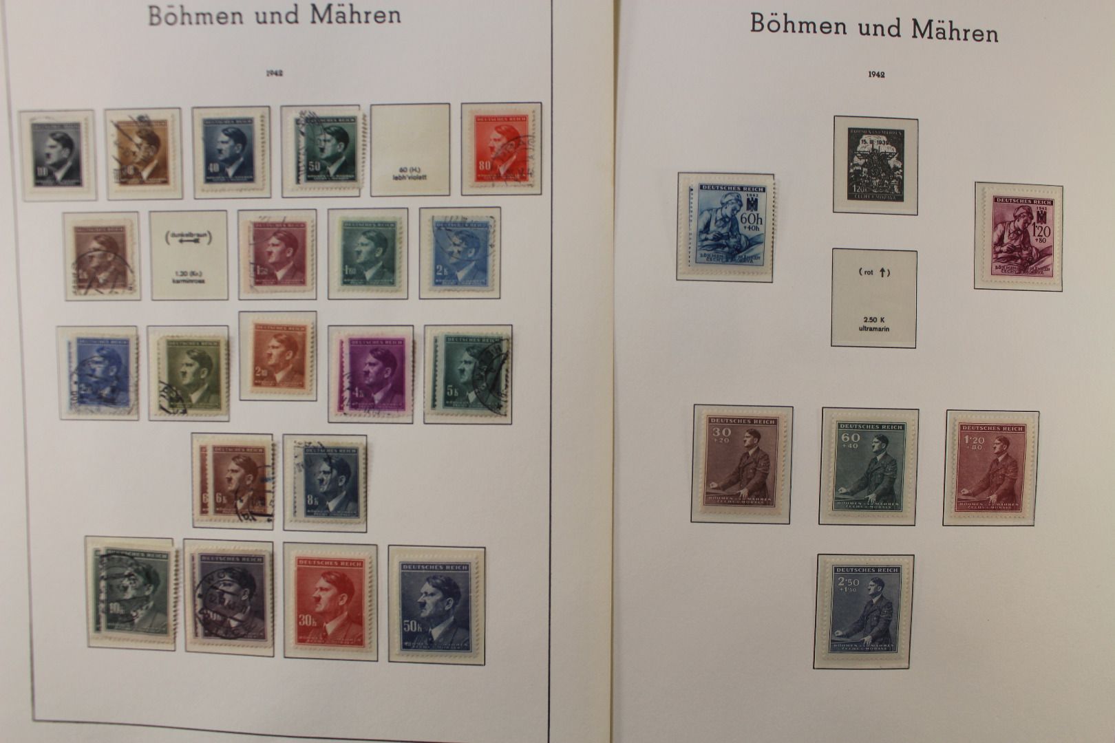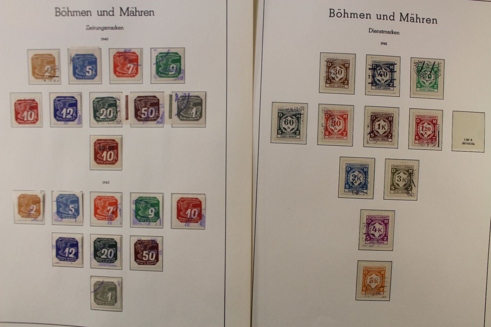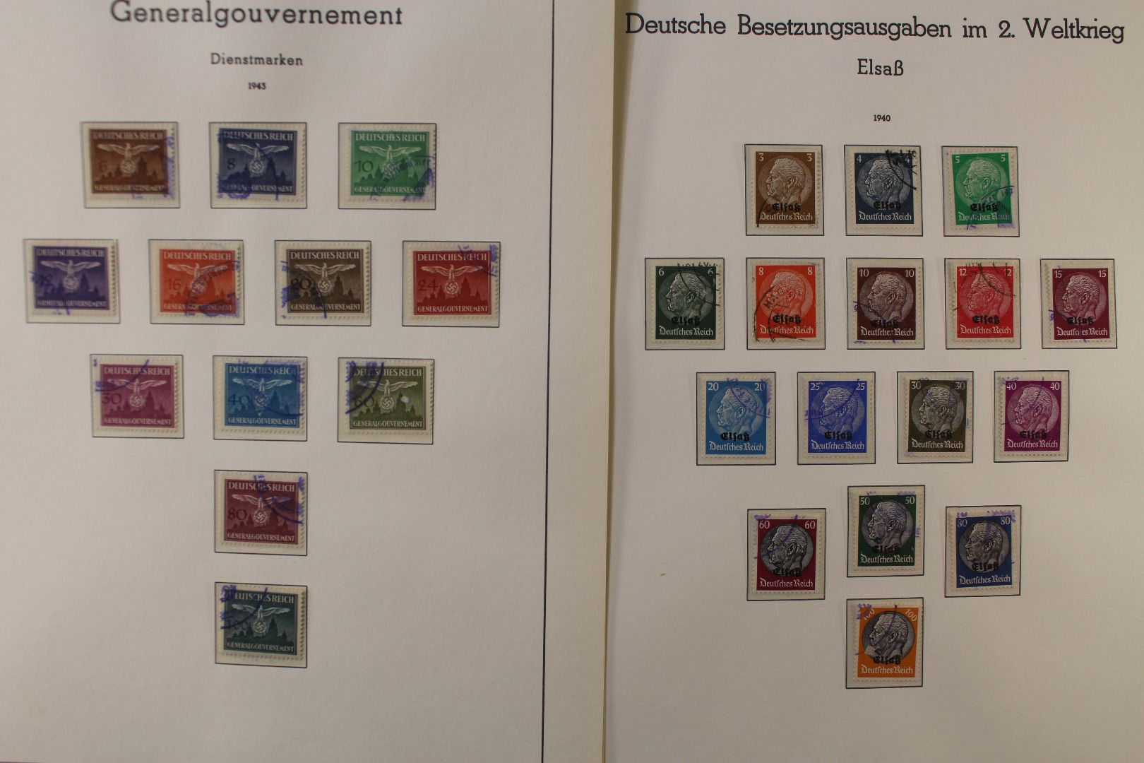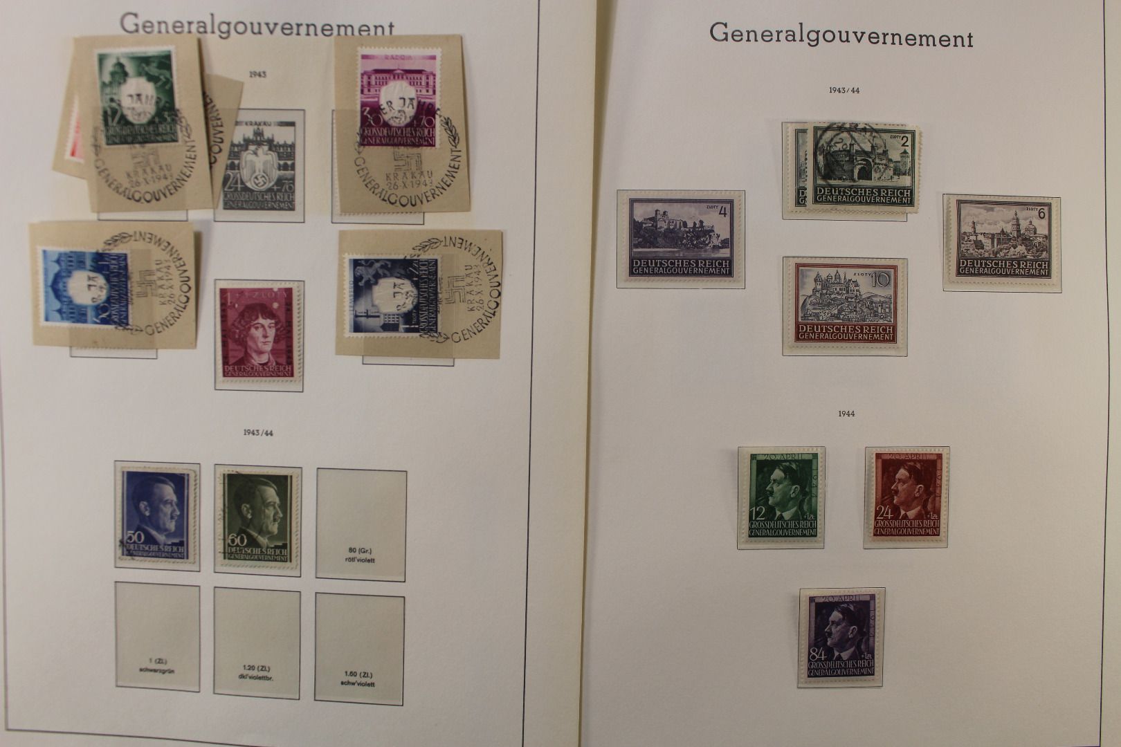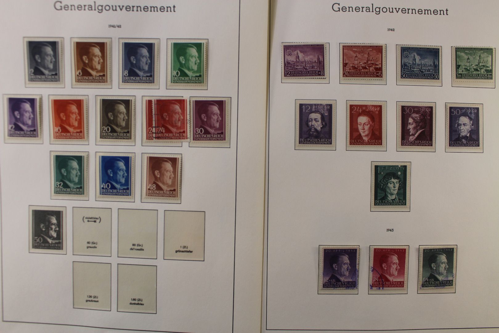 Gute gestempelte und ungebrauchte Teilsammlung im alten Leuchtturm Vordruckalbum (incl. Klemmtaschen und Klemmbinder). Zusätzlich sind auch die Gebiete Generalgouvernement, Böhmen & Mähren und weitere Gebiete aus der Zeit 1939-1945 enthalten.