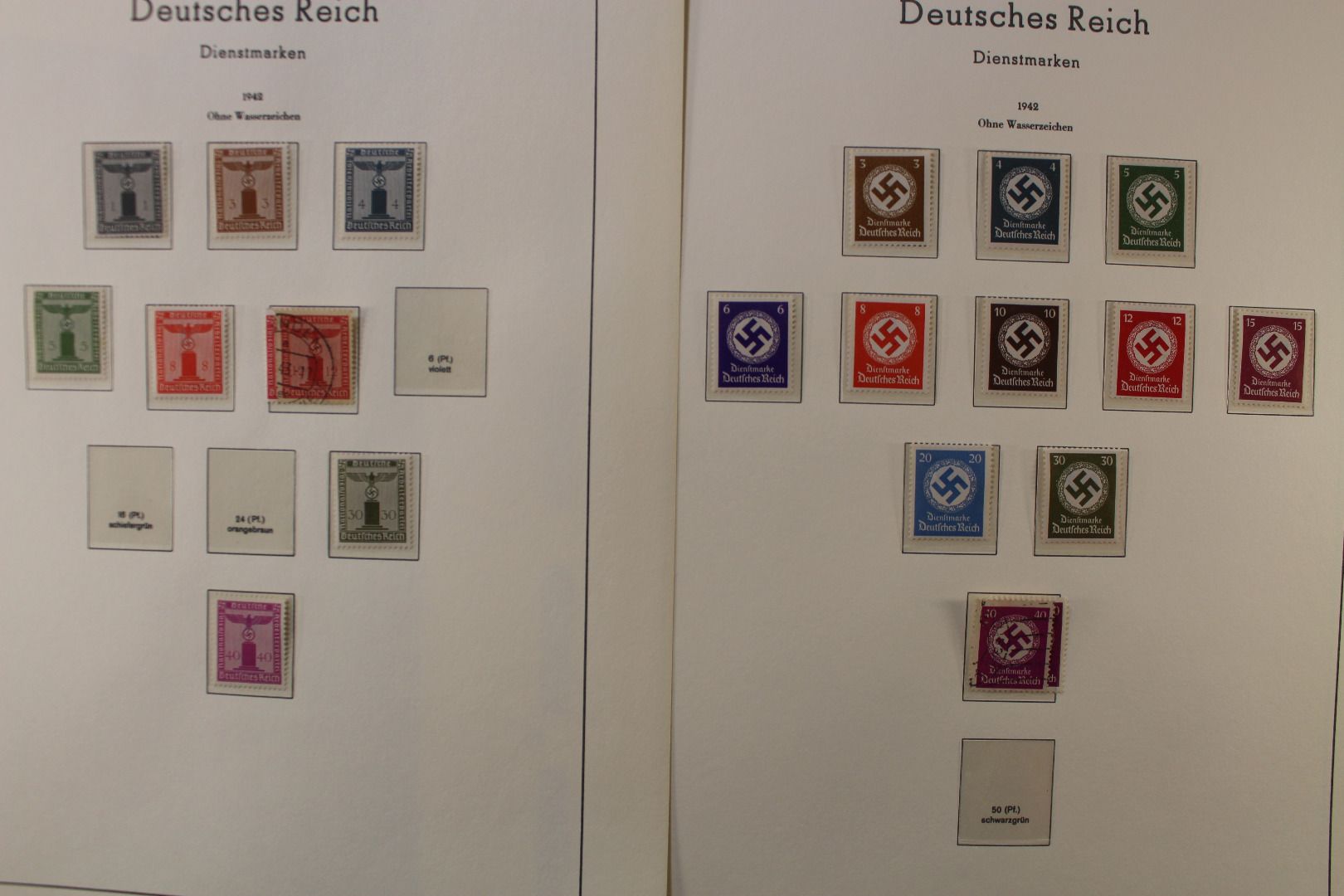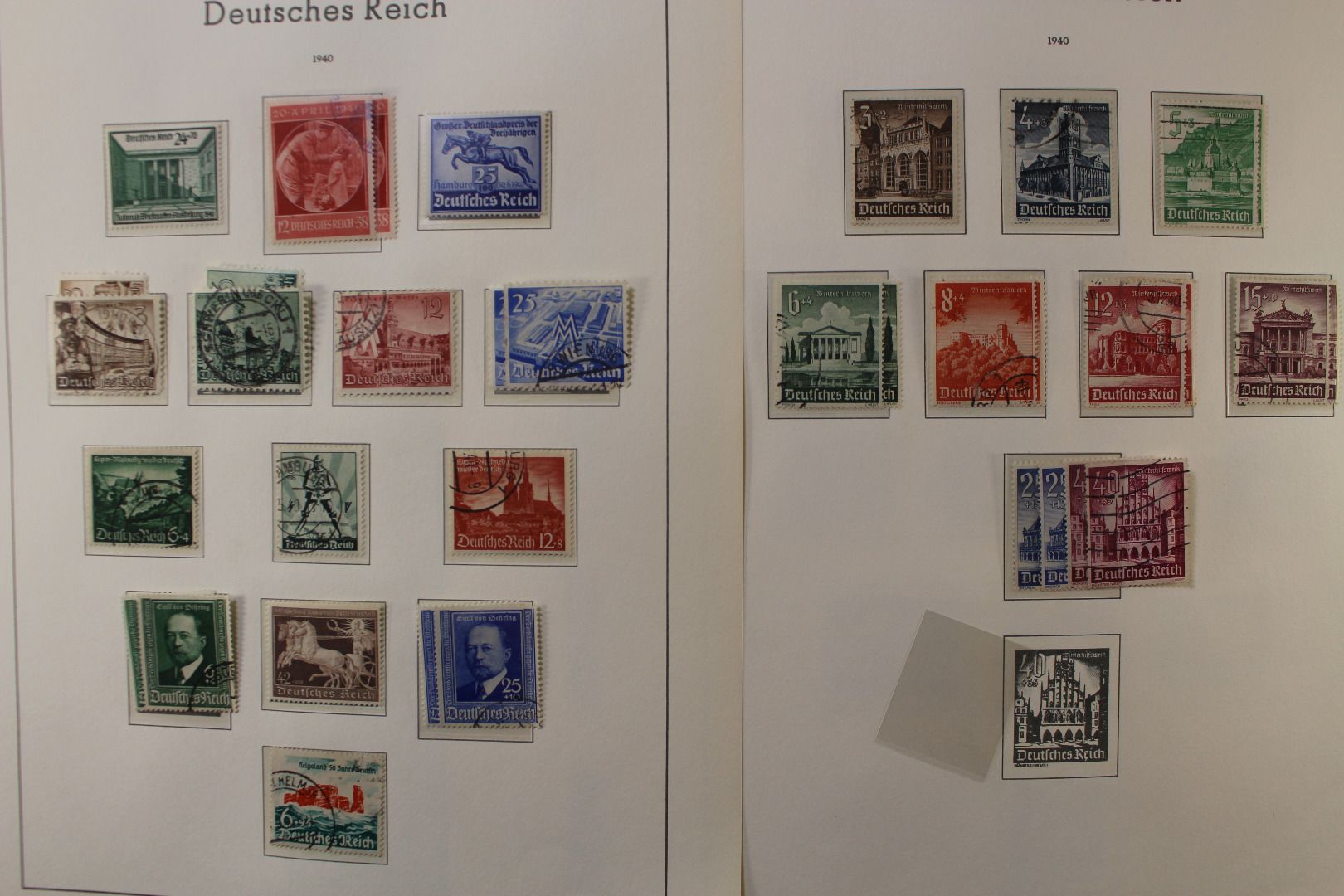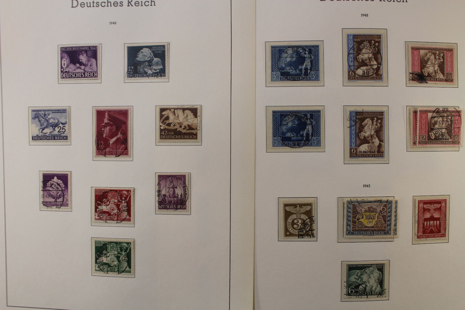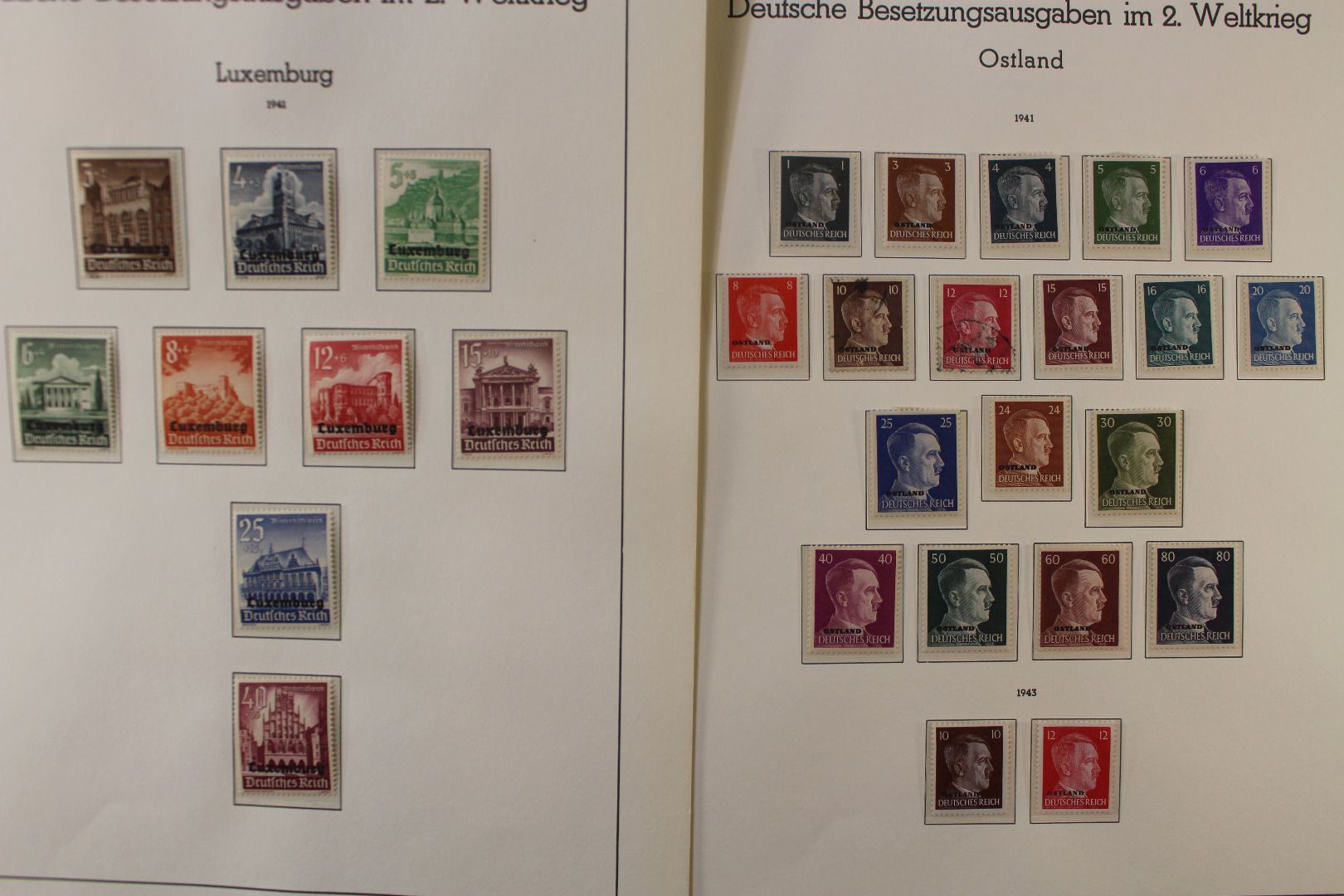 Gute gestempelte und ungebrauchte Teilsammlung im alten Leuchtturm Vordruckalbum (incl. Klemmtaschen und Klemmbinder). Zusätzlich sind auch die Gebiete Generalgouvernement, Böhmen & Mähren und weitere Gebiete aus der Zeit 1939-1945 enthalten.