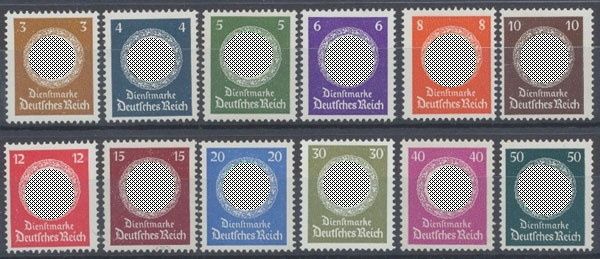 Hakenkreuz im Eichenlaub, ohne Wasserzeichen, 12 Werte.