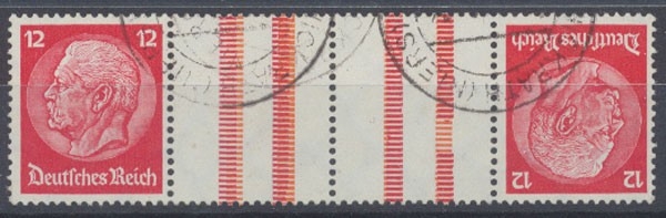 12 Pf. + Z + Z + 12 Pf. Hindenburg,Wasserzeichen 2, angefaltet