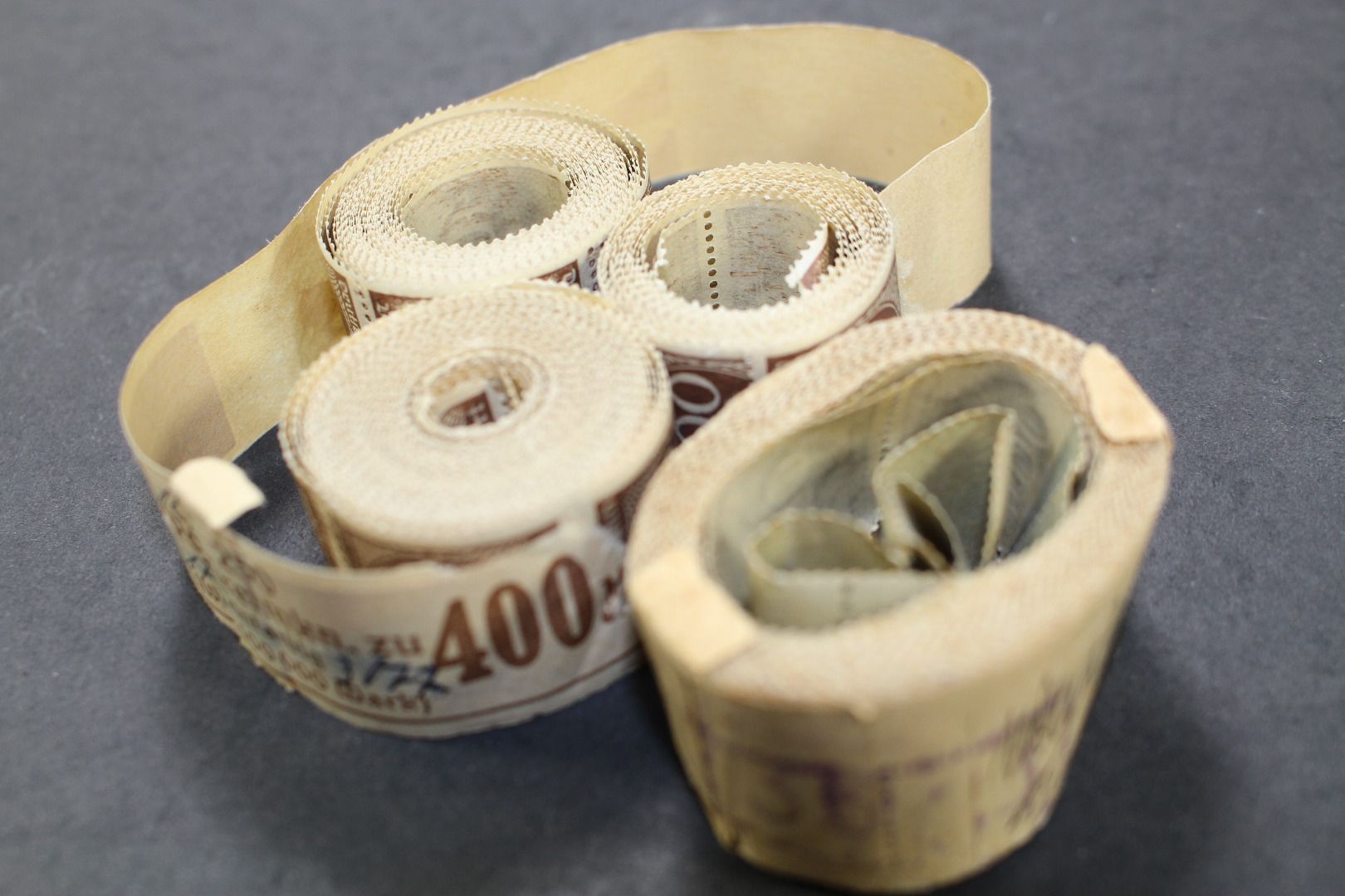 Eine komplette Rolle und 3 angefangene Rollen. Die Qualität scheint überwiegend gut zu sein, lässt sich aber aus verständlichen Gründen nicht genau überprüfen.