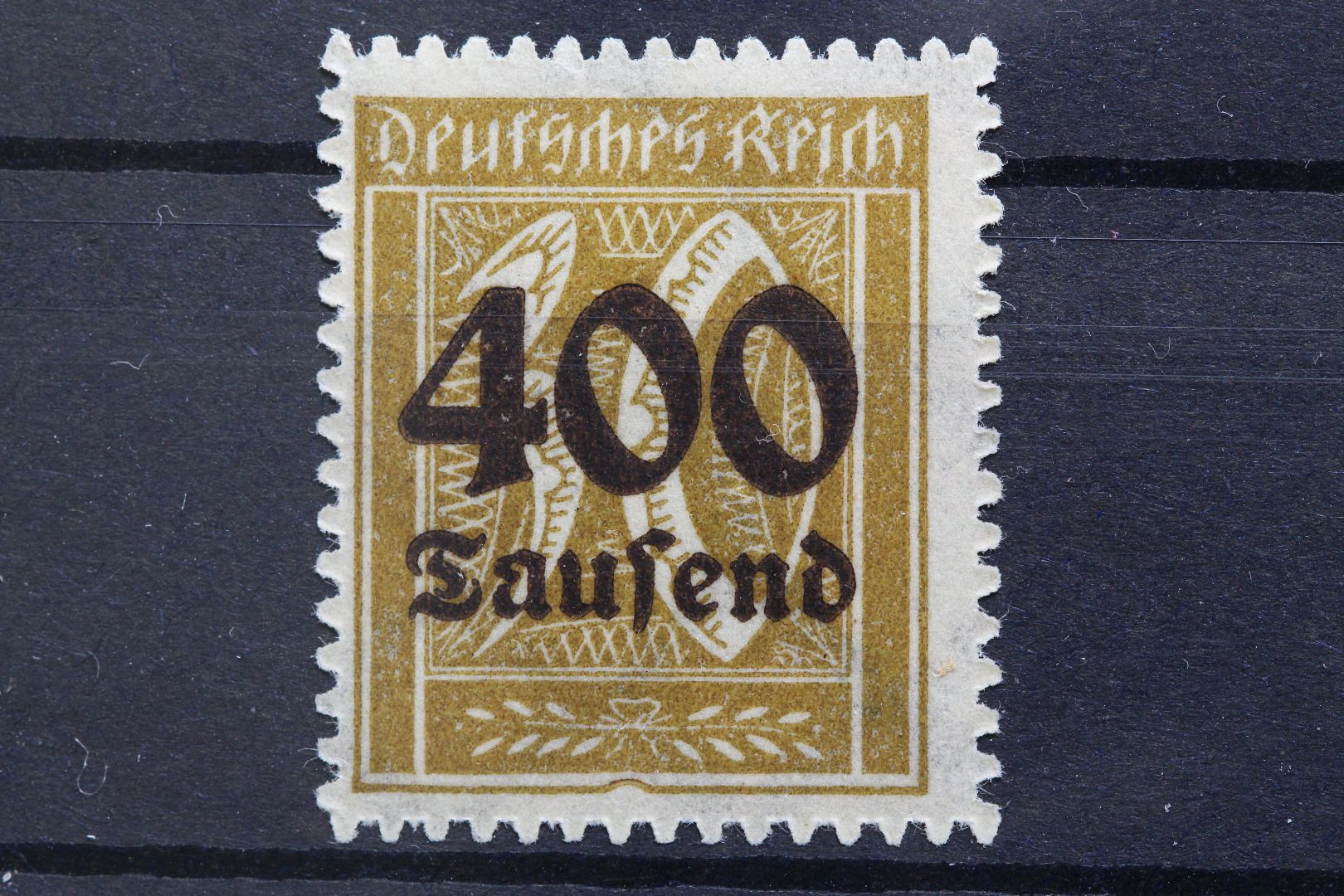 400 Tsd auf 30 Pf, Plattenfehler: untere Rahmenlinie nach innen gedrückt, geprüft Infla-Berlin