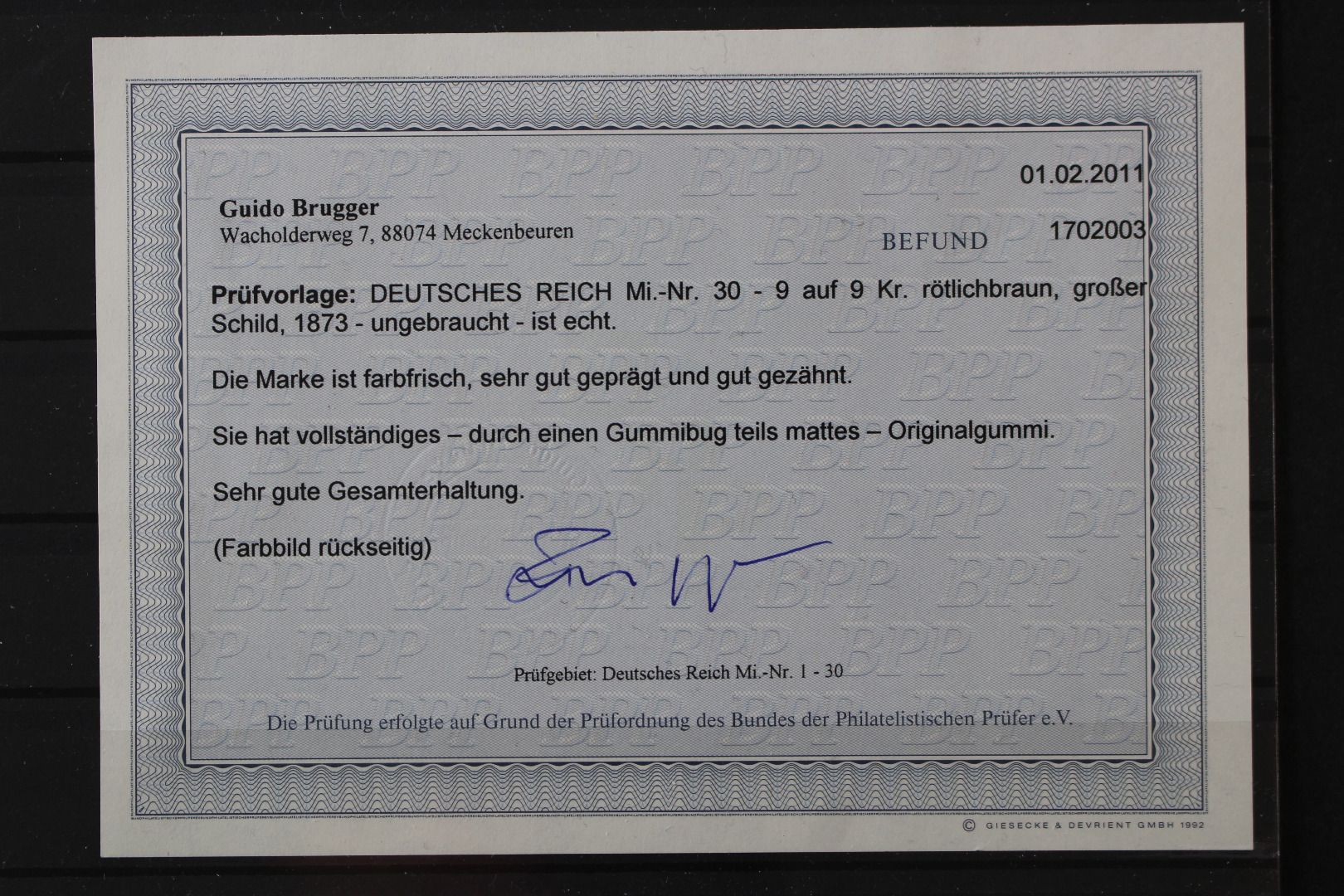 9 auf 9 Kreuzer Brustschild, Gummibug, Fotobefund Brugger (2/2011)