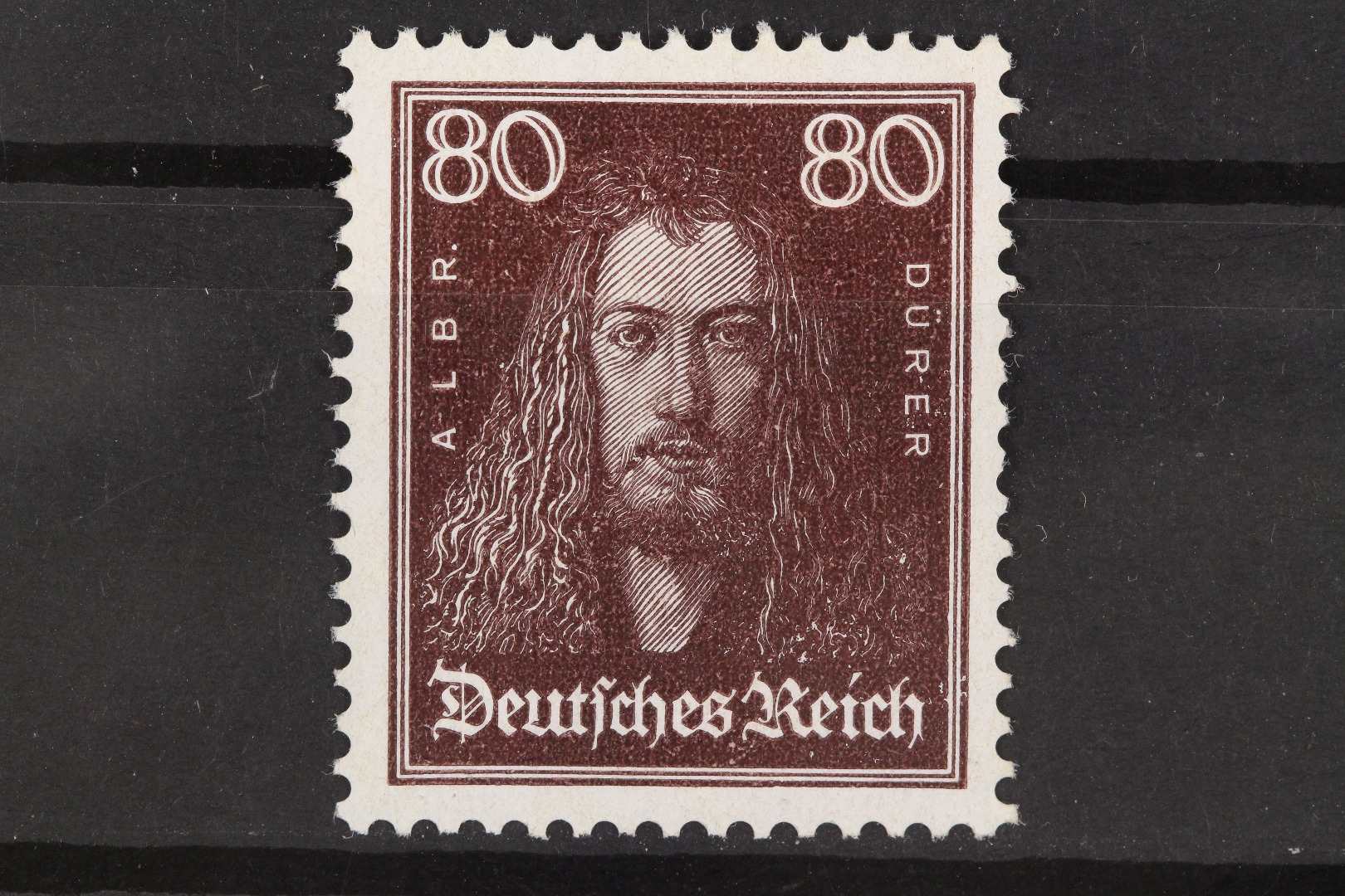 80 Pf. Dürer, gummiseitig eine Fingerspur, rechts etwas unruhige Zähnung.