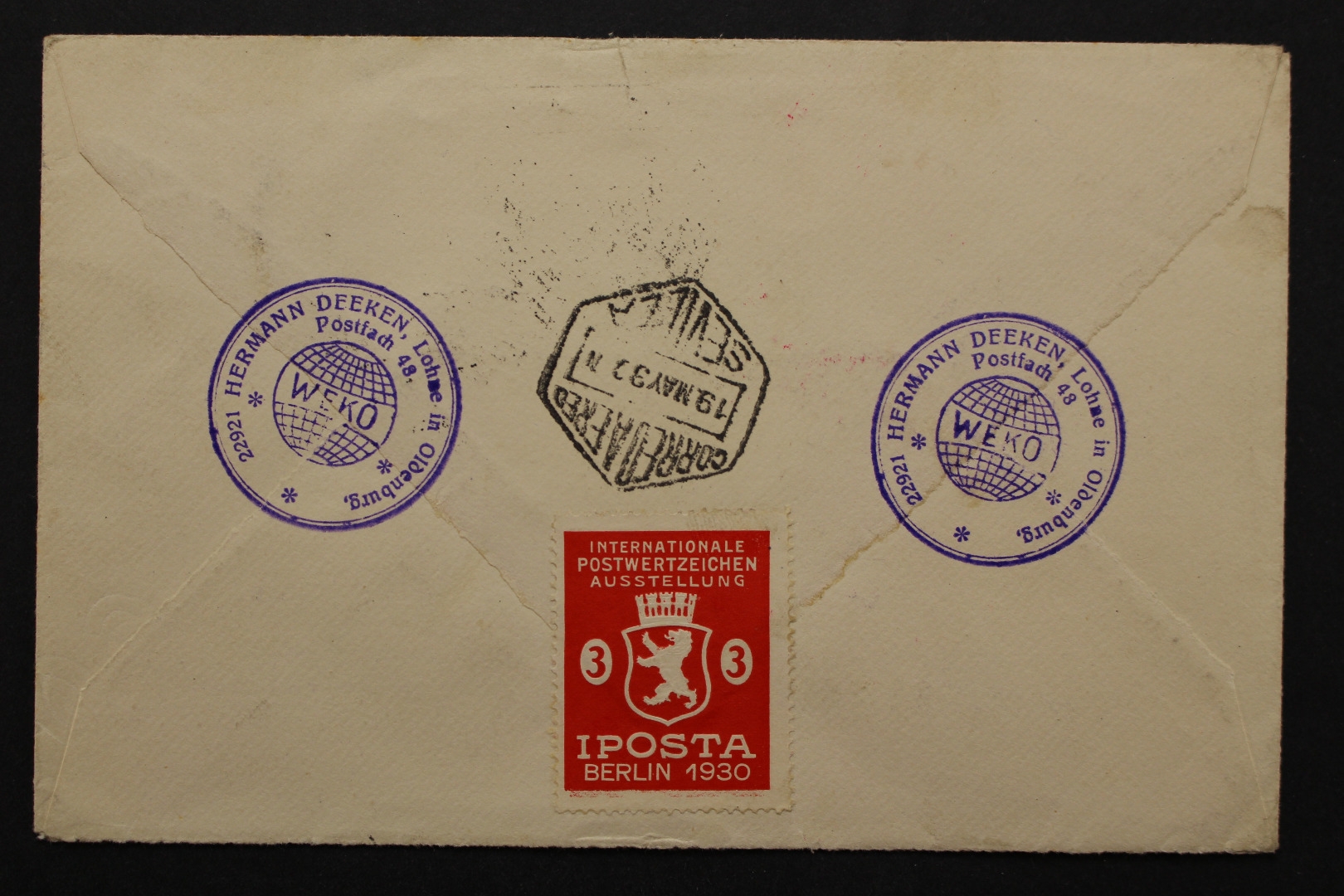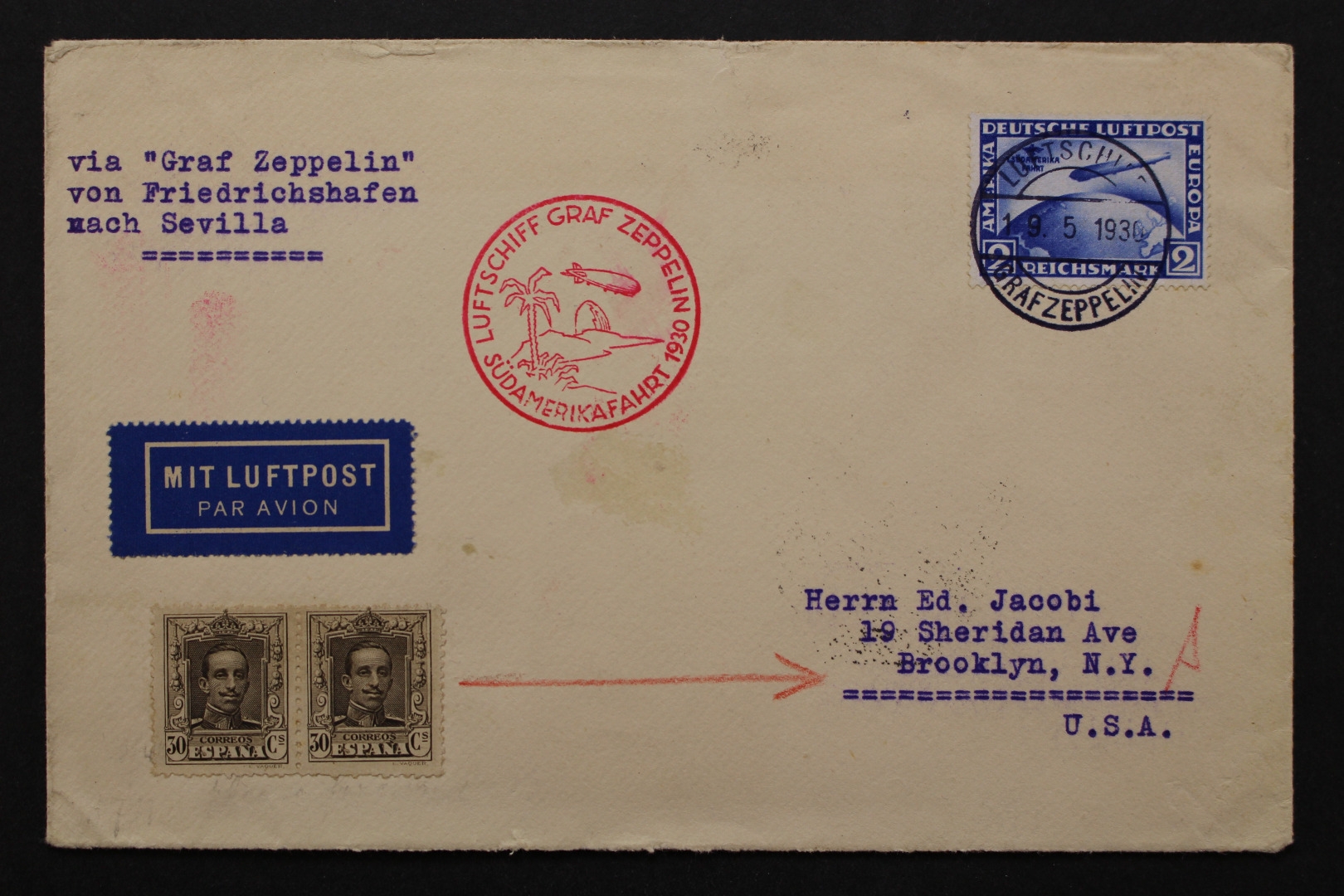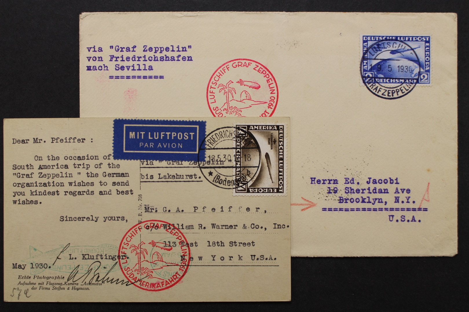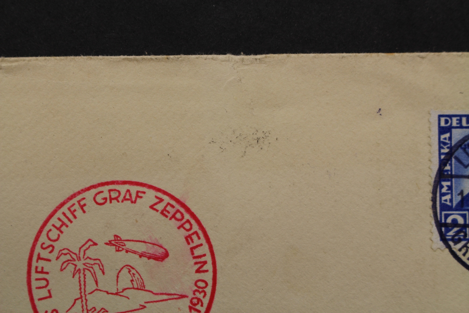2 und 4 Mark Zeppelin je auf Bedarfsbeleg, Briefhülle oben beschädigt, mit Falz von innen verschlossen. Variante nicht bestimmt.