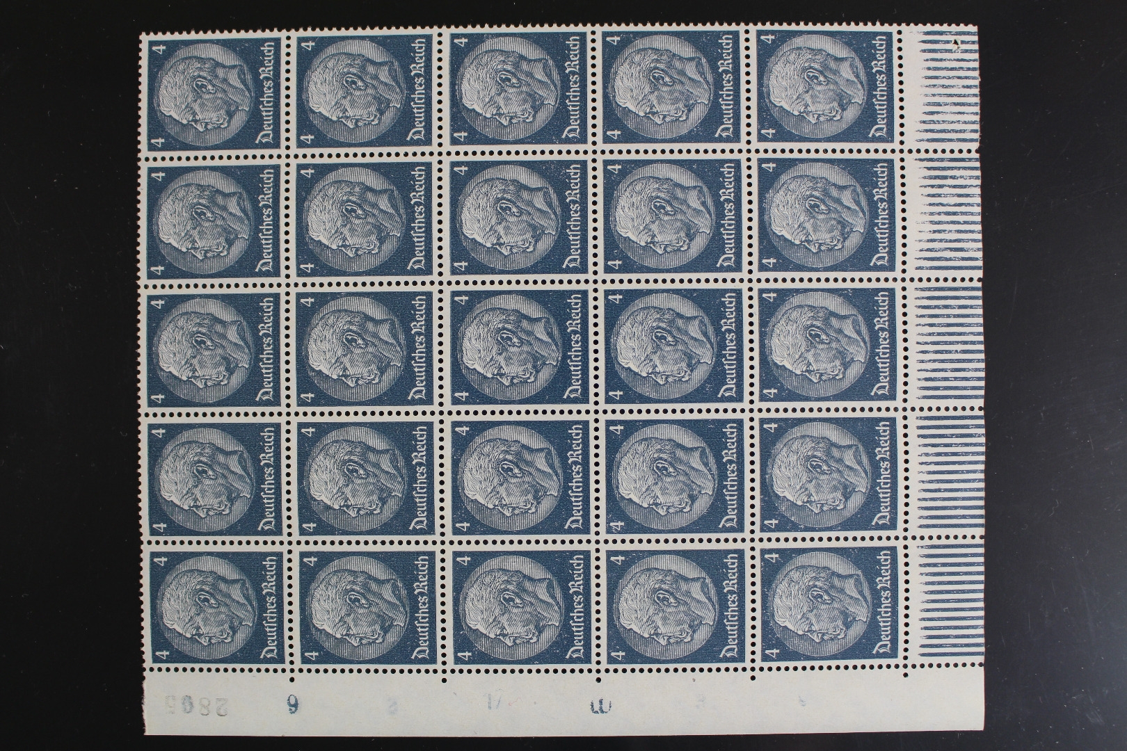 4 Pf. Hindenburg, unten senkrecht teilweise leicht angetrennt.