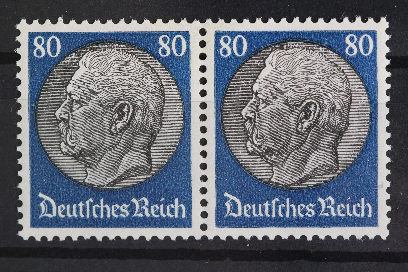 80 Pf. Hindenburg. Bei den Ausgaben 512-528 wirken Einheiten aufgrund der Papierbeschaffenheit oft wie angefaltet.