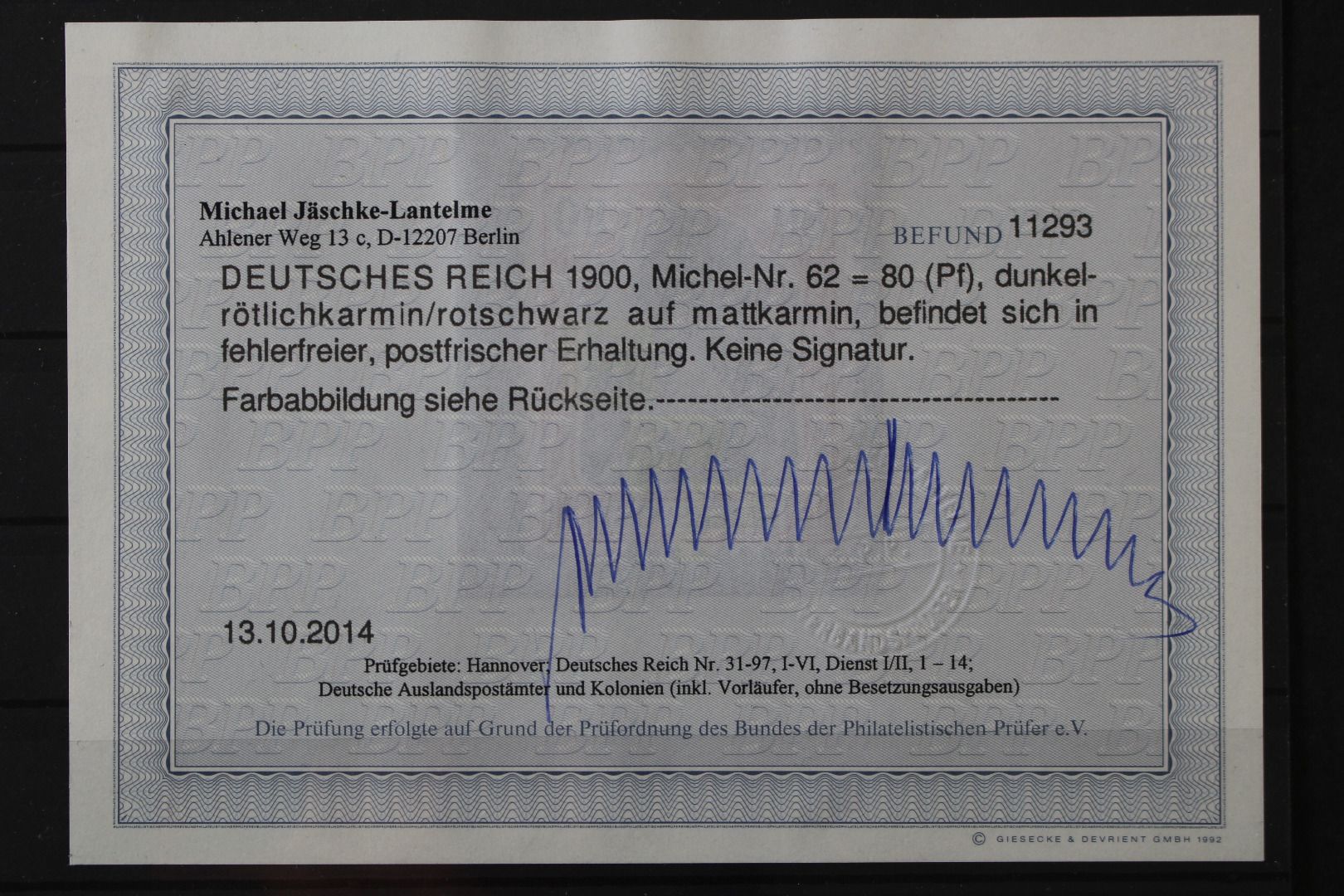 80 Pf Germania "Reichspost", Fotobefund Jäschke-L. (2014) einwandfreie Erhaltung