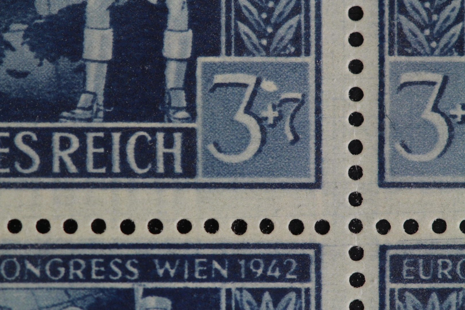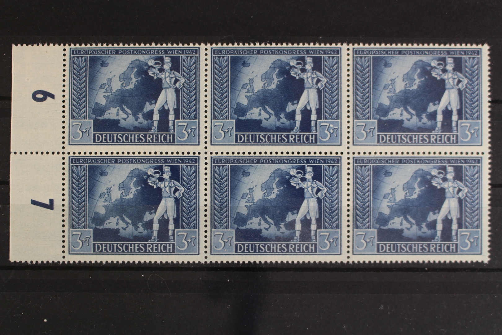 3 Pf. Postkongreß, Plattenfehler: heller Fleck rechts am Kopf der rechten Wertziffer "3". Rand angetrennt.
