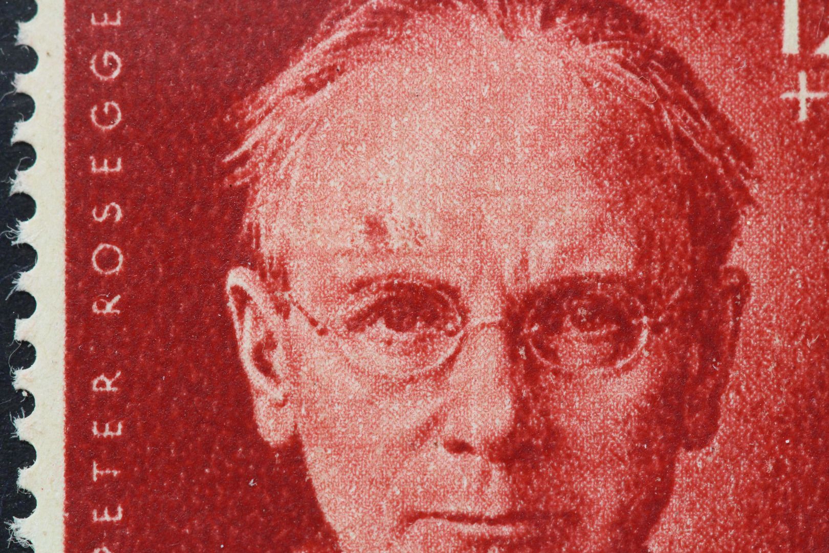 12 Pf. Rosegger, Plattenfehler: Fleck über linkem Auge, Gummianhaftungen