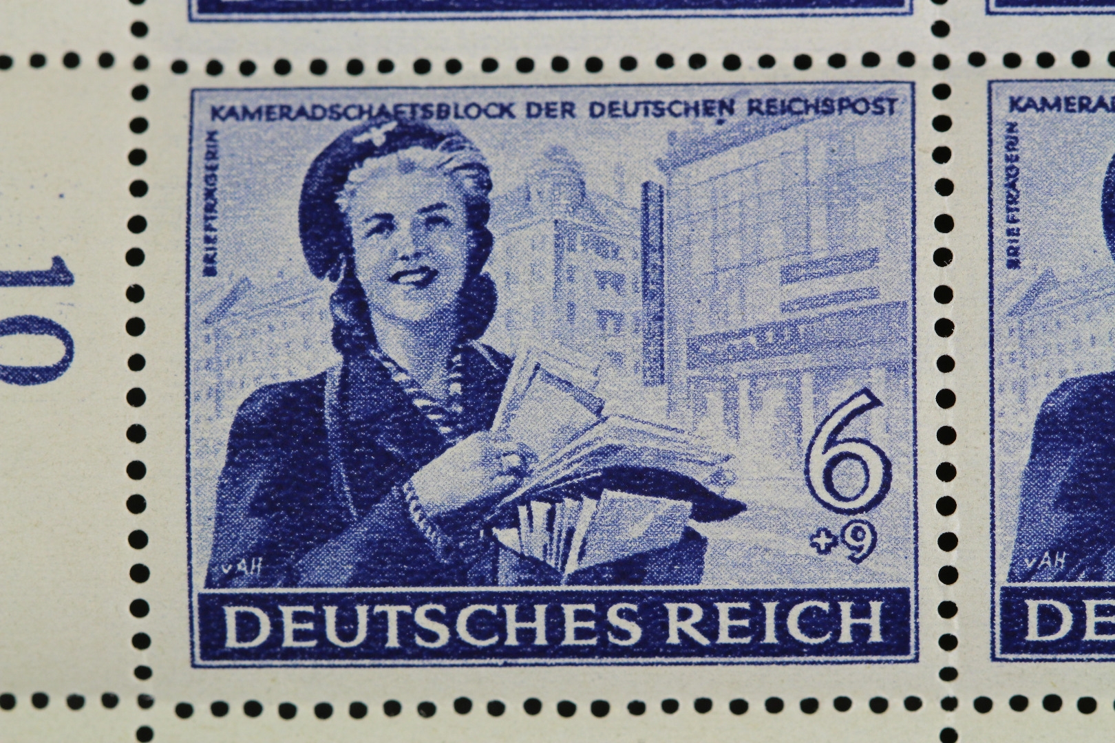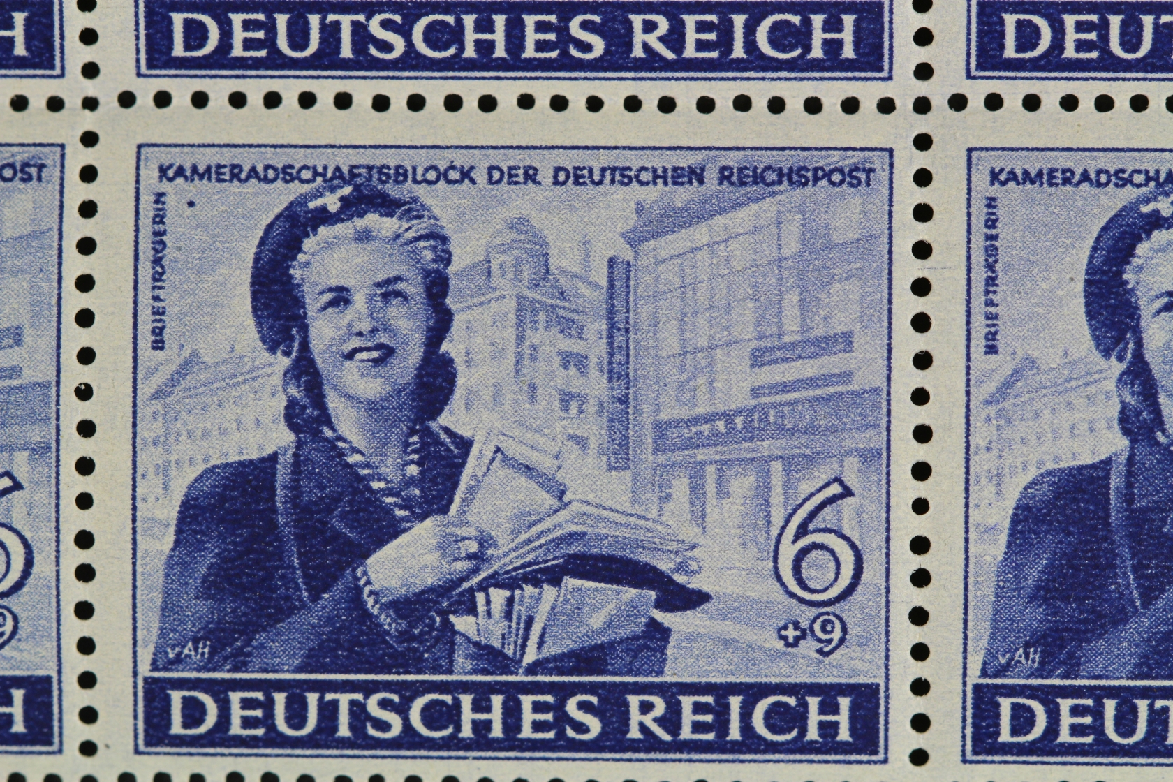 6 Pf. Kameradschaftsblock mit zwei Plattenfehlern, Ränder teilweise angetrennt, im Rand und auf einer Marke leichte bräunliche Flecke, angefaltet. Die Marken mit den Plattenfehlern sind einwandfrei.